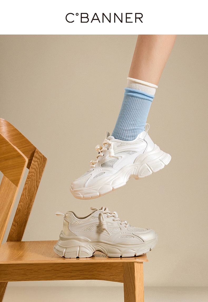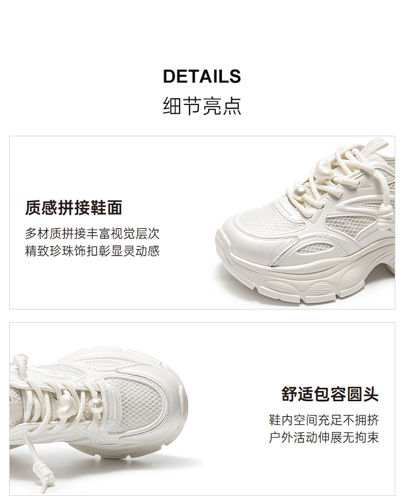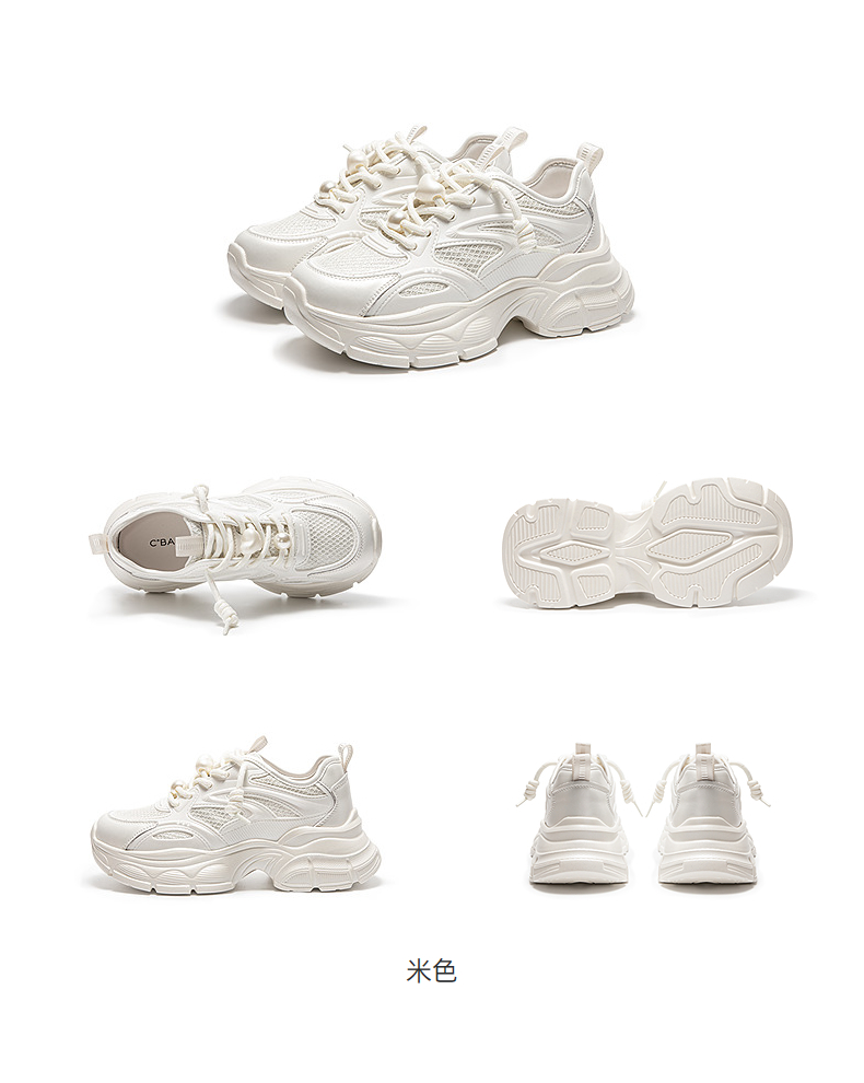 千百度厚底老爹鞋女款网面透气时尚运动休闲鞋小白鞋A25301603