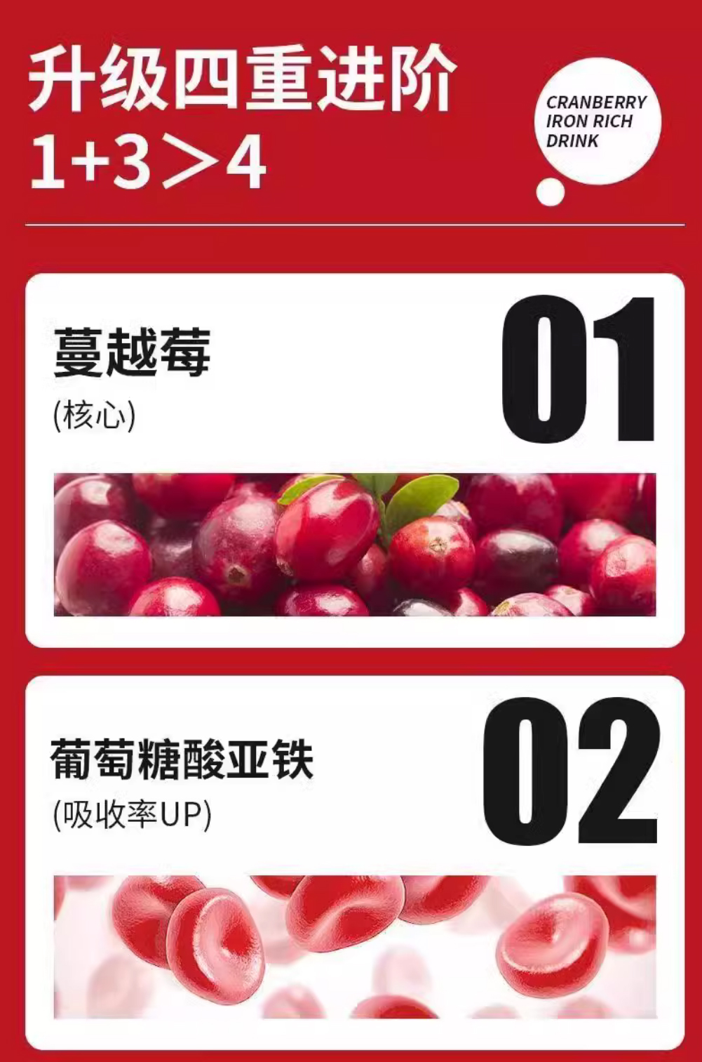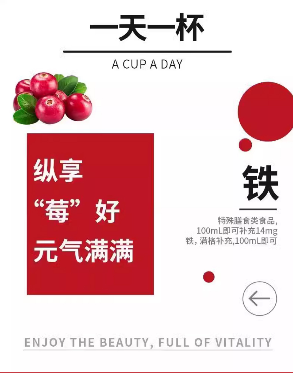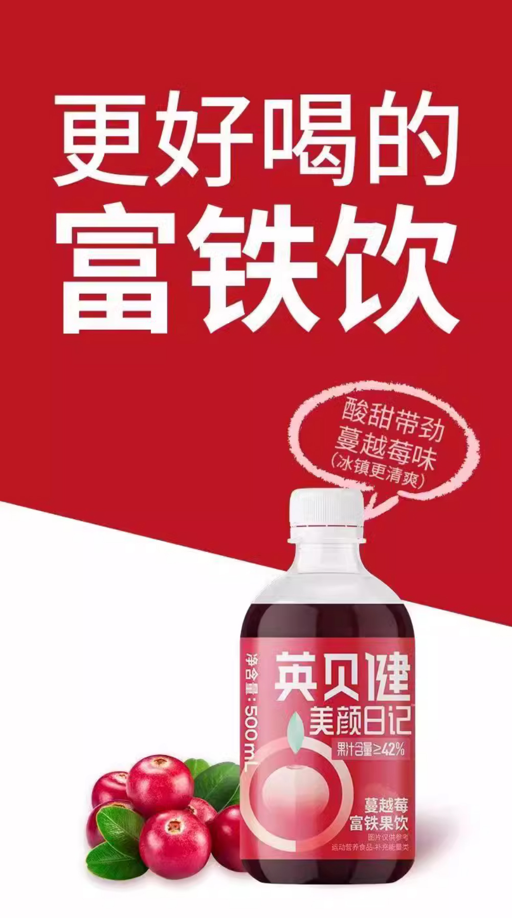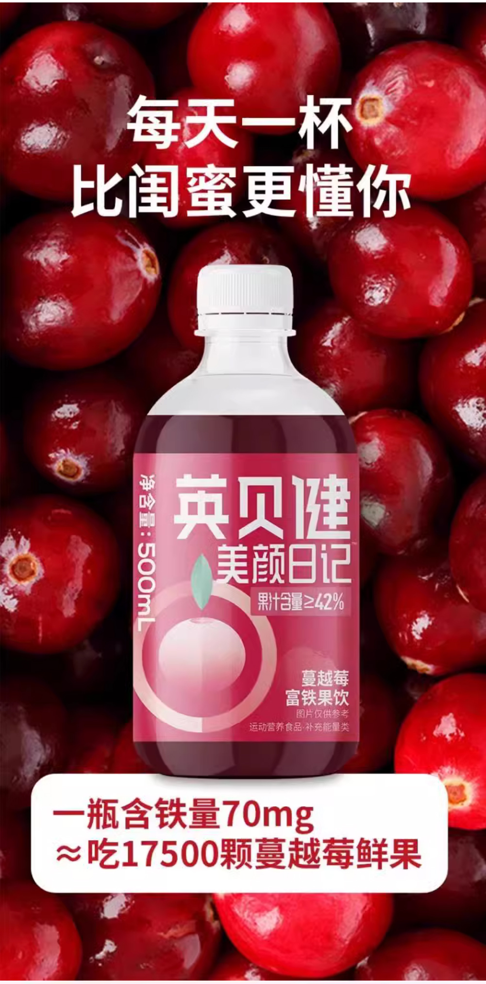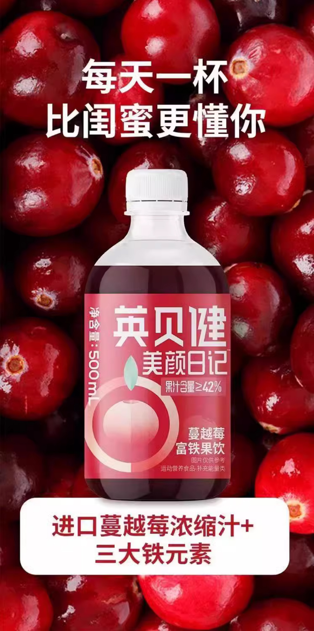 【品名】英贝健蔓越莓汁美颜日记富铁500ml