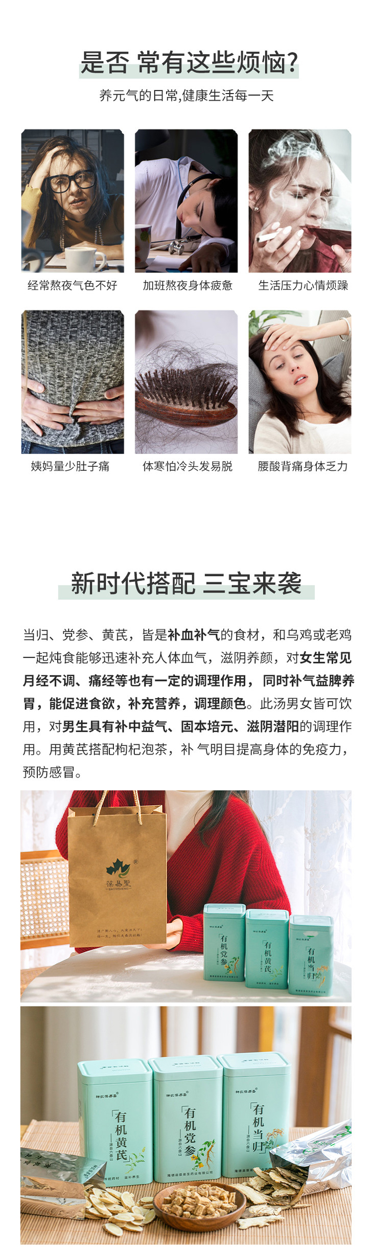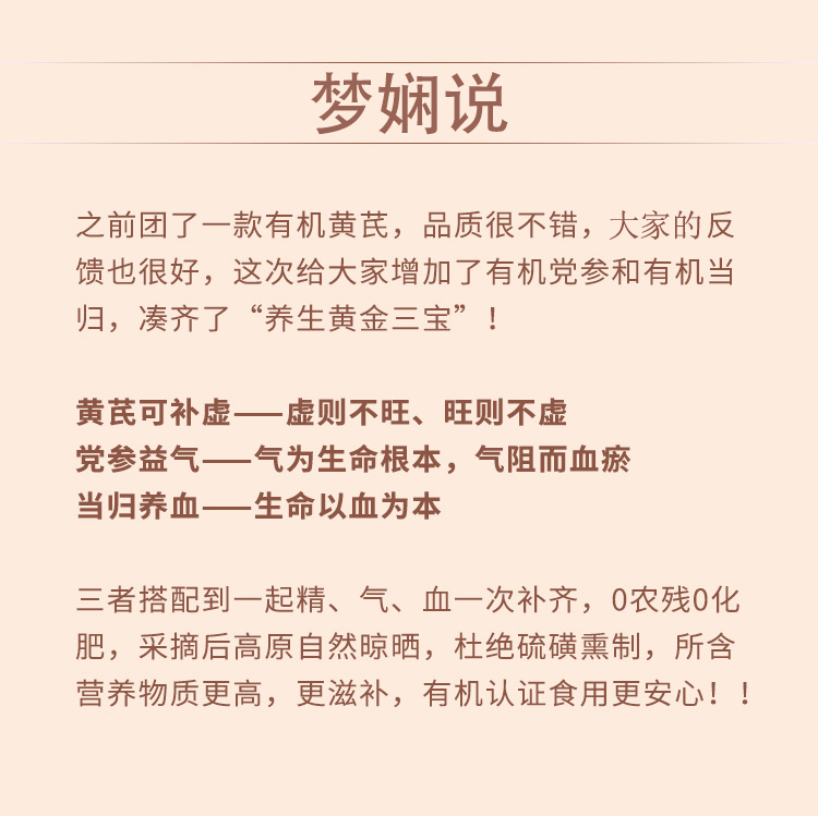 有机认证✔气血三宝 党参.黄芪.当归,无硫,无重金属!有机认证 更营养滋补 药香浓郁 炖汤泡茶都可 养生人士必备