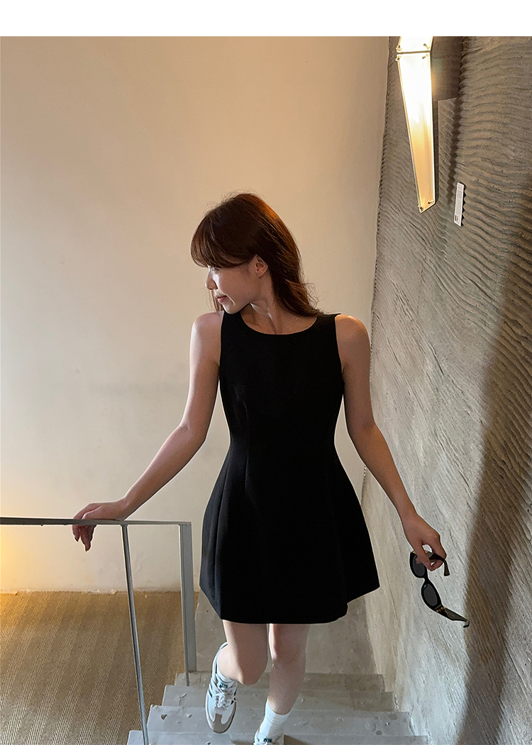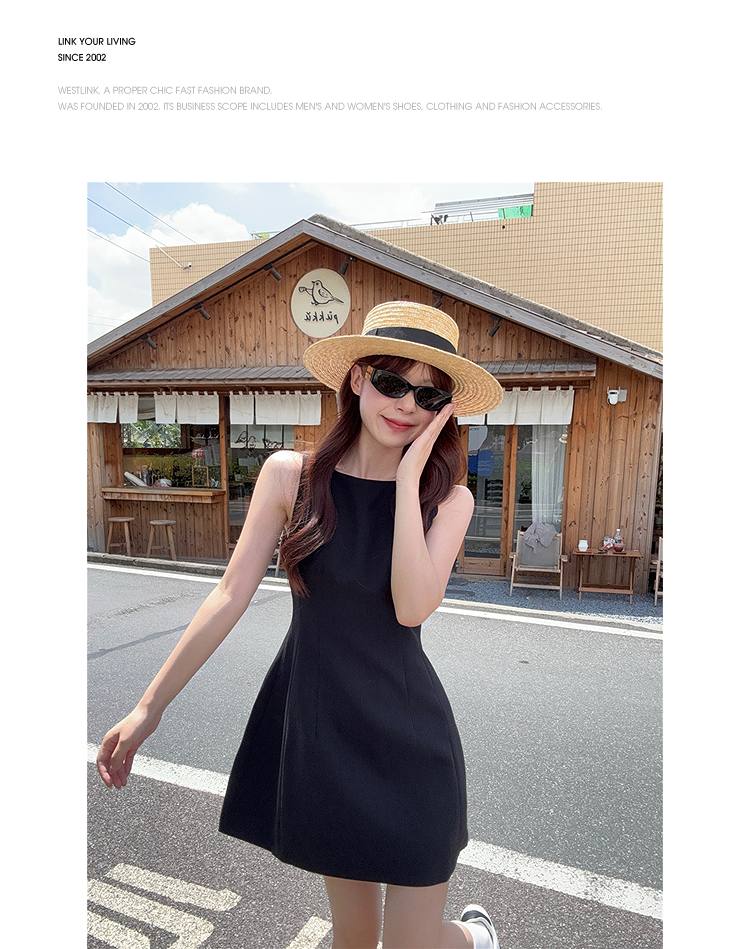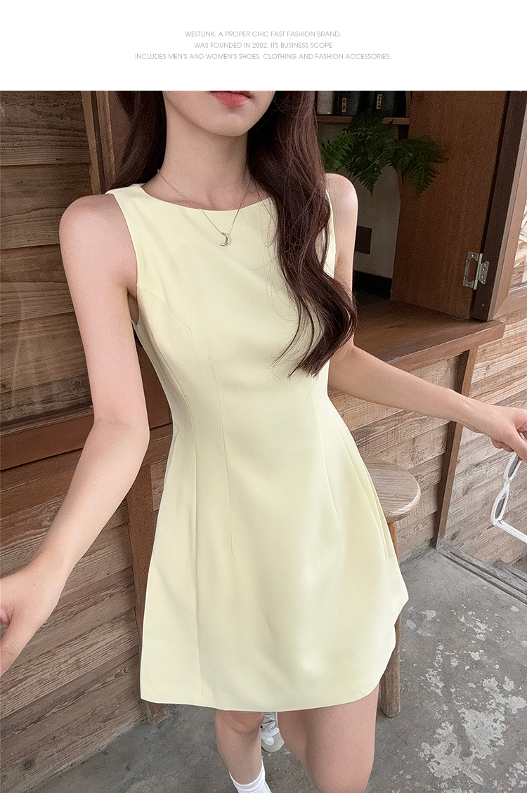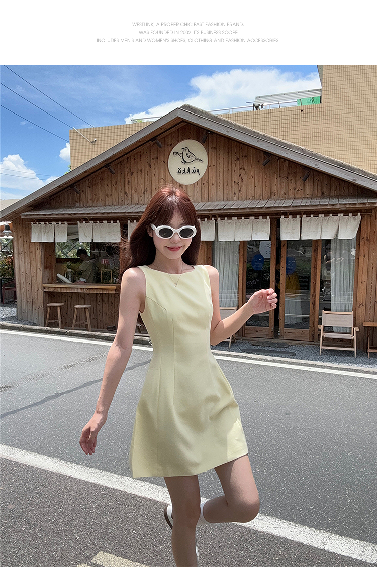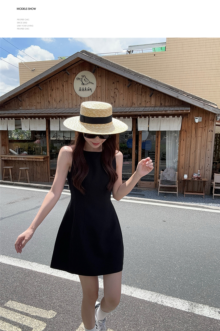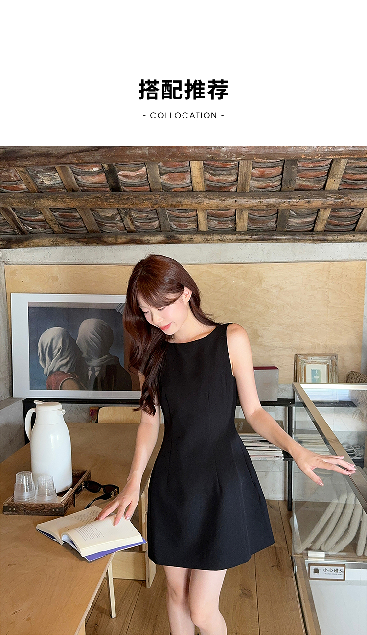 西遇无袖连衣裙女秋季新款法式圆领收腰显瘦a字背心长裙SS051242