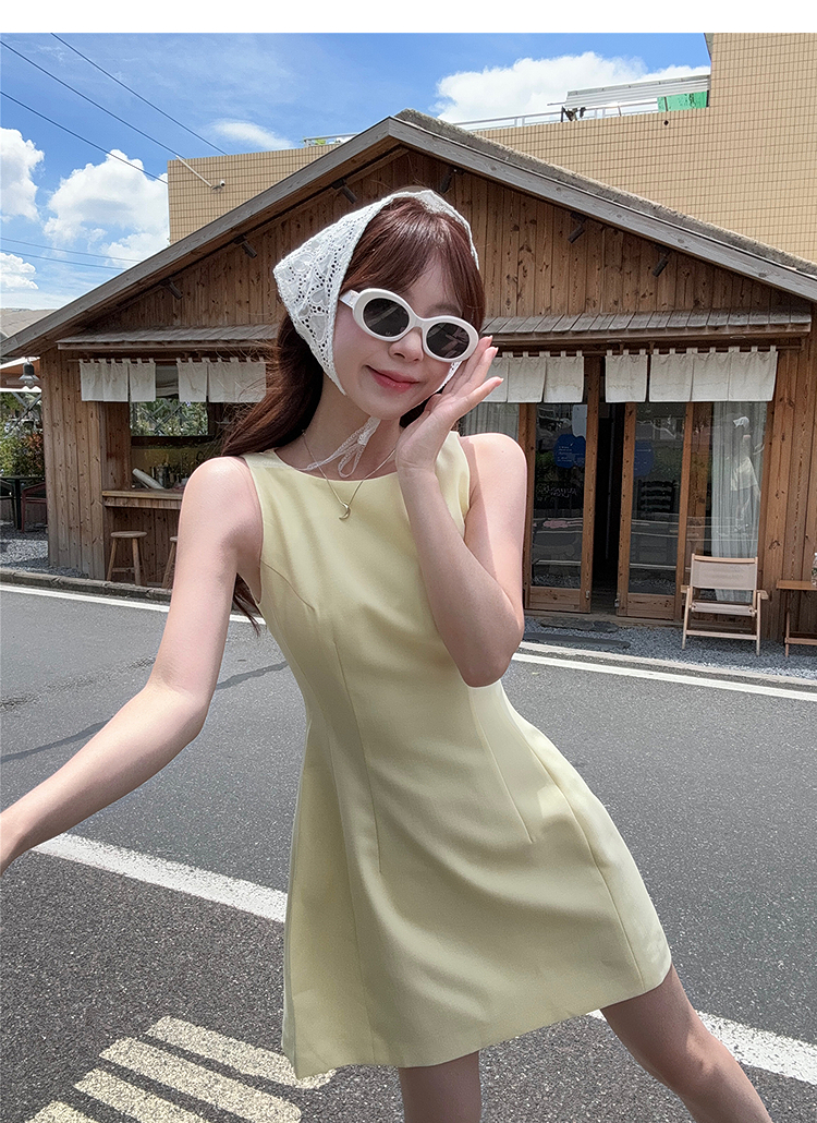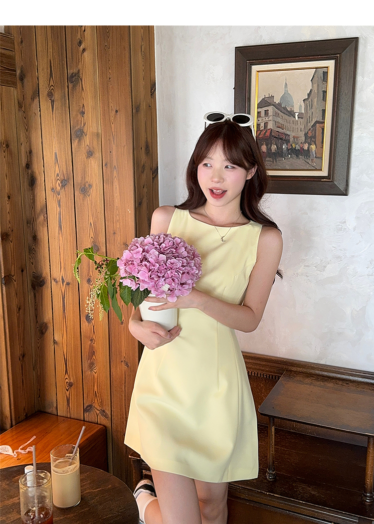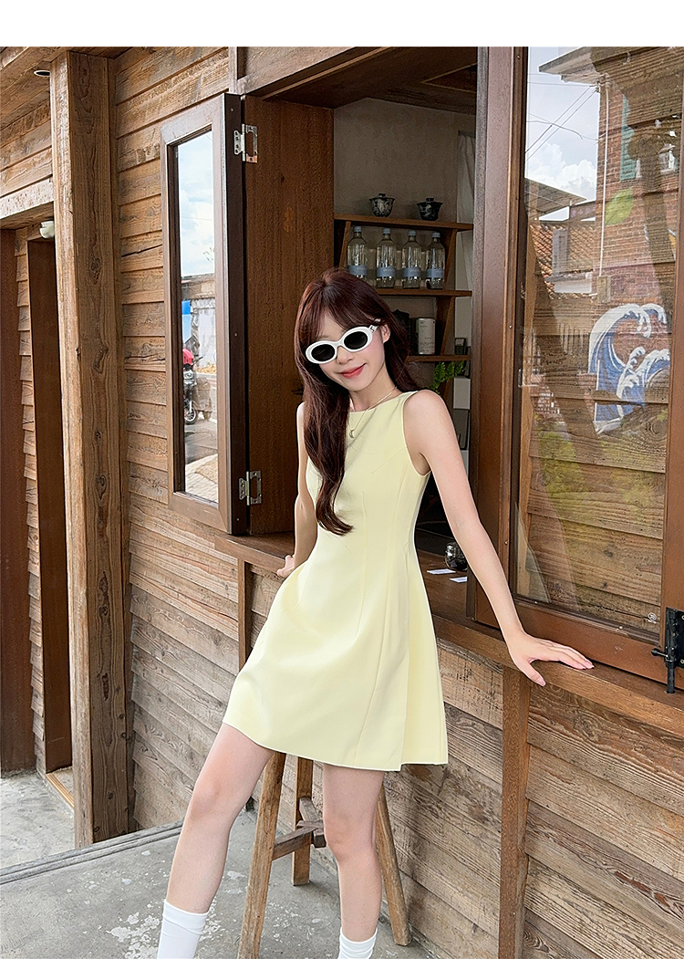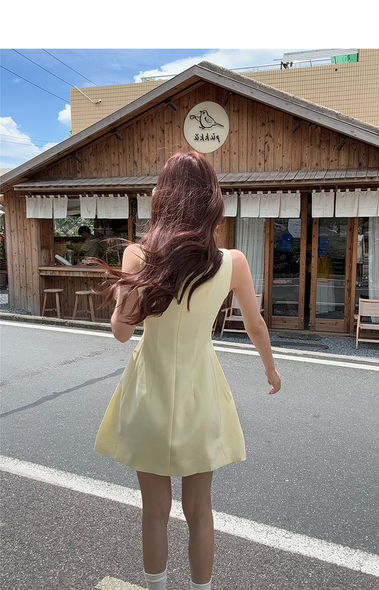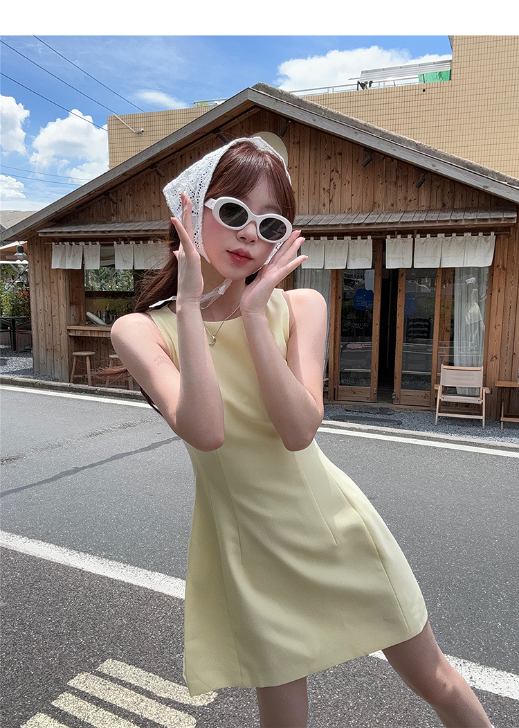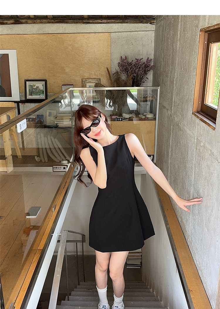 西遇无袖连衣裙女秋季新款法式圆领收腰显瘦a字背心长裙SS051242