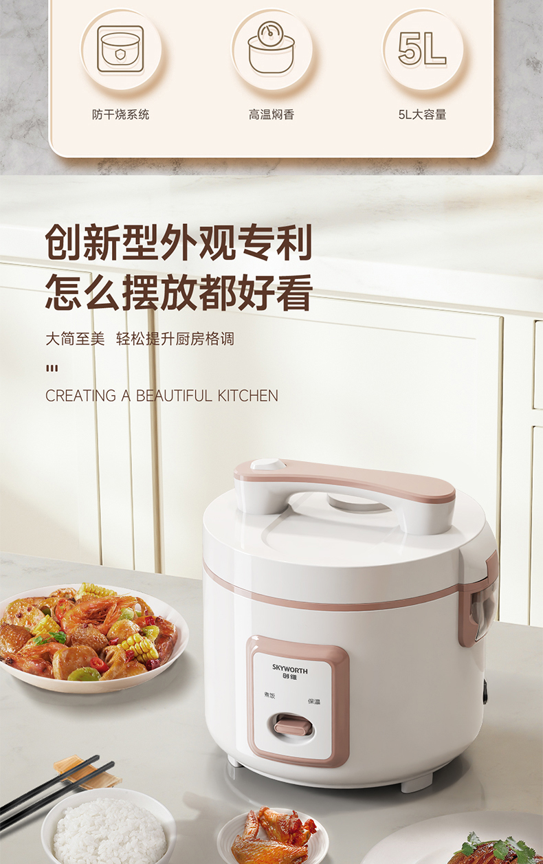 【自营】创维 5L电饭煲 F628 双层水性不粘内胆;不粘锅