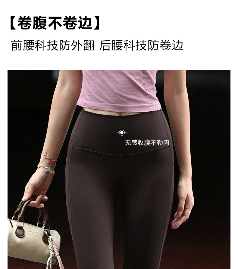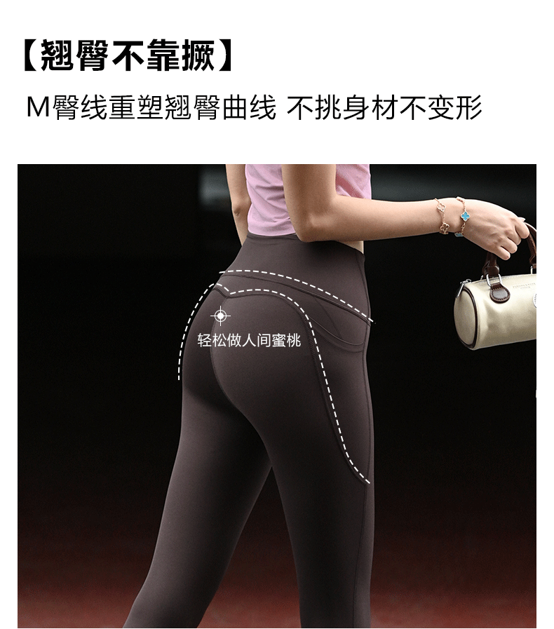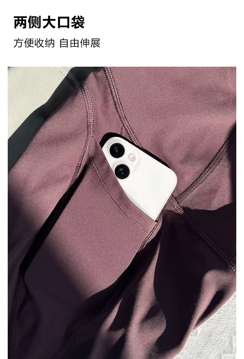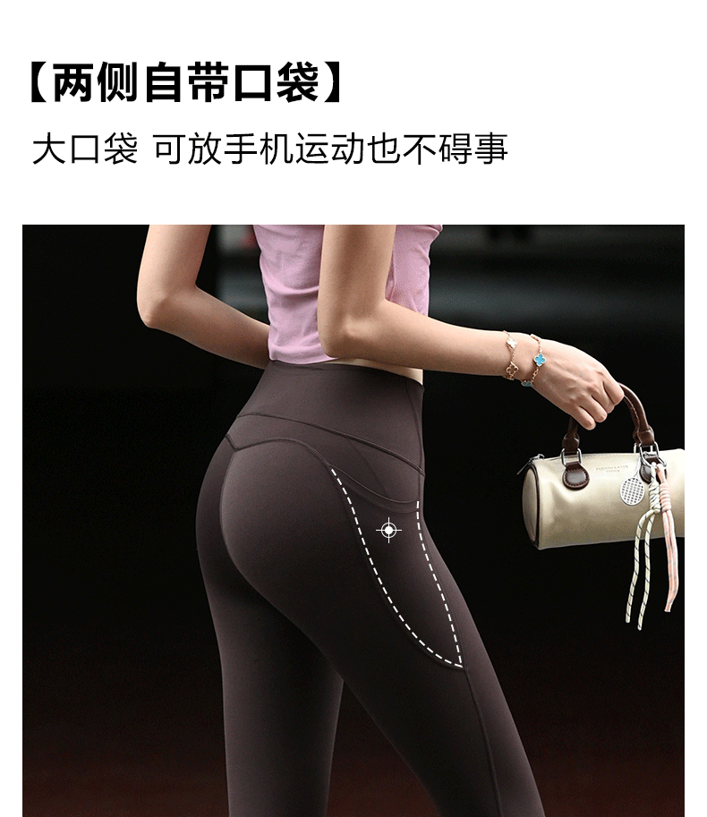 Beenem高腰裸感腰精瑜伽长裤 高士徕卡面料M 线翘臀高腰细腰 吸湿速干侧边带口袋运动紧身裤