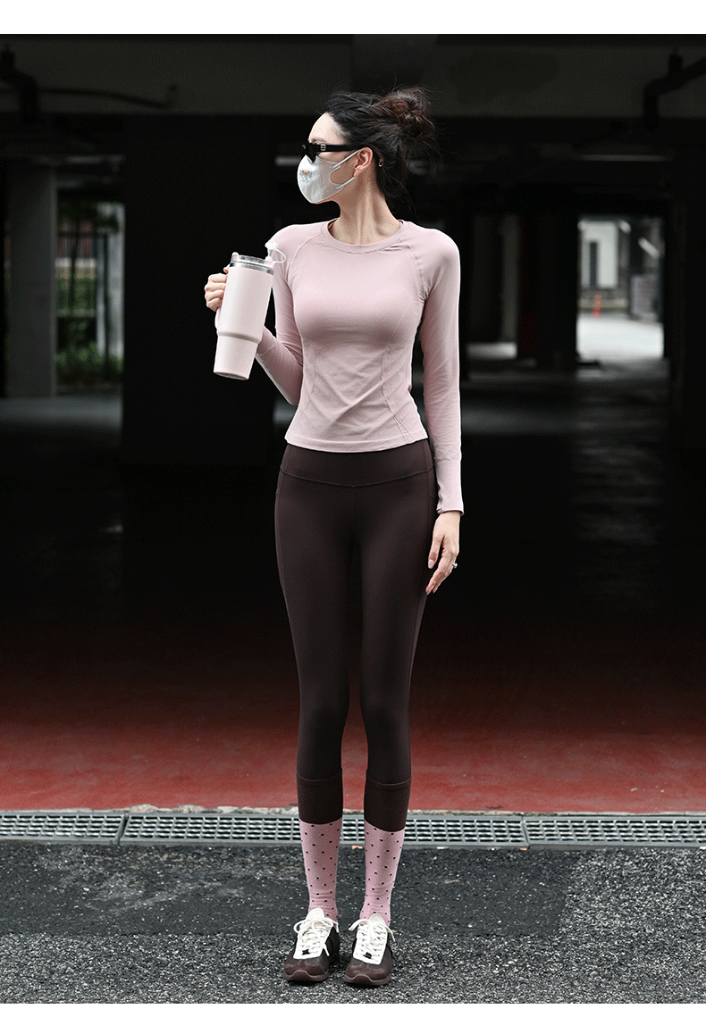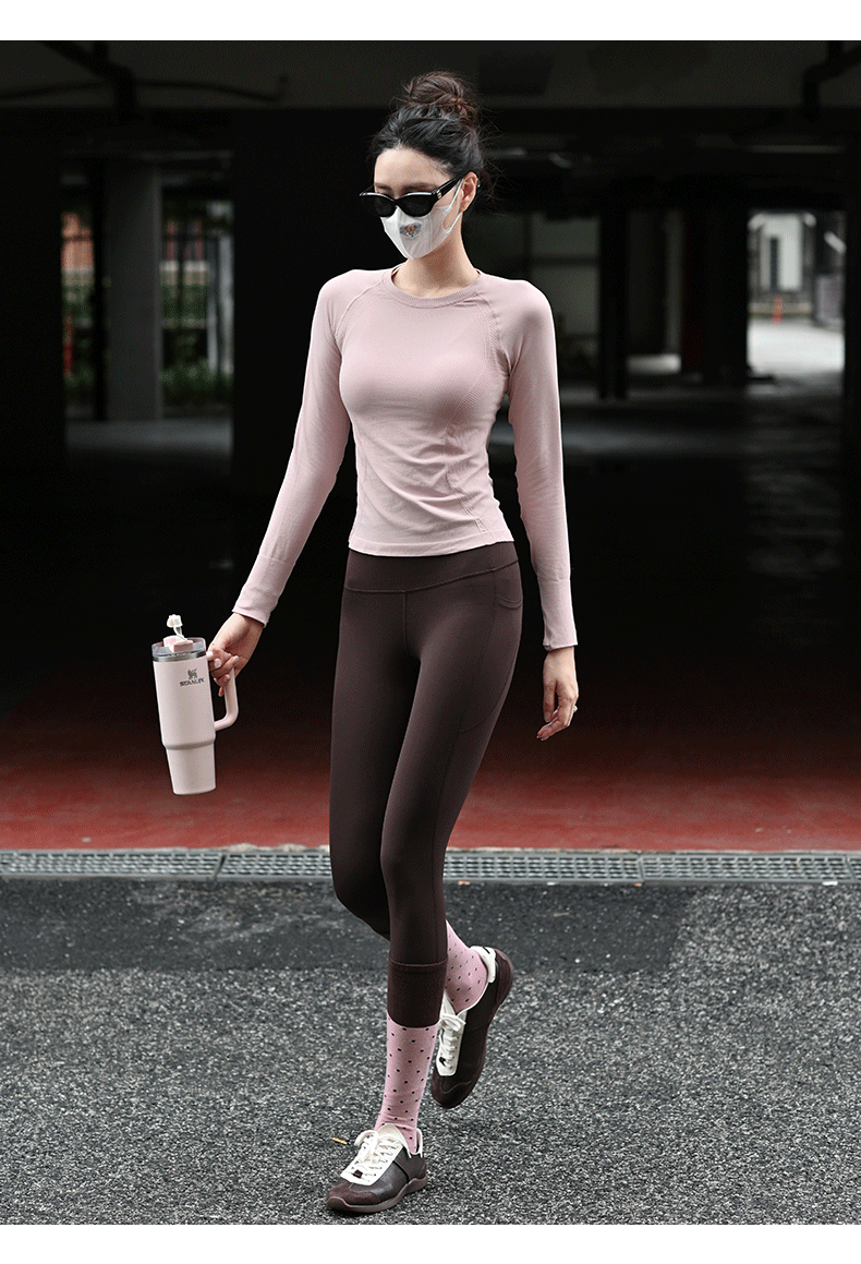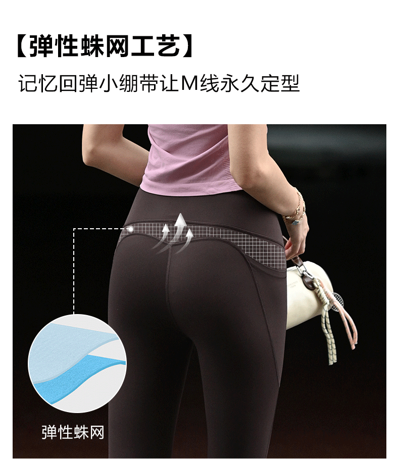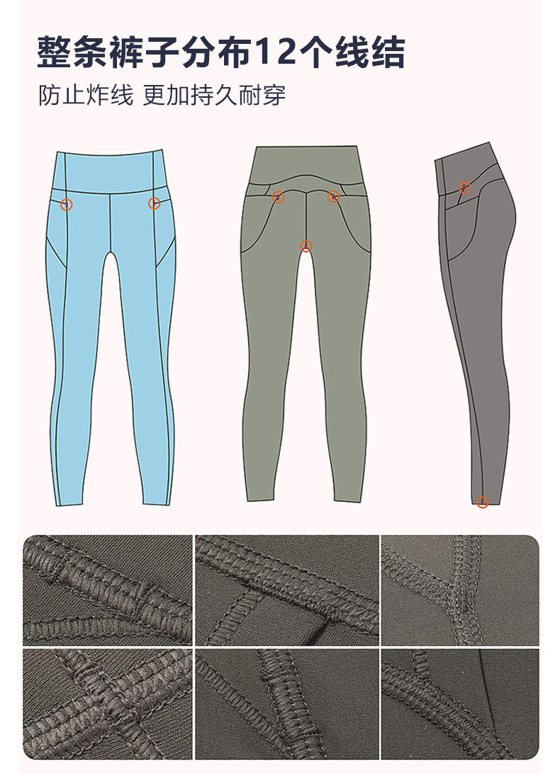 Beenem高腰裸感腰精瑜伽长裤 高士徕卡面料M 线翘臀高腰细腰 吸湿速干侧边带口袋运动紧身裤