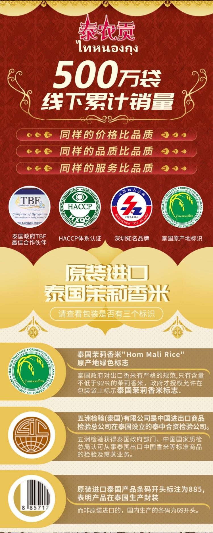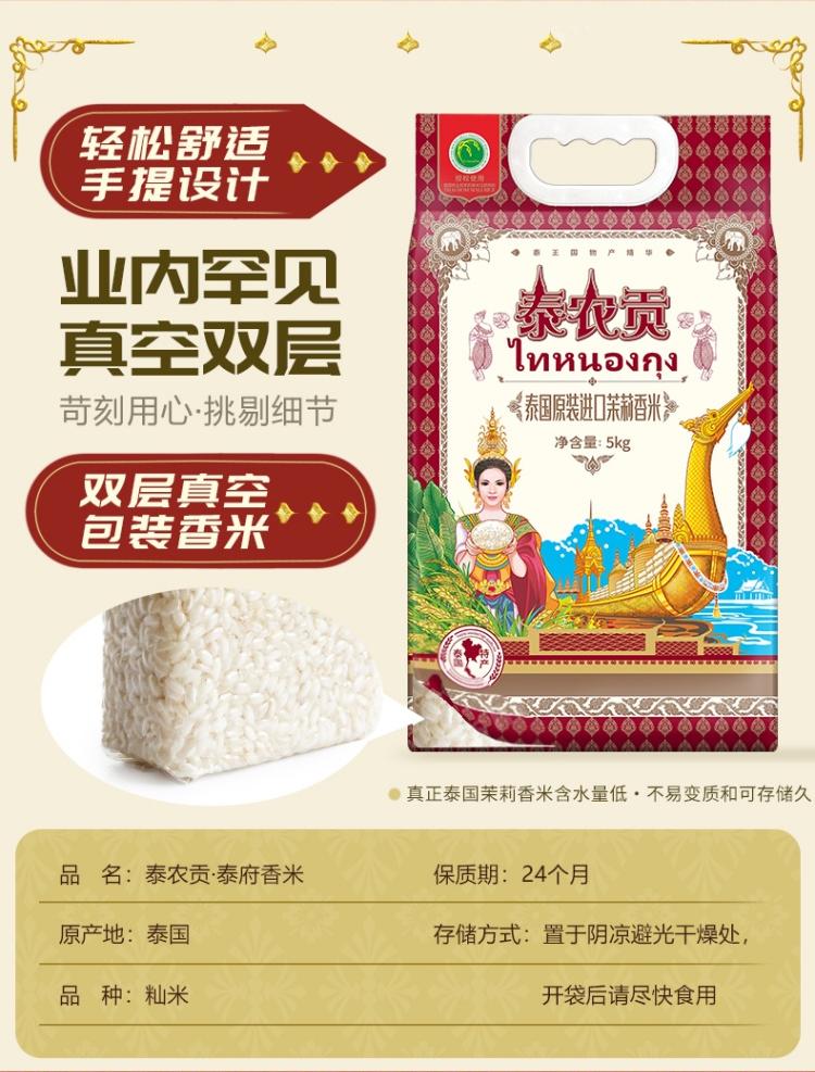 泰农贡原装进口泰国香米长粒香大米500g*2袋