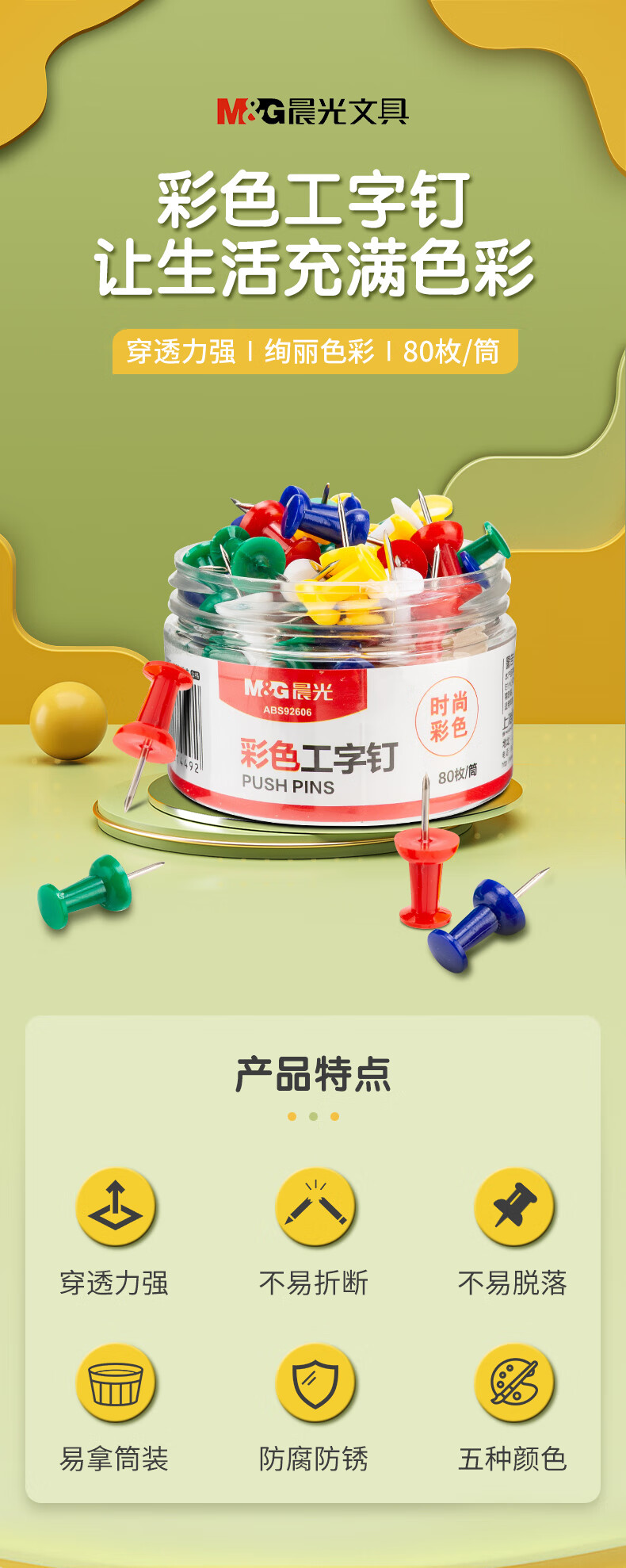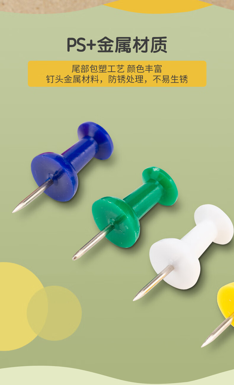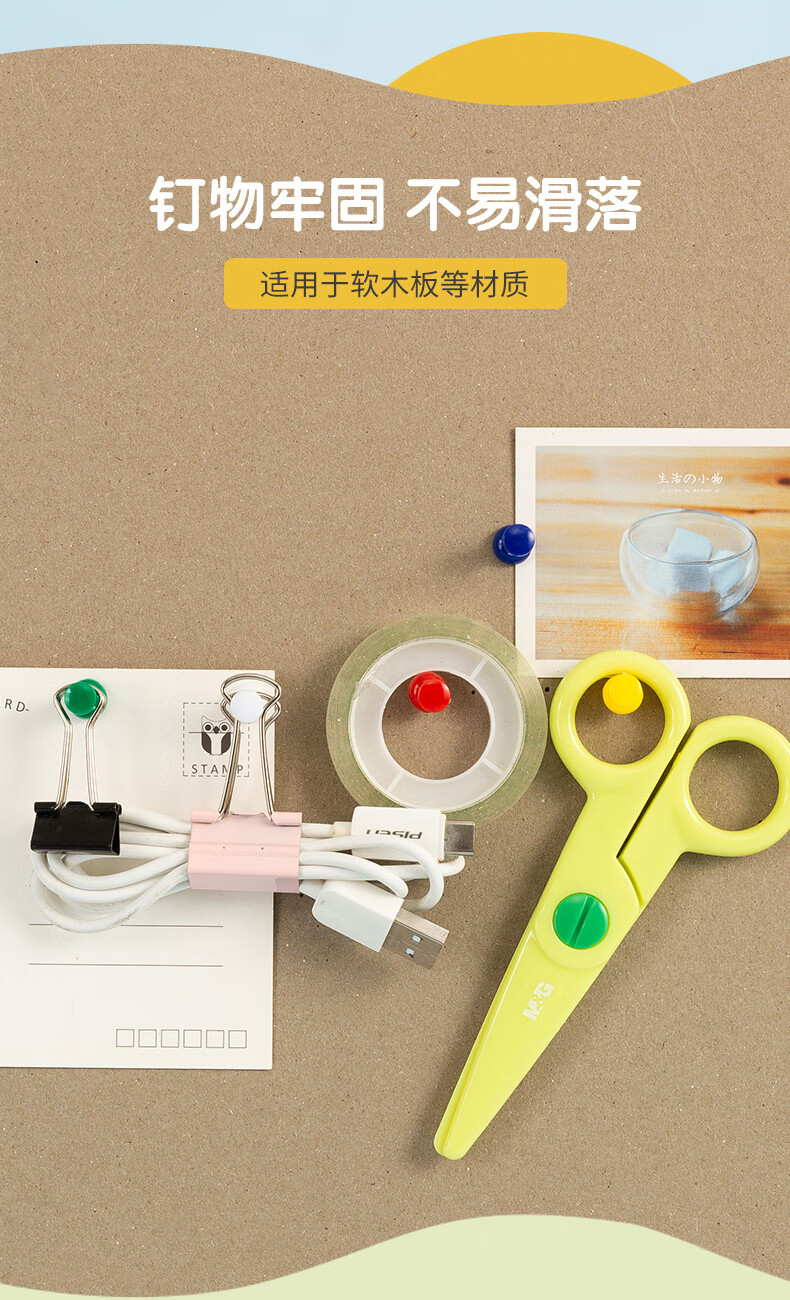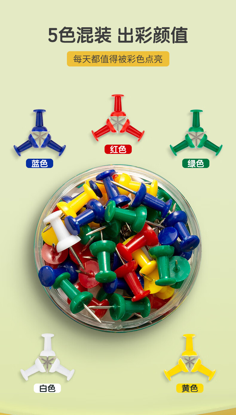 ABS92606晨光文具彩色图钉 软木画板按钉 办公工字钉 大头钉 80枚/筒