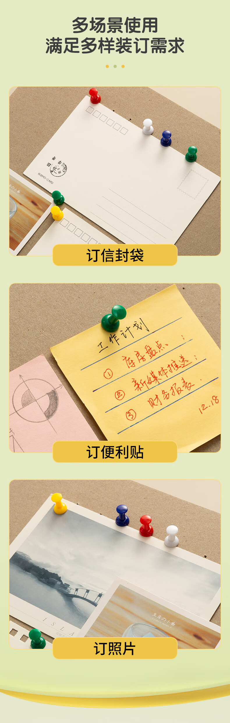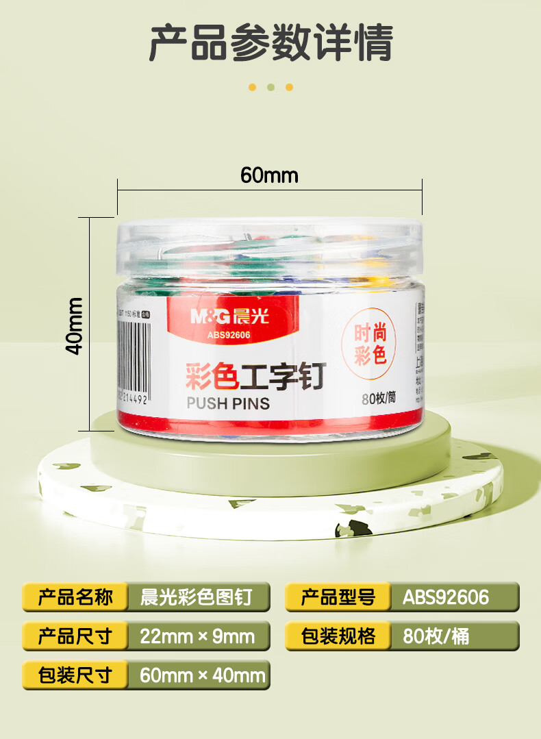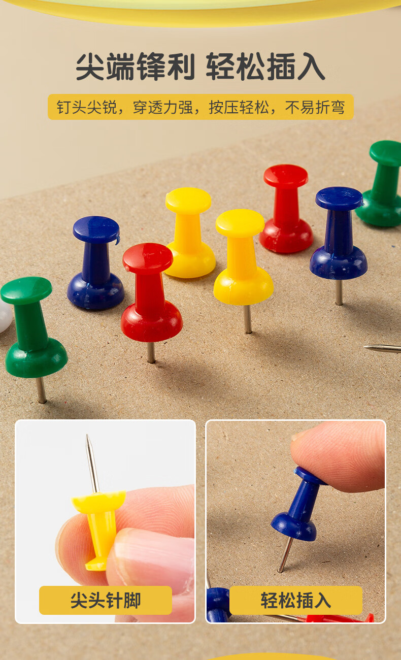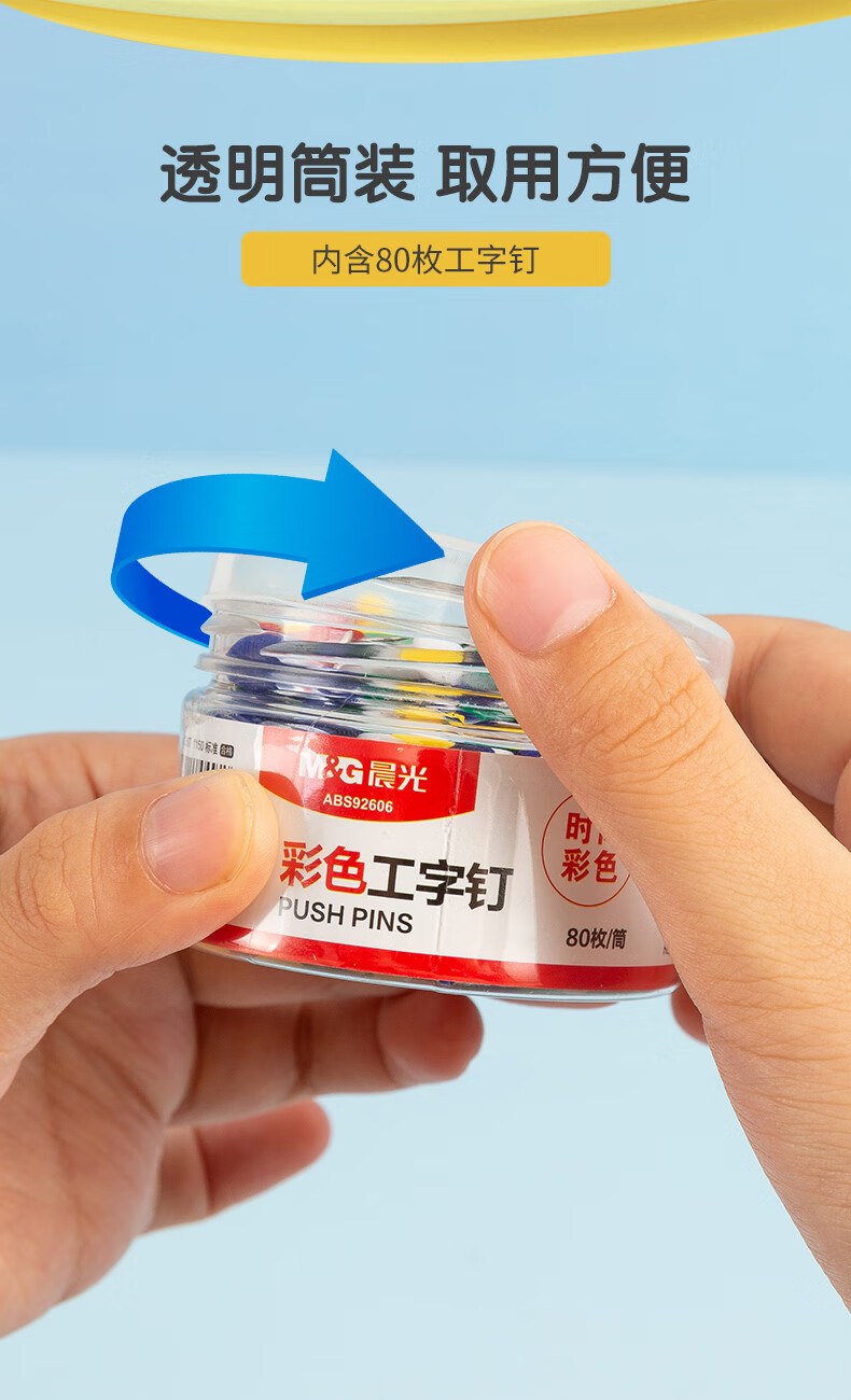 ABS92606晨光文具彩色图钉 软木画板按钉 办公工字钉 大头钉 80枚/筒