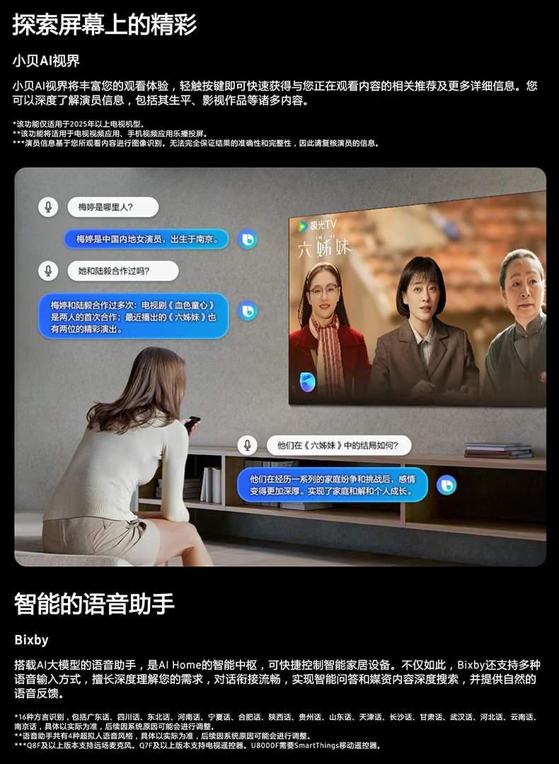 三星电视QLED量子点电视 超薄4K AI芯片85英寸Q7F系列高刷平板电视机QA85Q7FAAJXXZ