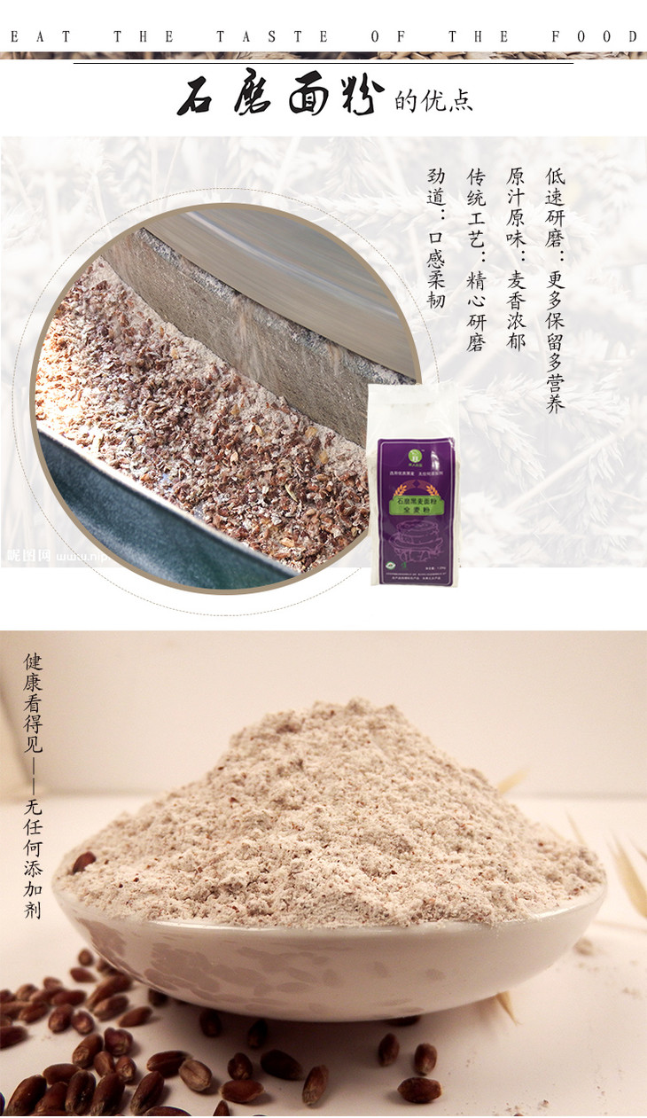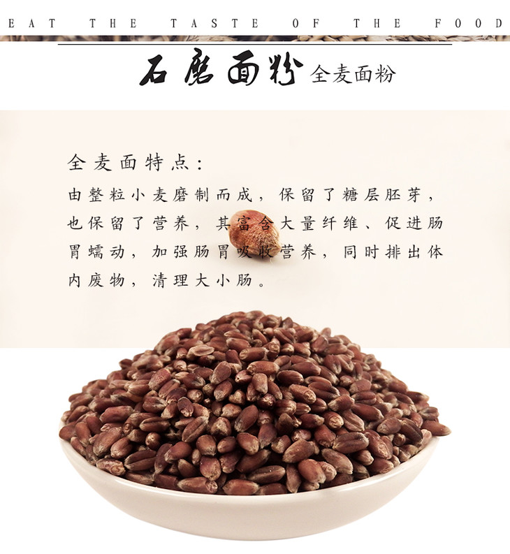 推荐理由:全麦粉是整粒小麦一起打的面,不去除麦皮,也没有任何添加!是整粒小麦包含了麸皮和胚芽全部磨成的粉,属于粗粮,小麦中的麸皮含有很高的纤维素、维生素,平衡饮食结构,提高身体素质,就是口感有点糙。适合健身减肥一族。