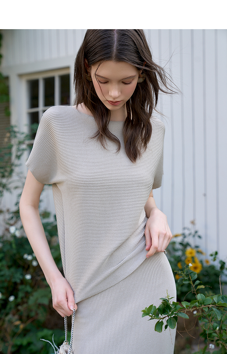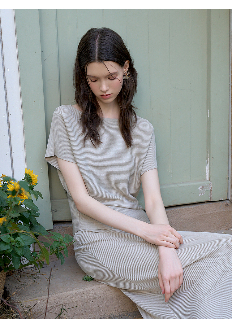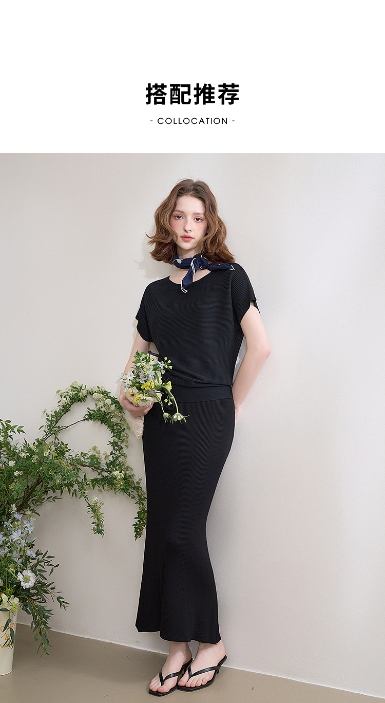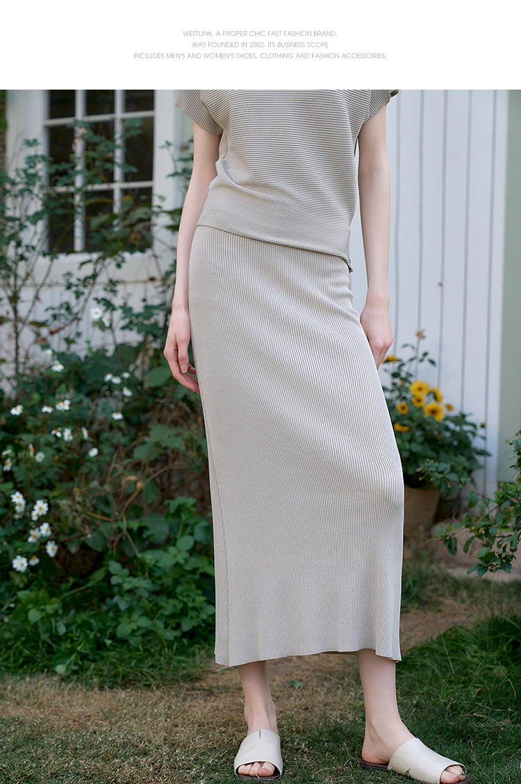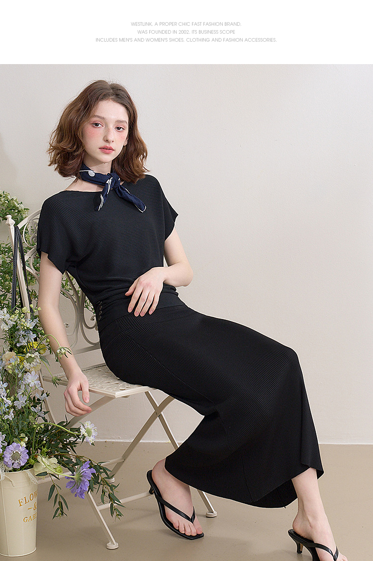 西遇高腰针织半身裙套装女新款通勤宽松短袖上衣两件套D0050396