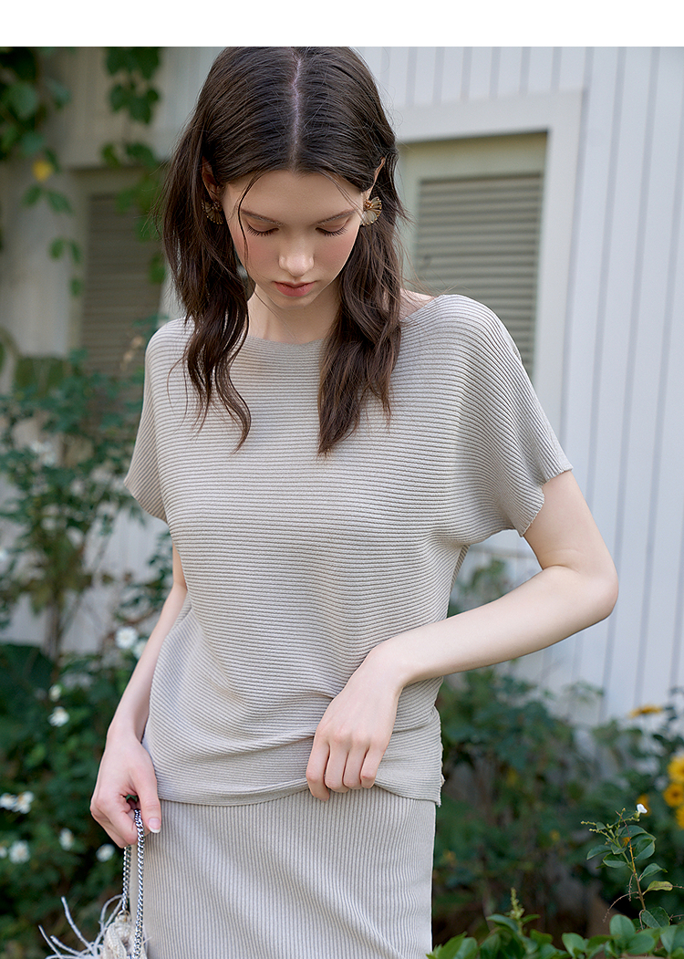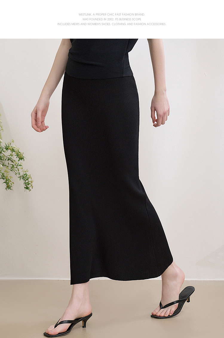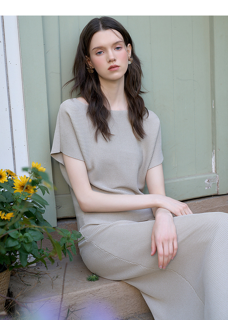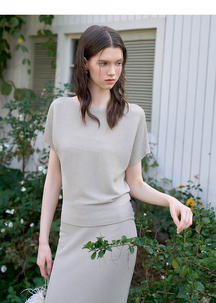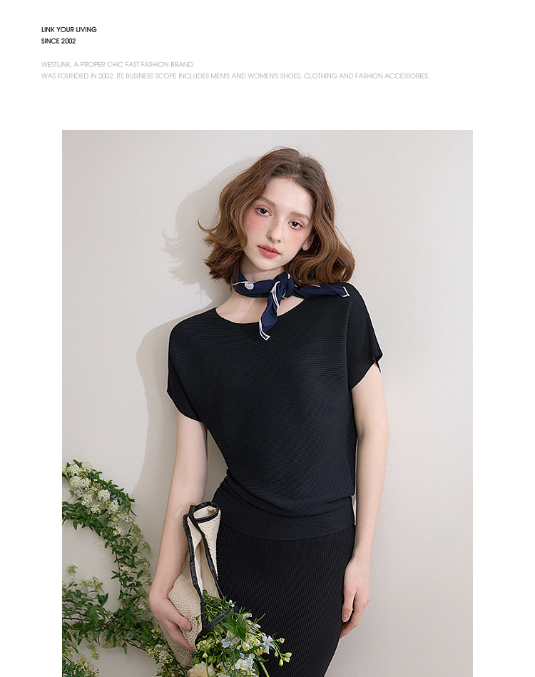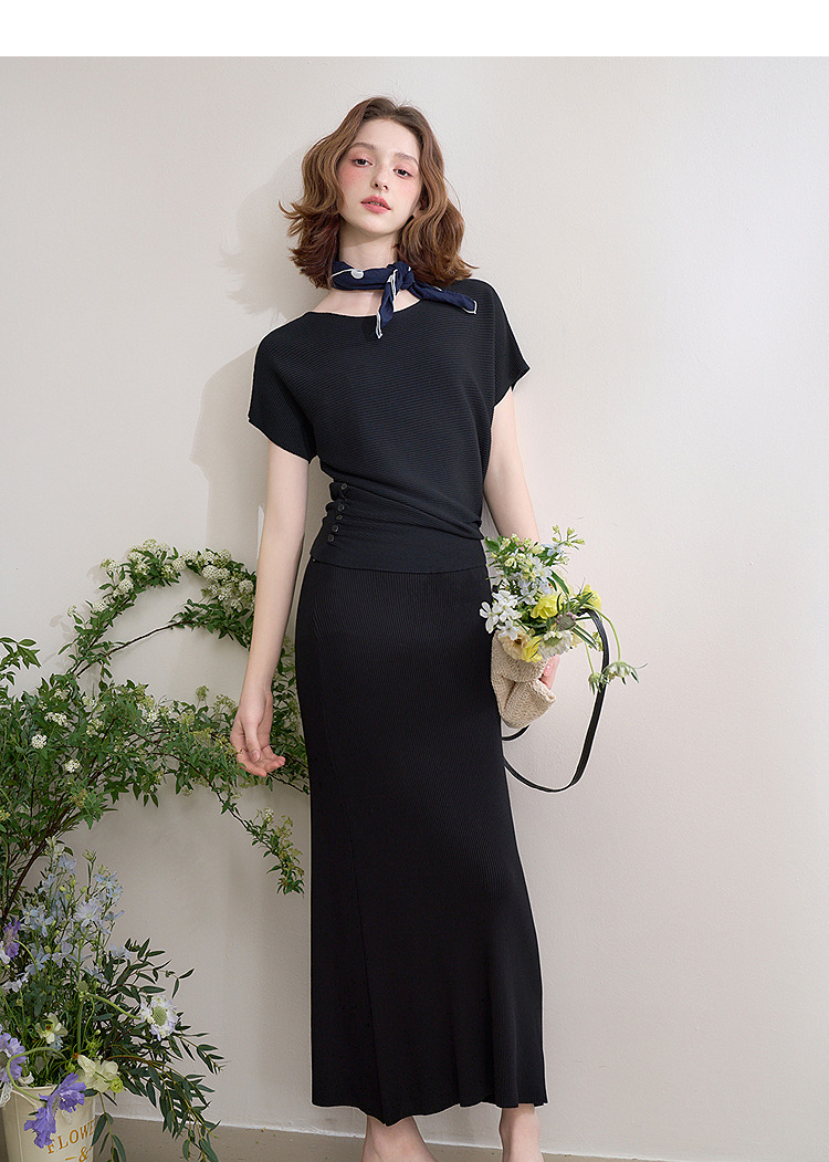 西遇高腰针织半身裙套装女新款通勤宽松短袖上衣两件套D0050396
