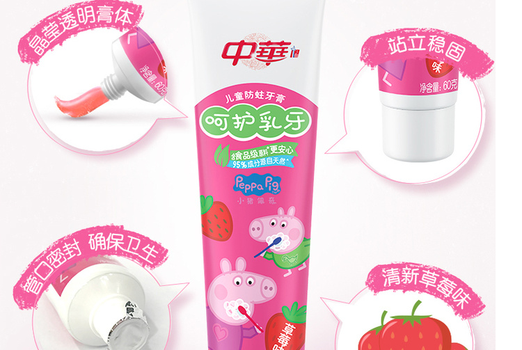 中华儿童木糖醇防蛀牙膏 呵护乳牙60g(2-6岁)草莓味/香橙味