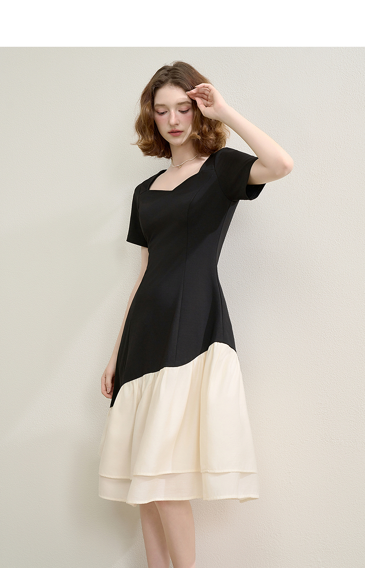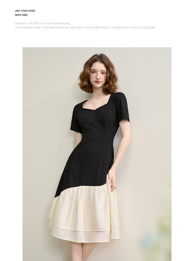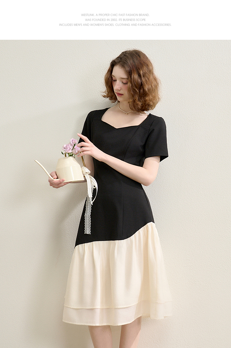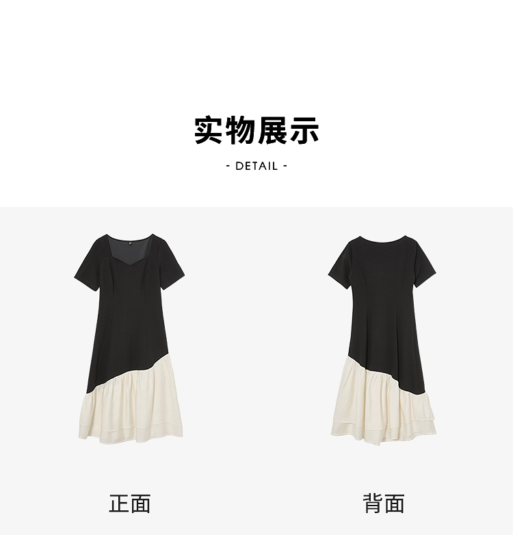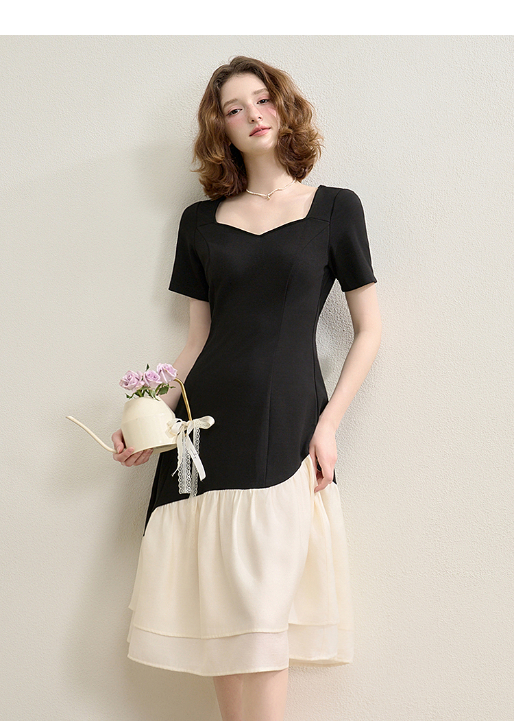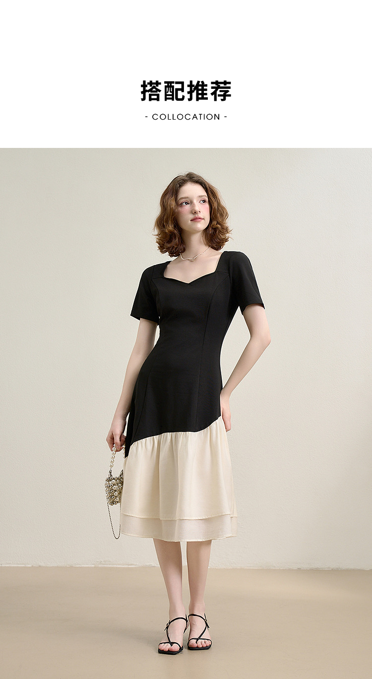 【限时秒杀】法式浪漫气质优雅撞色拼接针织裙女夏季短袖连衣裙LXD50681