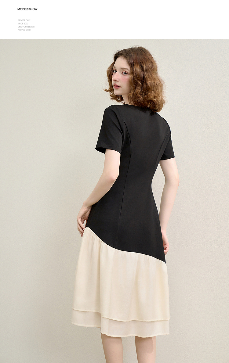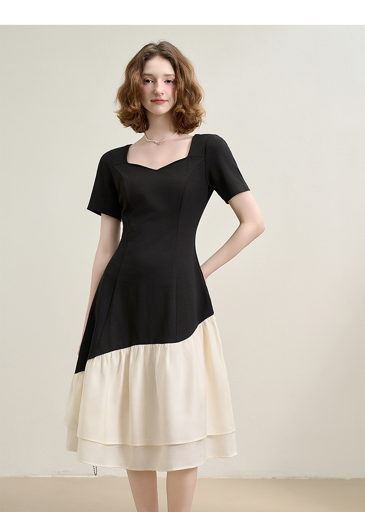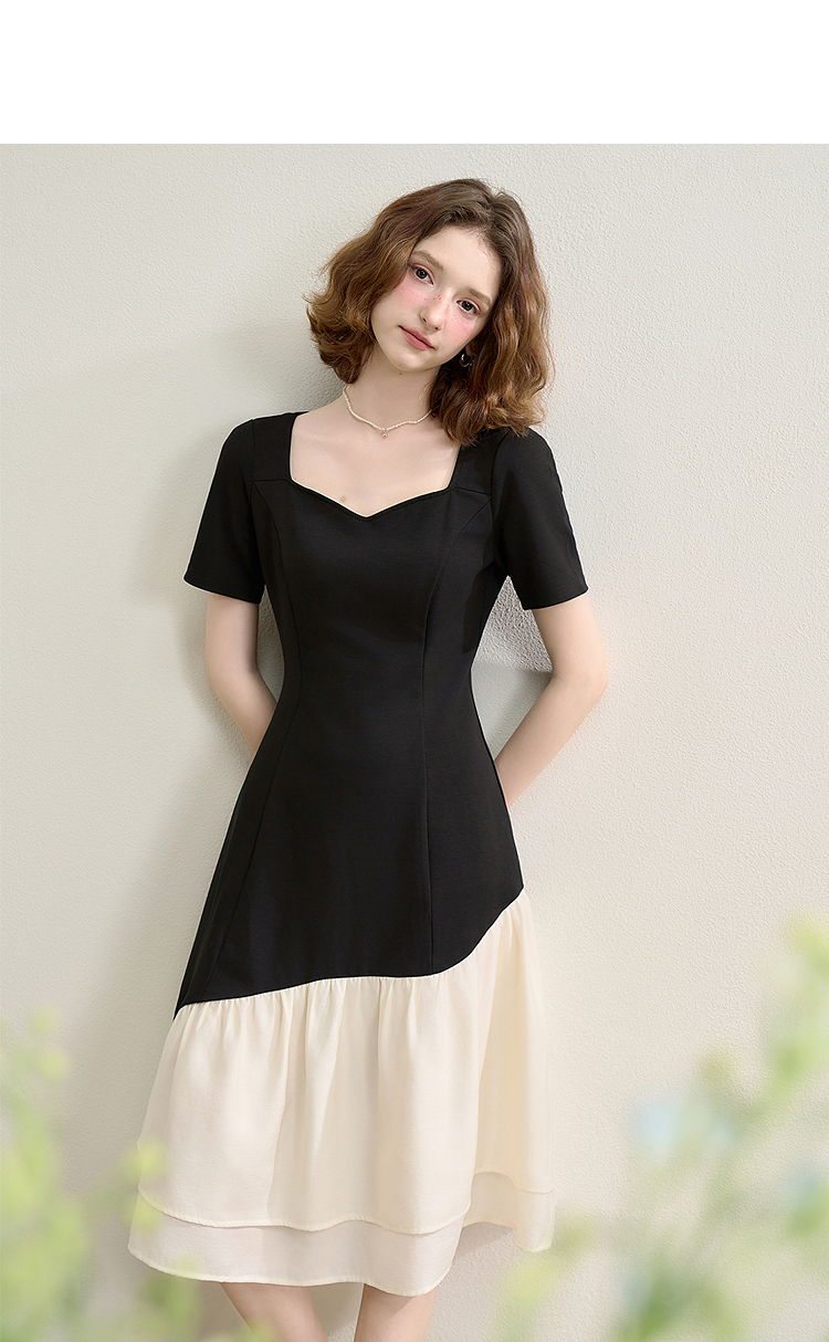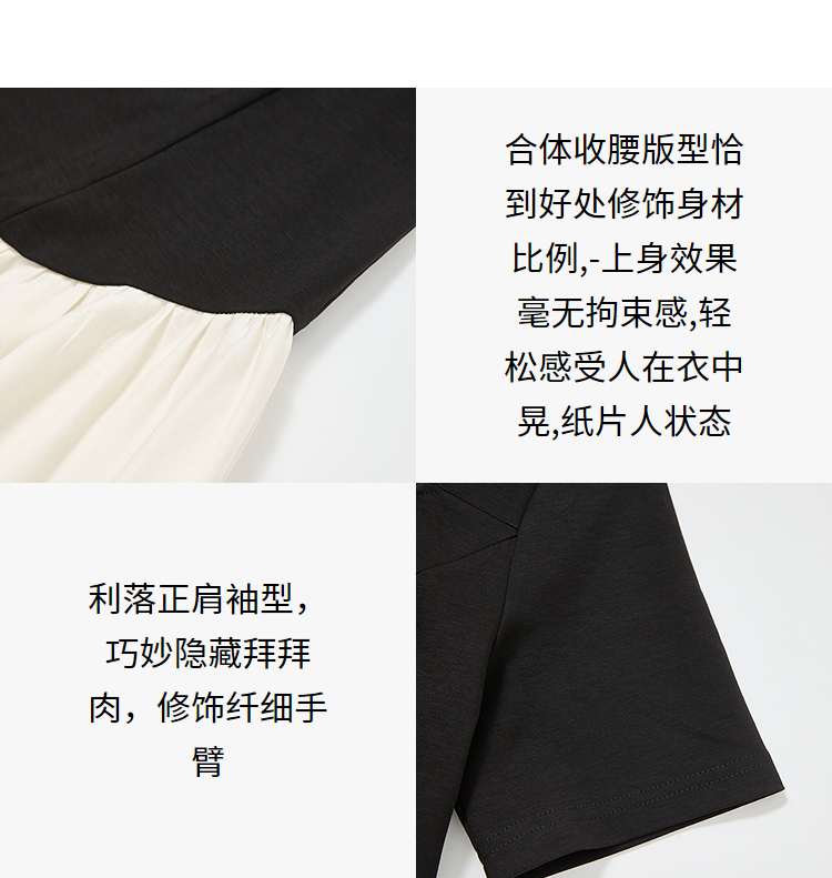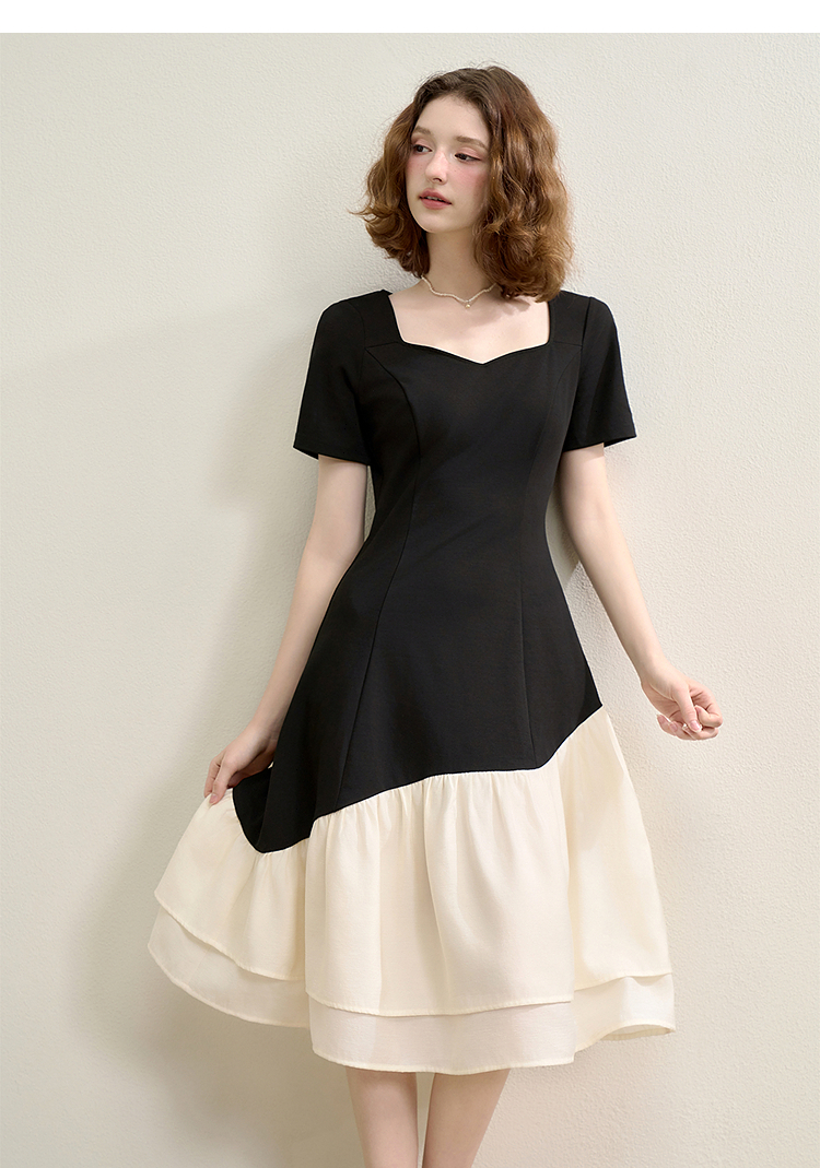 【限时秒杀】法式浪漫气质优雅撞色拼接针织裙女夏季短袖连衣裙LXD50681