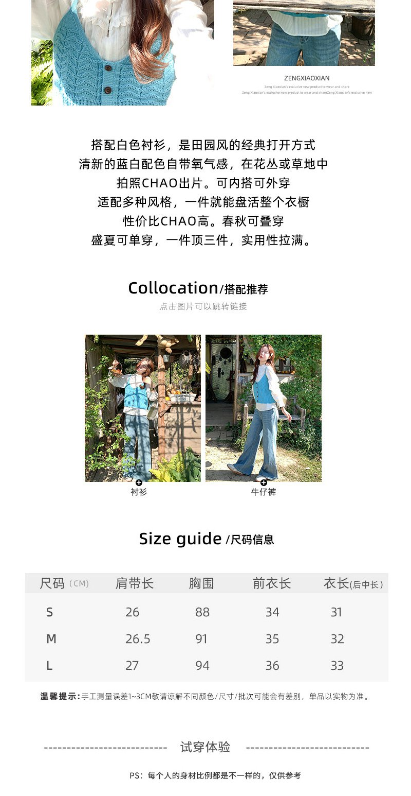 <曾小咸推荐>韩系蓝色叠穿针织马甲吊带