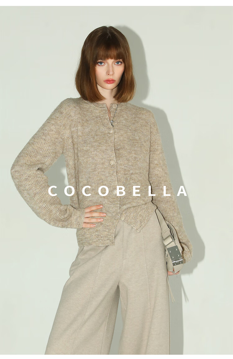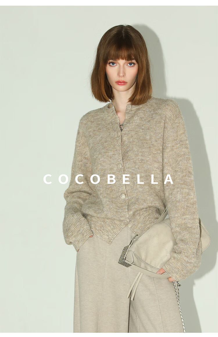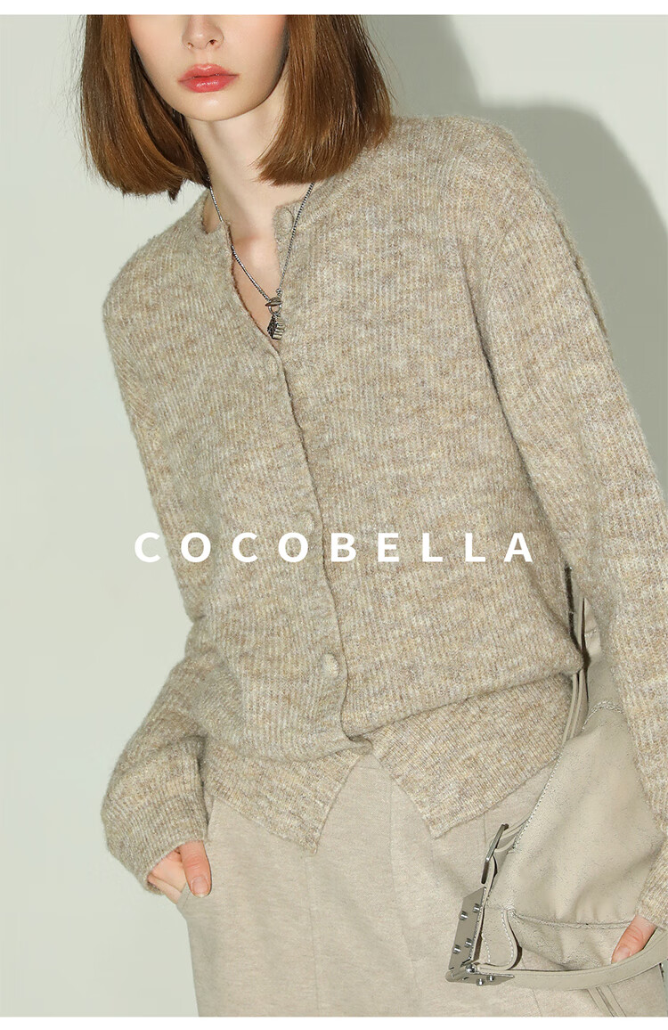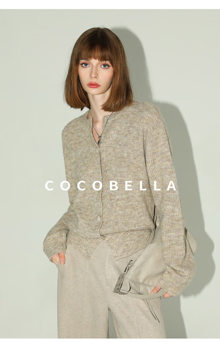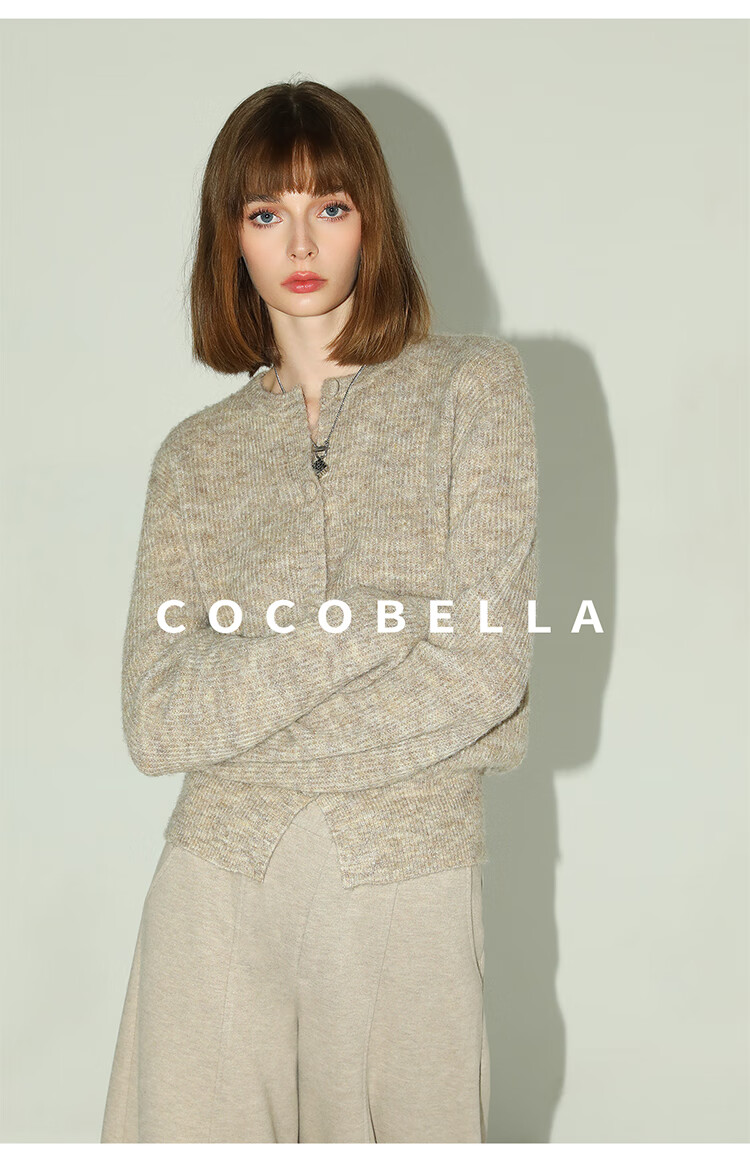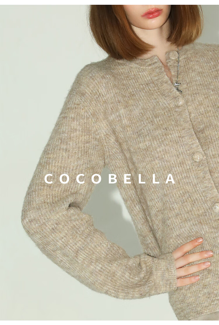 COCOBELLA静奢风慵懒惬意花纱针织衫短款裸领毛衣开衫MZ7063