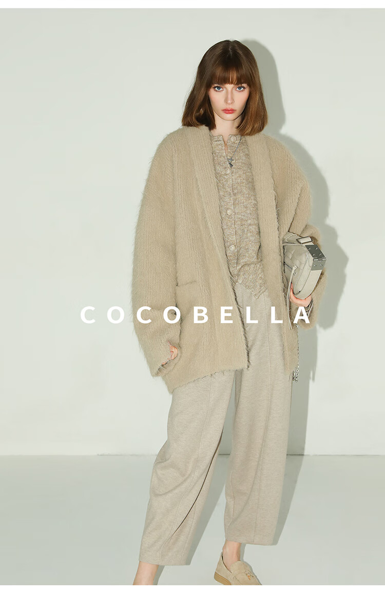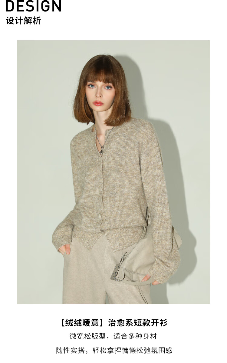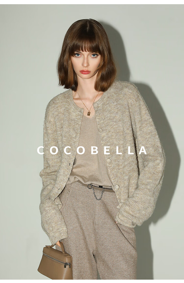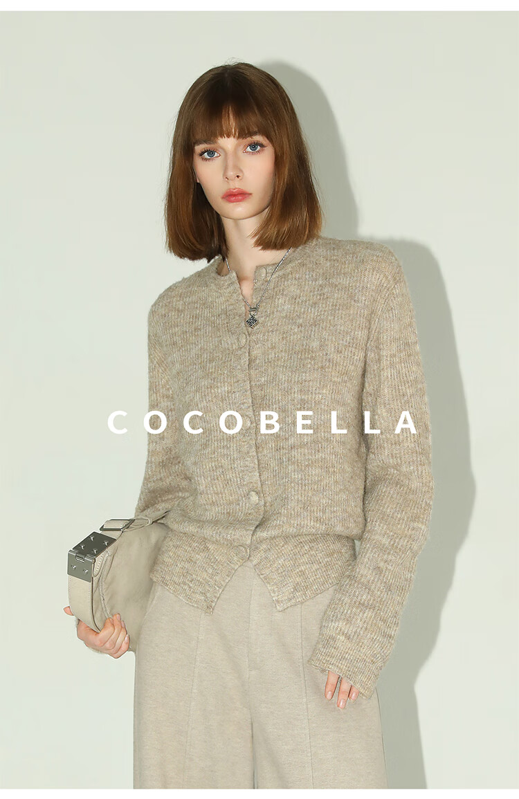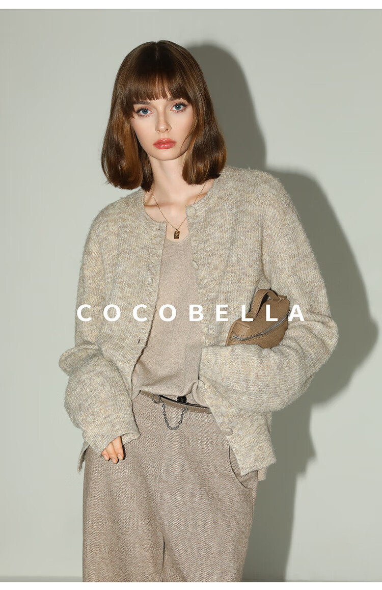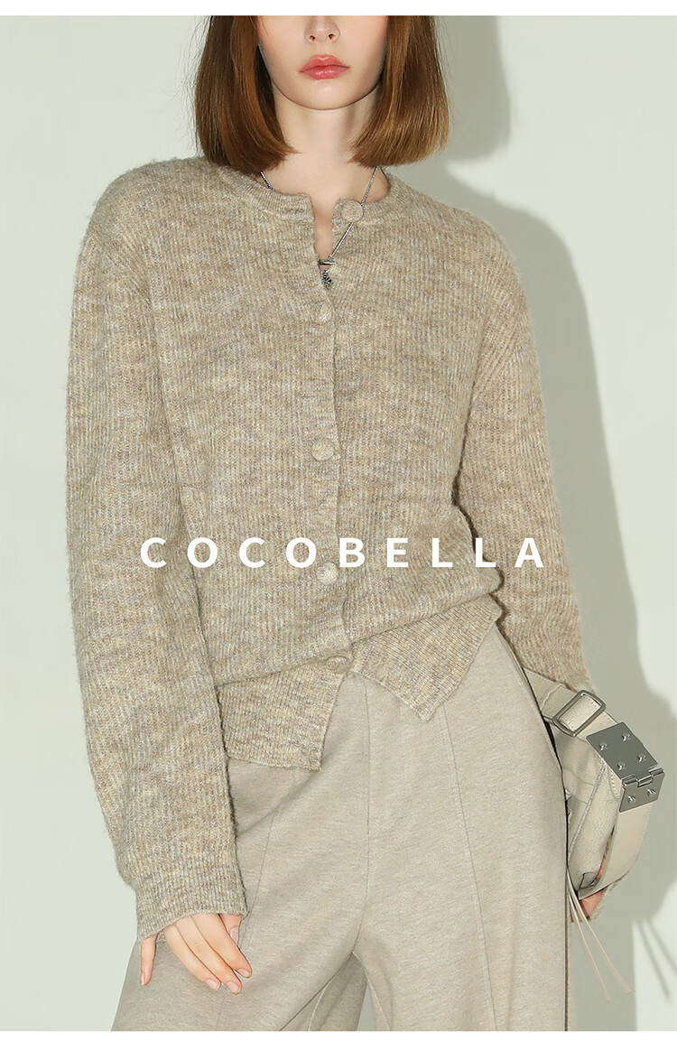COCOBELLA静奢风慵懒惬意花纱针织衫短款裸领毛衣开衫MZ7063