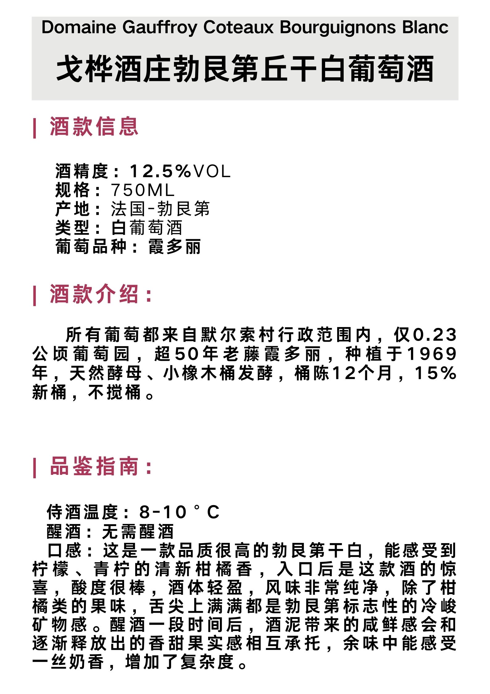 戈桦酒庄勃艮第丘干白葡萄酒 Domaine Gauffroy Coteaux Bourguignons Blanc