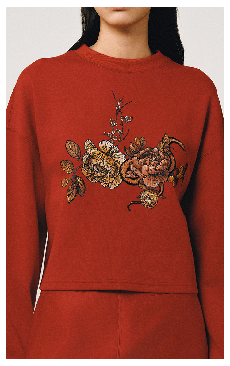 (秋季新品)【JASON WU】(多色)25年新款通勤印花刺绣短款上衣卫衣女