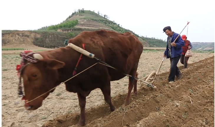 采用传统的耕作方式,人工翻地、整地、播种、施农家肥、除草);秋收季节(割谷穗、晾晒、打场、扇车(去杂质)、储存、碾磨。