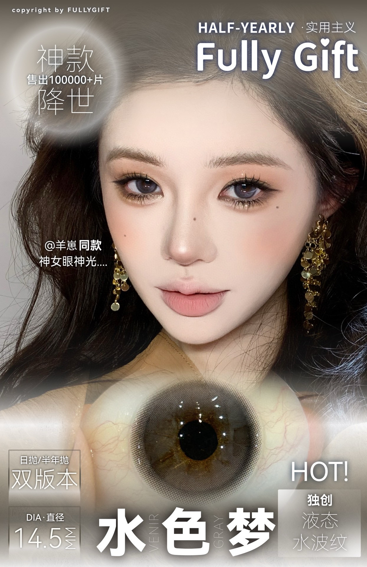 【日抛和半年抛】 水色梦 fullygift | 大直径14.5,着色直径13.8 |【同品牌多盒或多副购买更划算,具体活动可以咨询在线客服】灰色美瞳 无锁边美瞳
