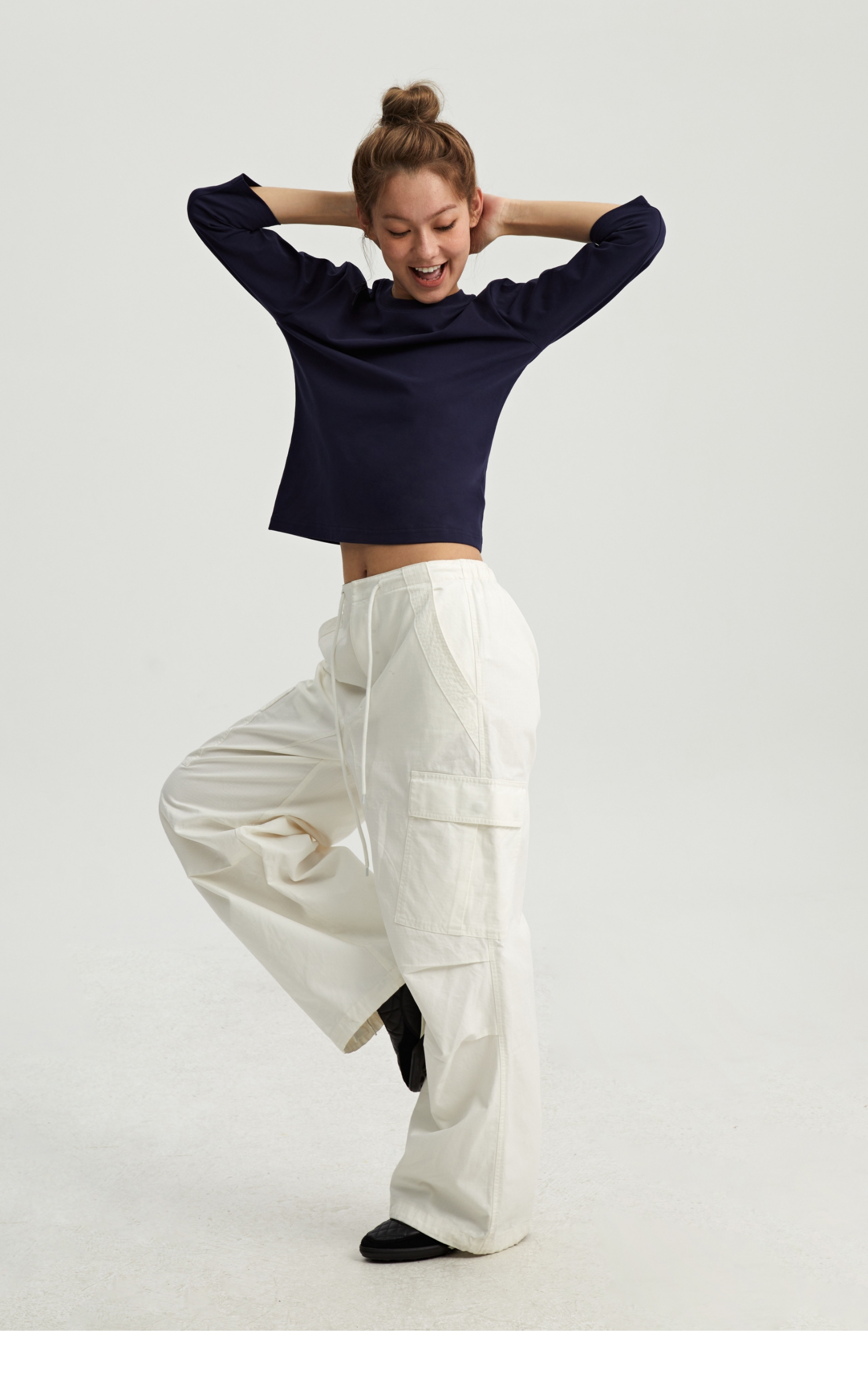 oneup亚麻宽松圆领长袖