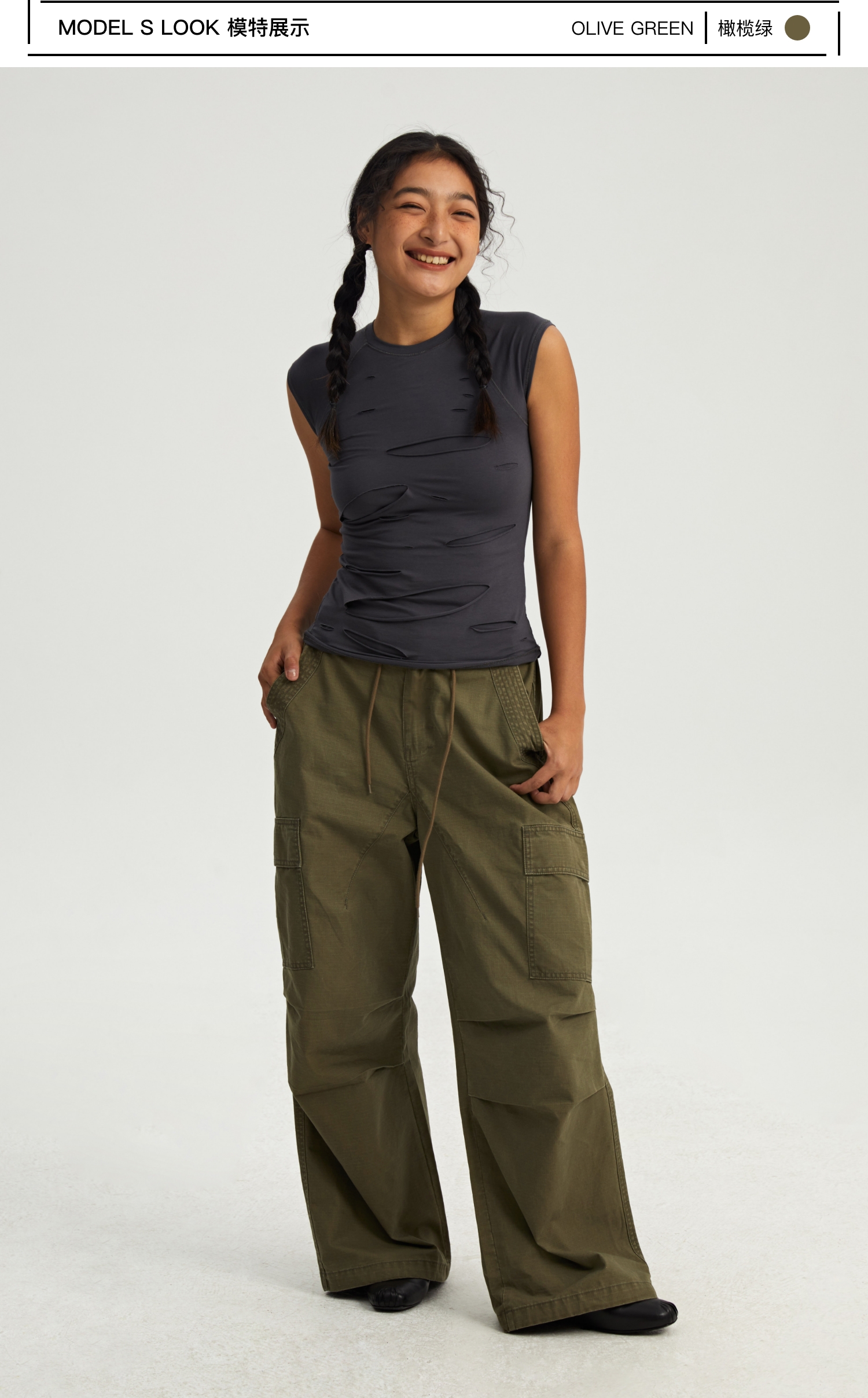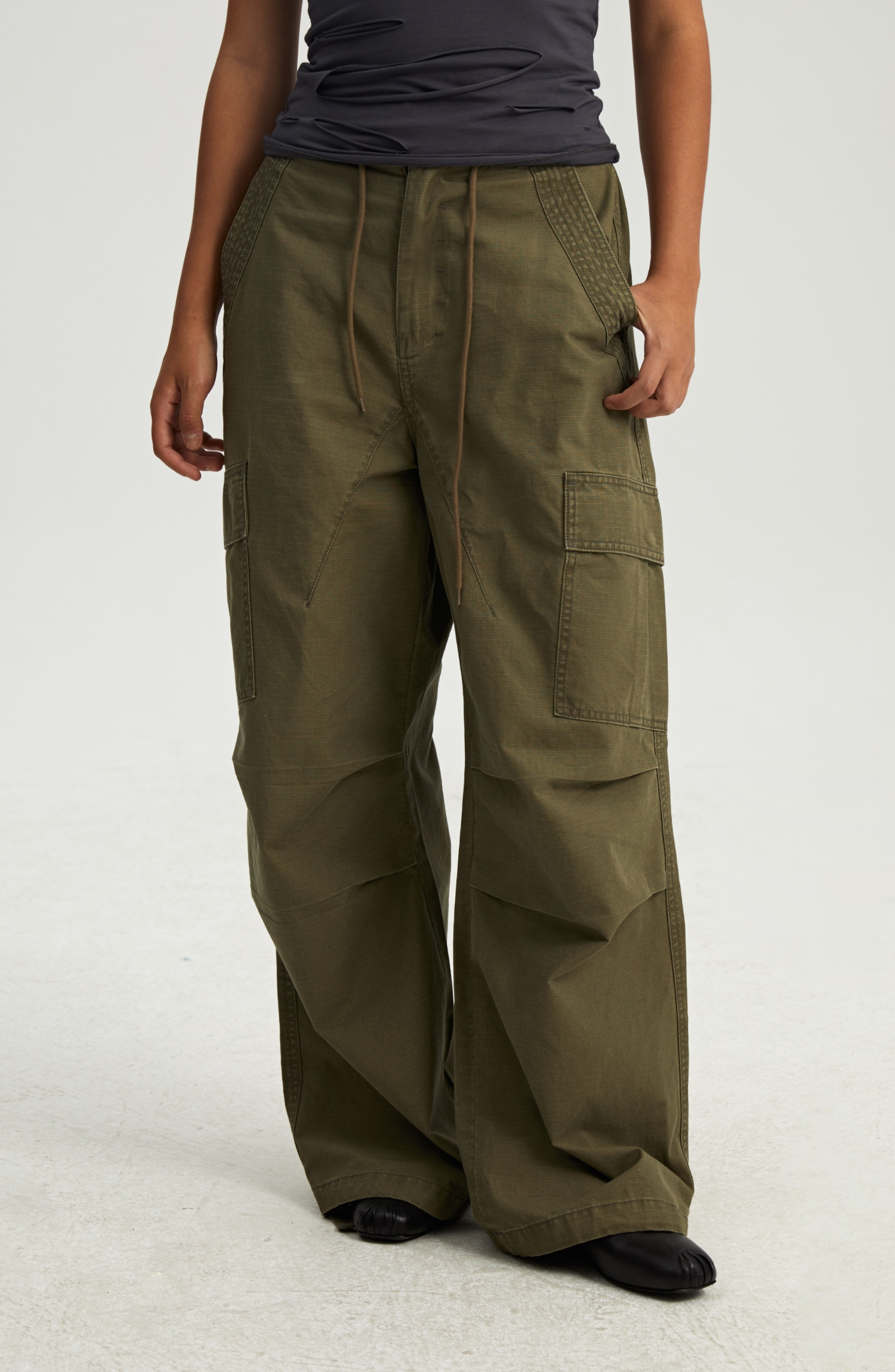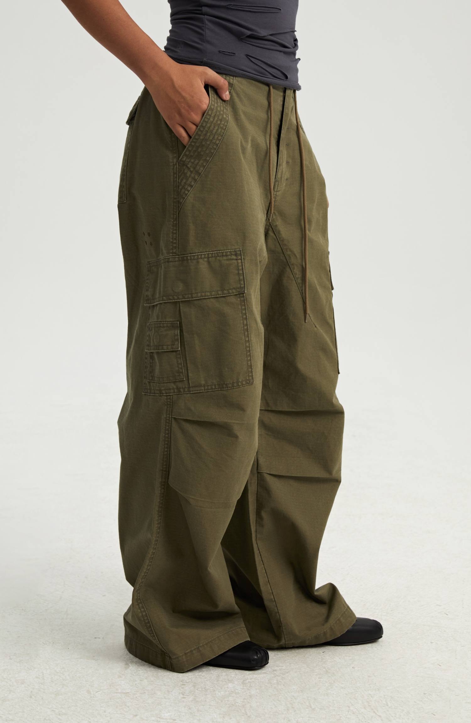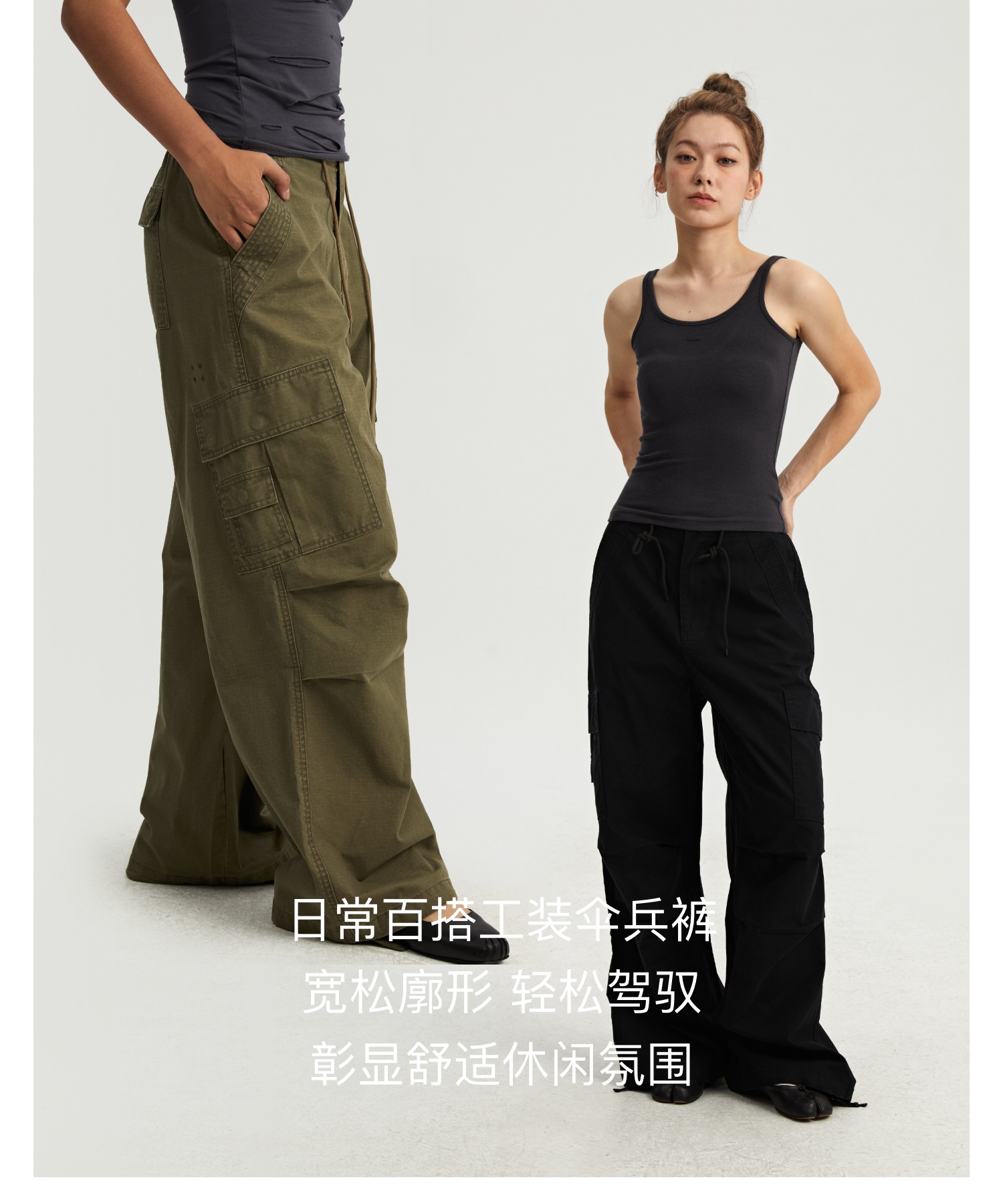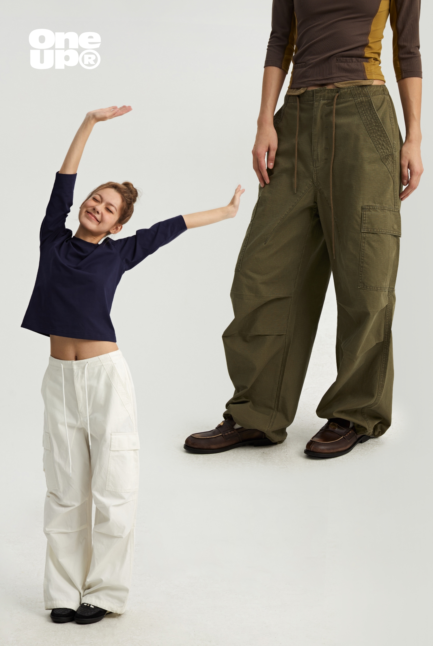 oneup格子工装伞兵裤