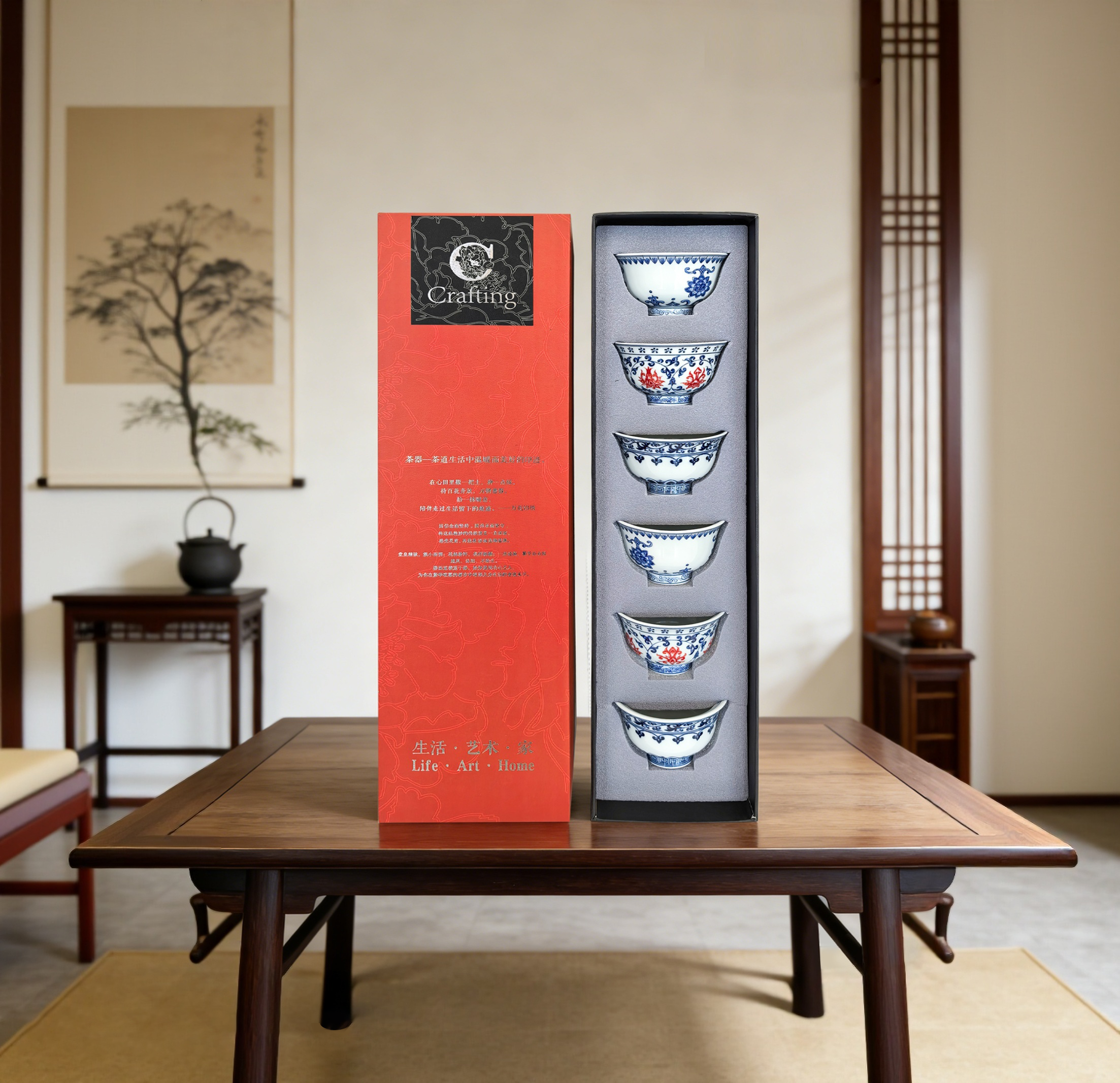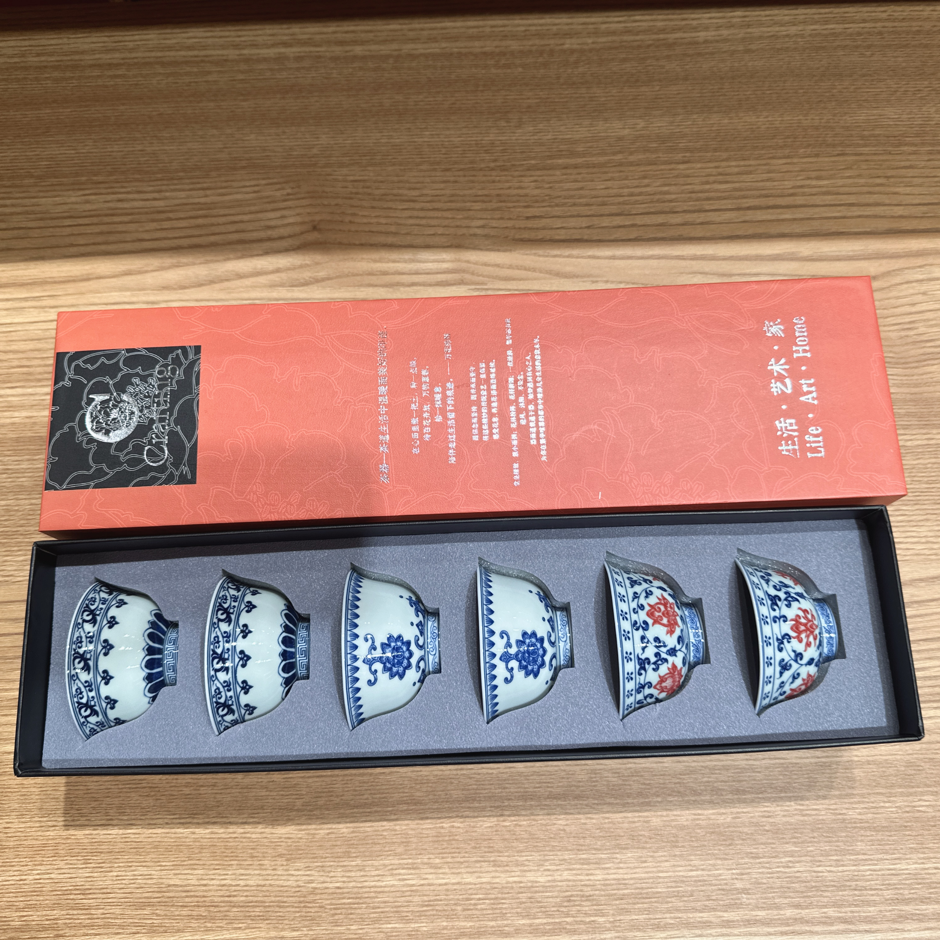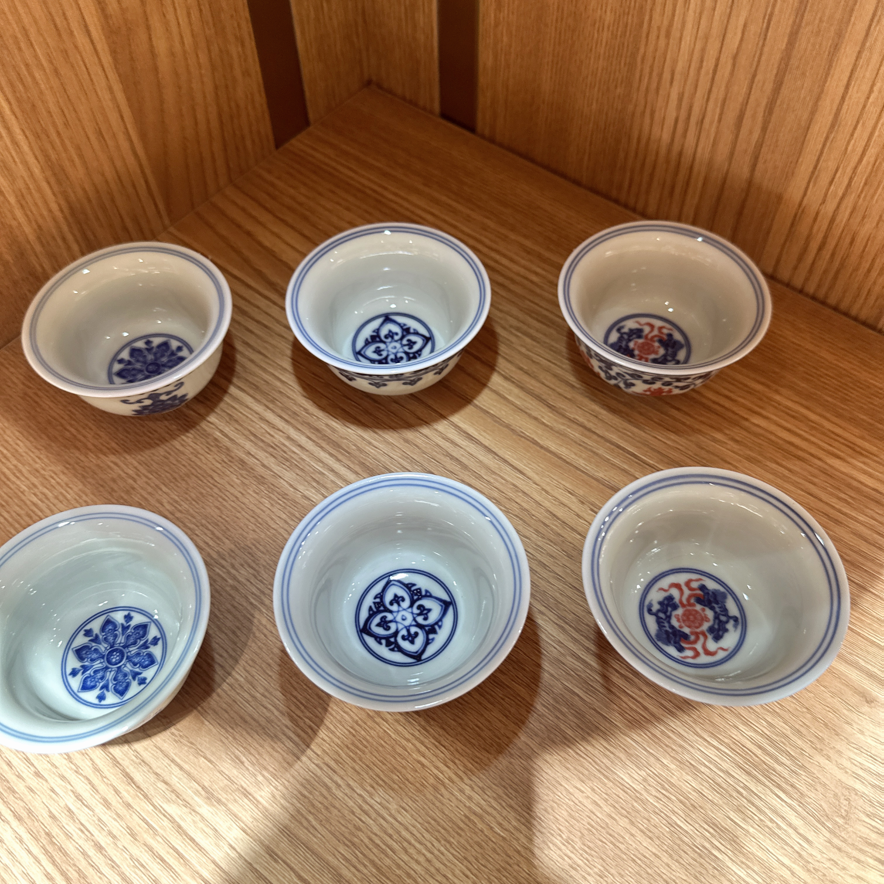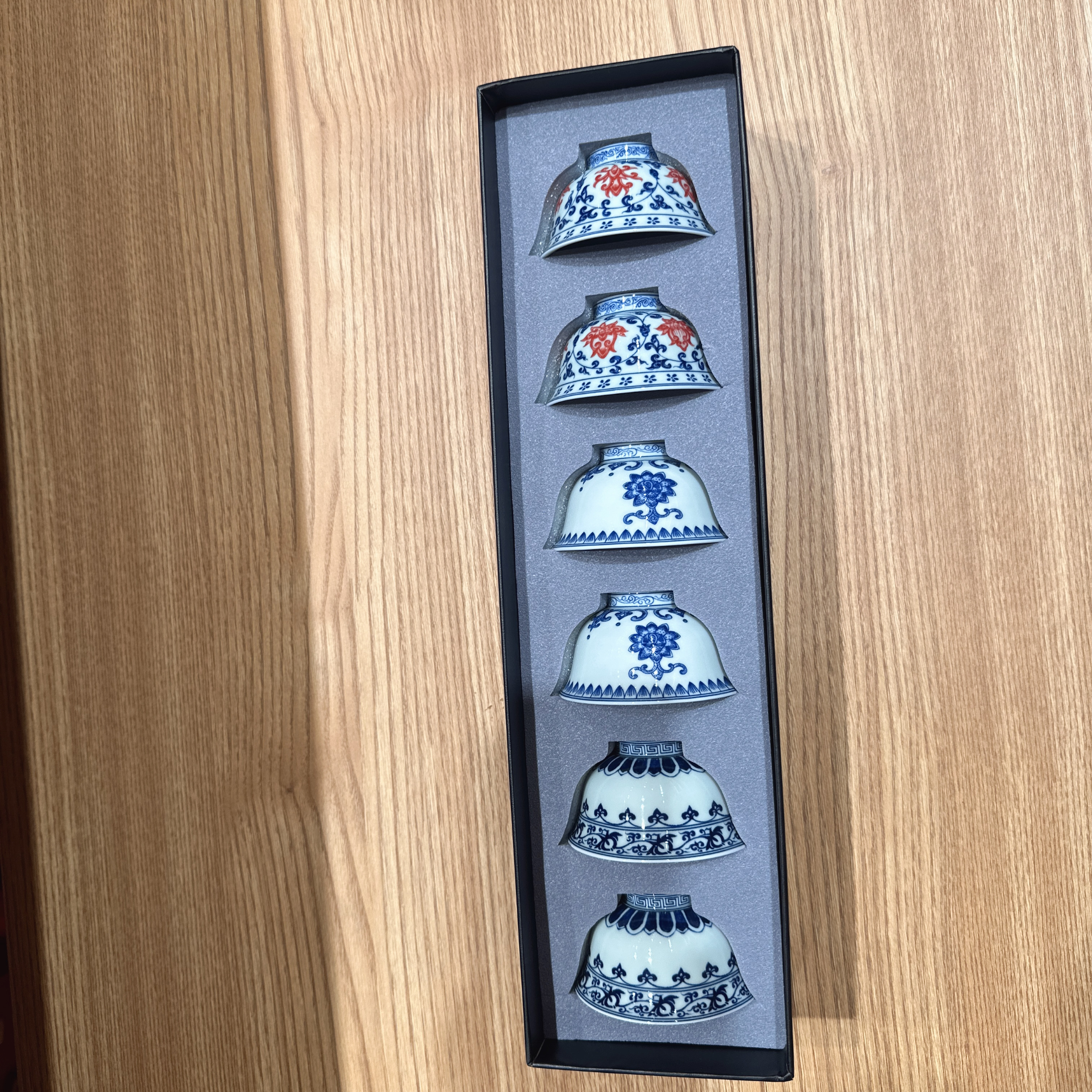 成艺工坊高档功夫茶器茶碗陶瓷茶具青花系列主人杯6杯装