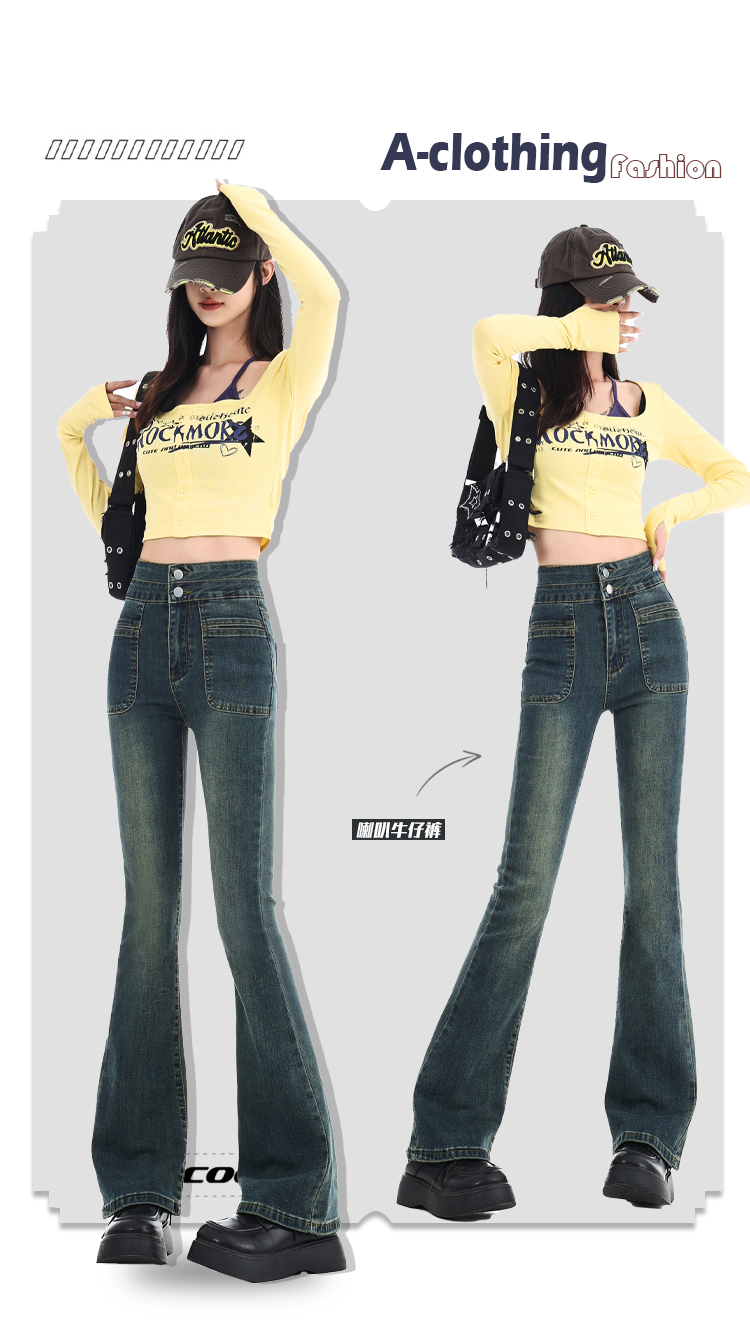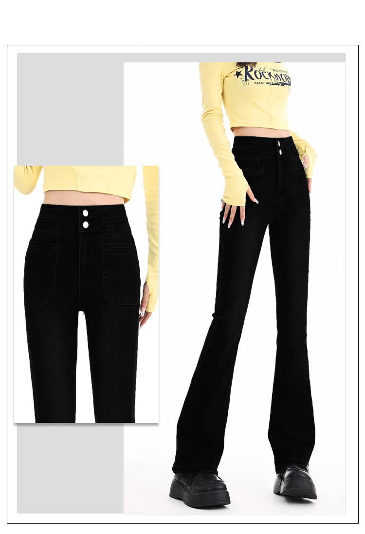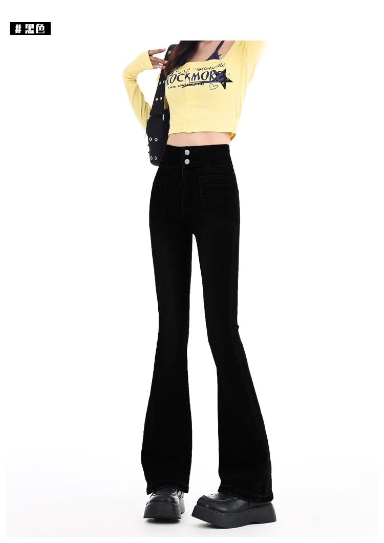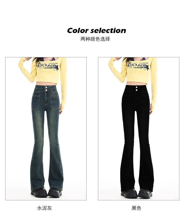 罗蒙四季可穿女士百搭牛仔裤休闲高腰显瘦微喇裤舒适通勤女长裤