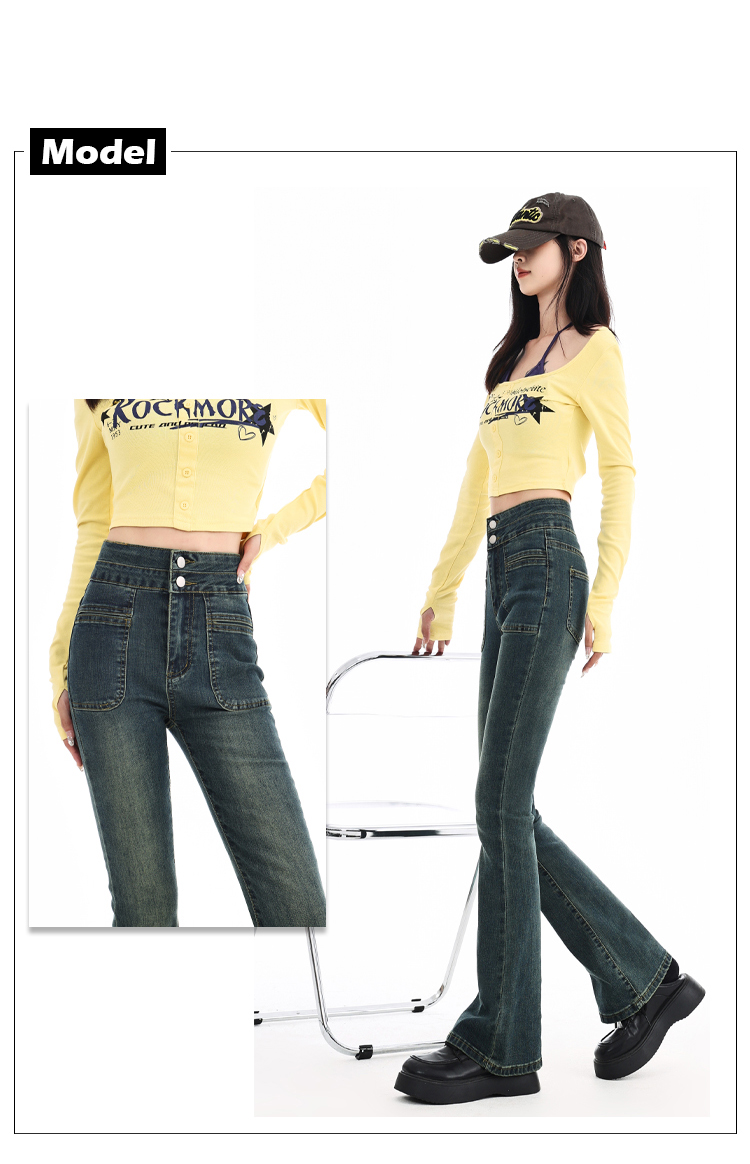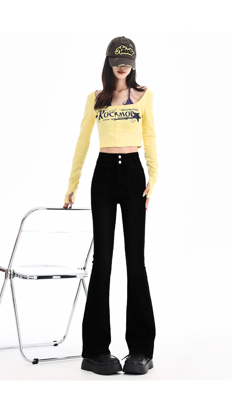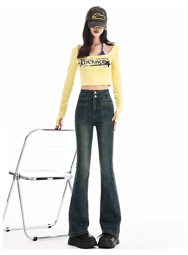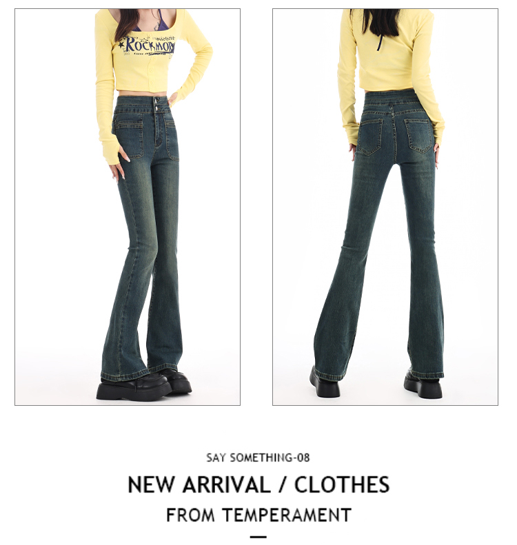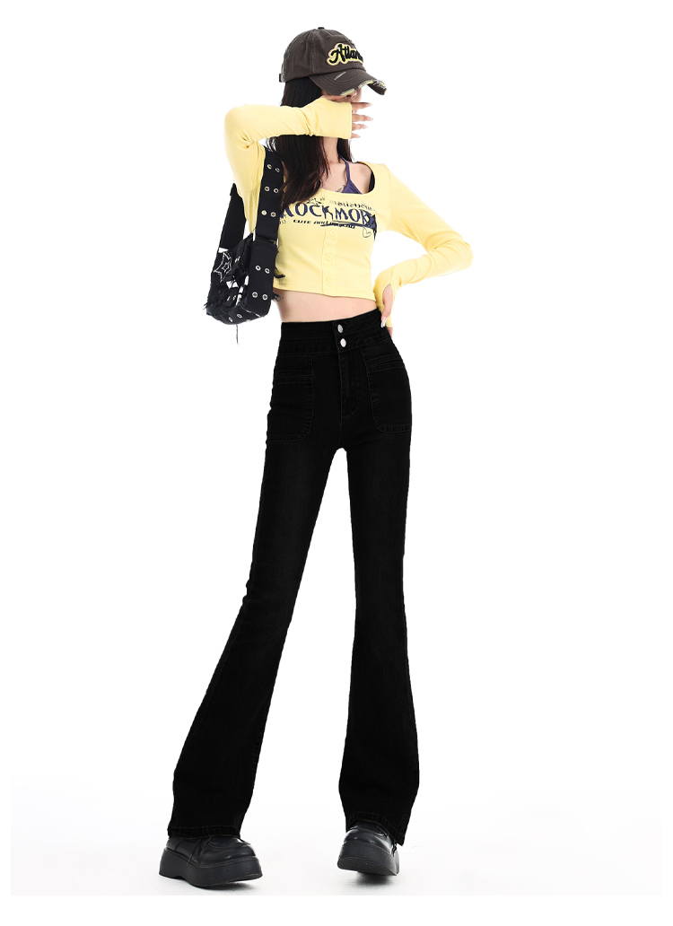 罗蒙四季可穿女士百搭牛仔裤休闲高腰显瘦微喇裤舒适通勤女长裤