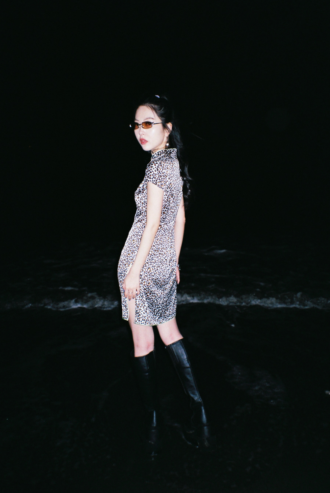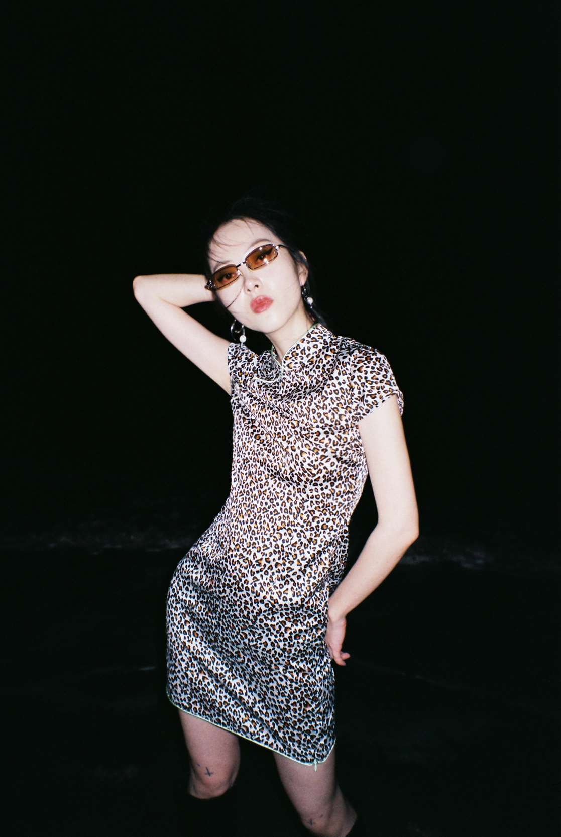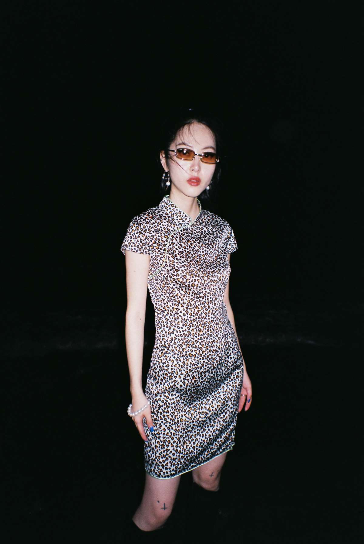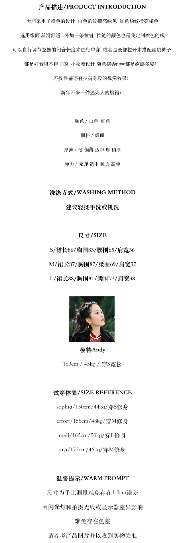 EhK 春夏 新年鸿运 白色拼色可调拉链 豹纹旗袍连衣裙年会礼服裙