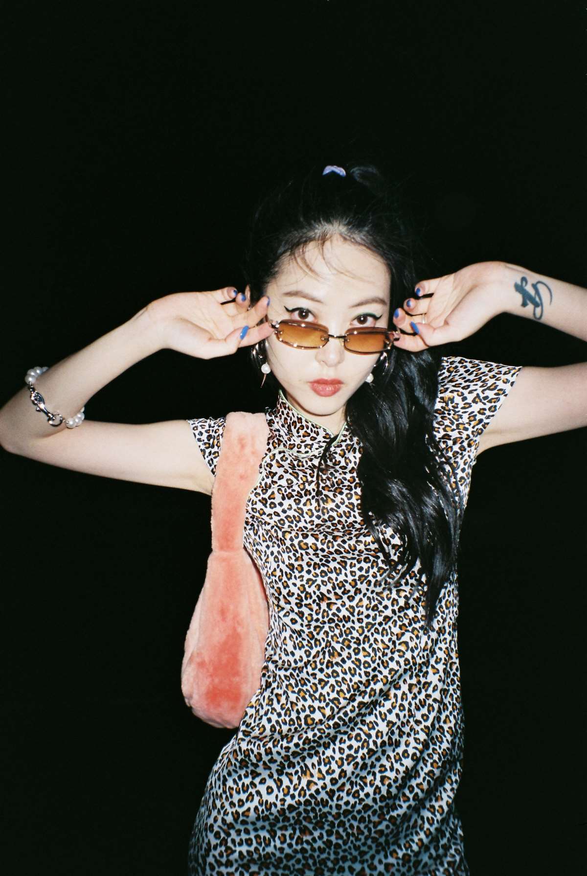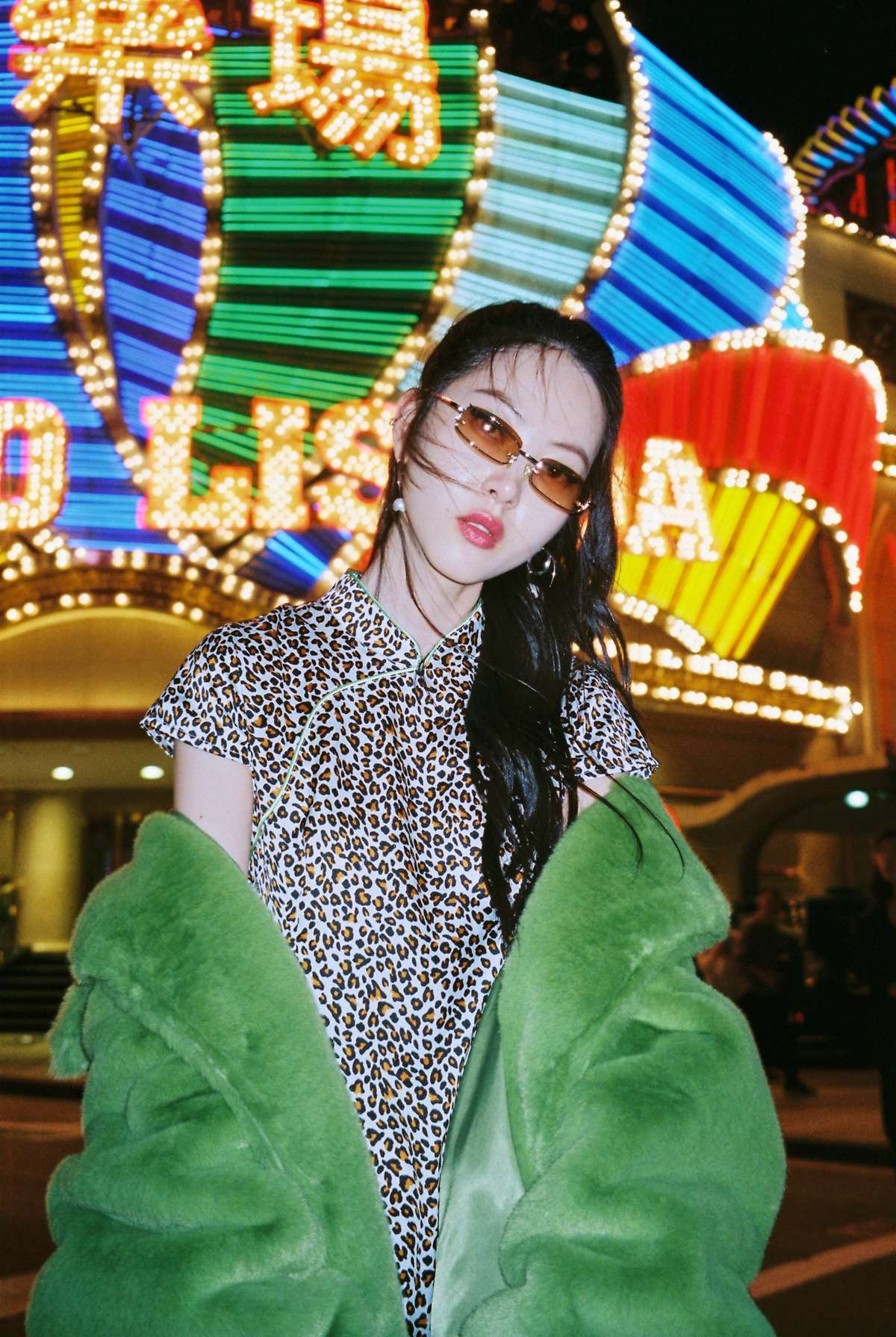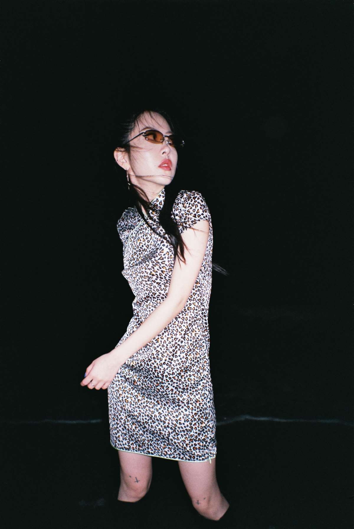 EhK 春夏 新年鸿运 白色拼色可调拉链 豹纹旗袍连衣裙年会礼服裙