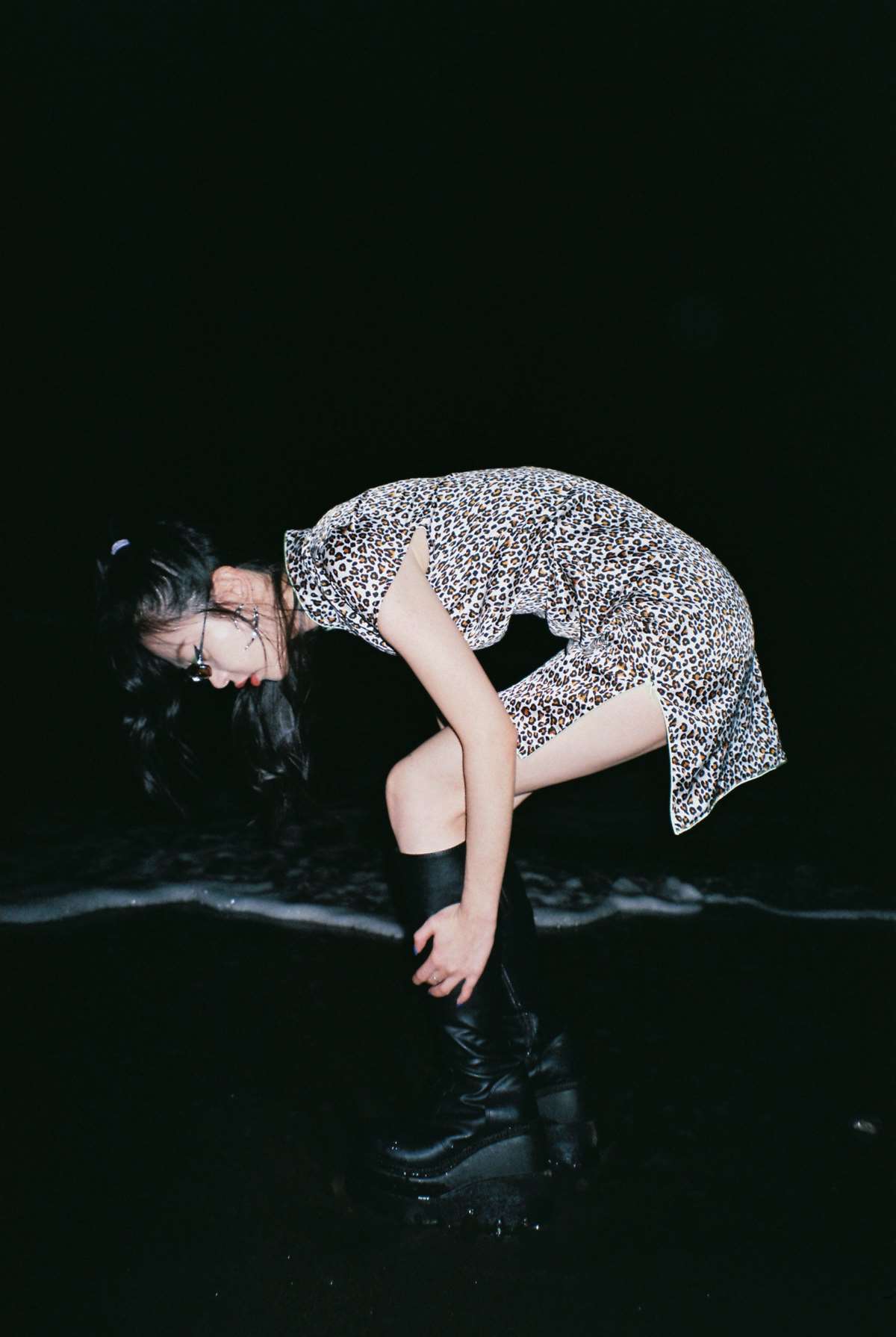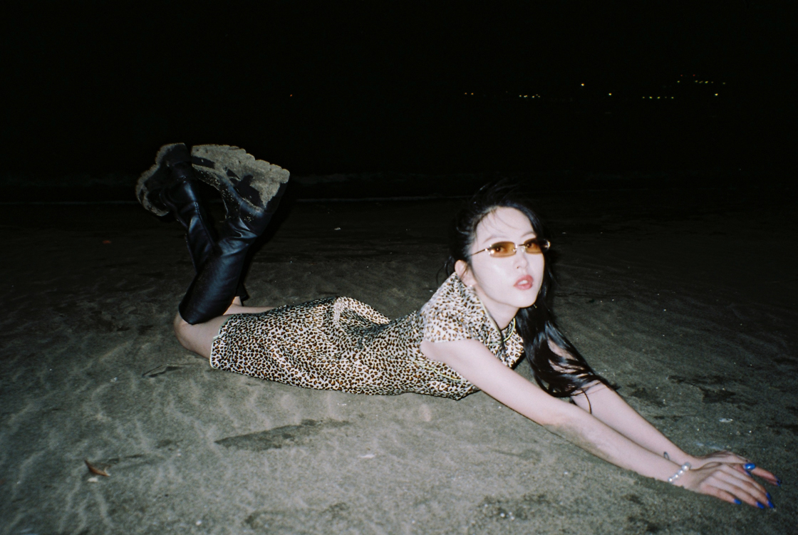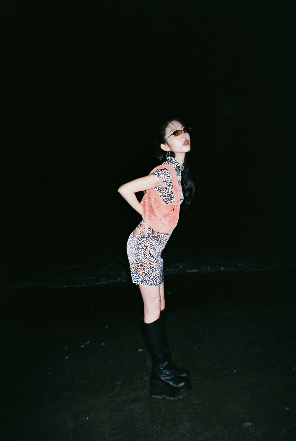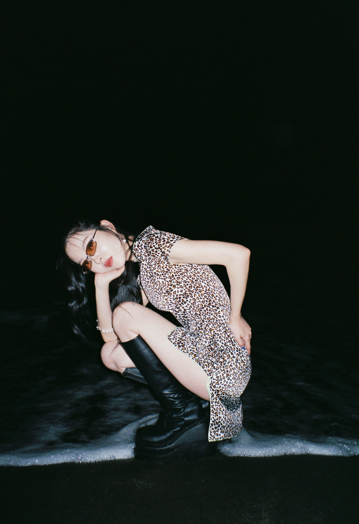 EhK 春夏 新年鸿运 白色拼色可调拉链 豹纹旗袍连衣裙年会礼服裙