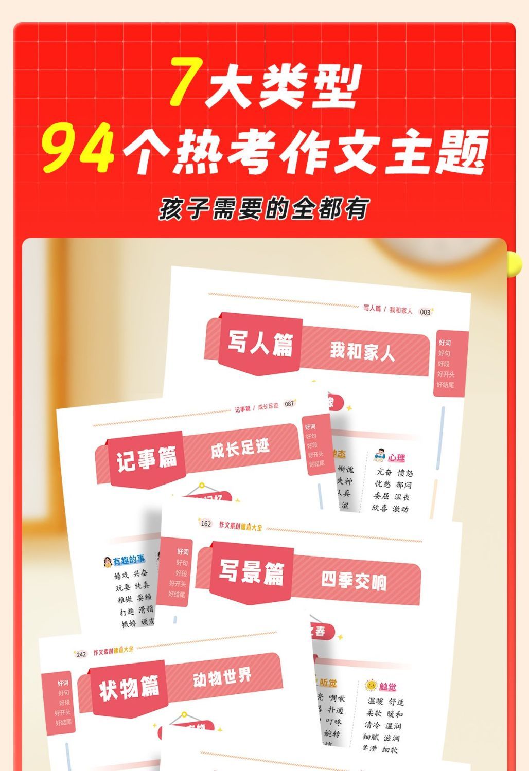 小学作文素材速查大全1-9年级词语积累作文金句归类大全优美句子好词好句素材素材