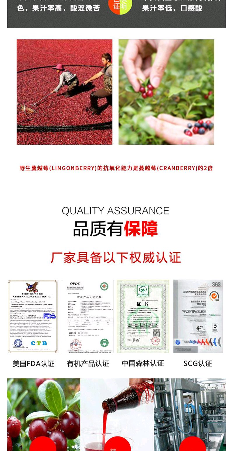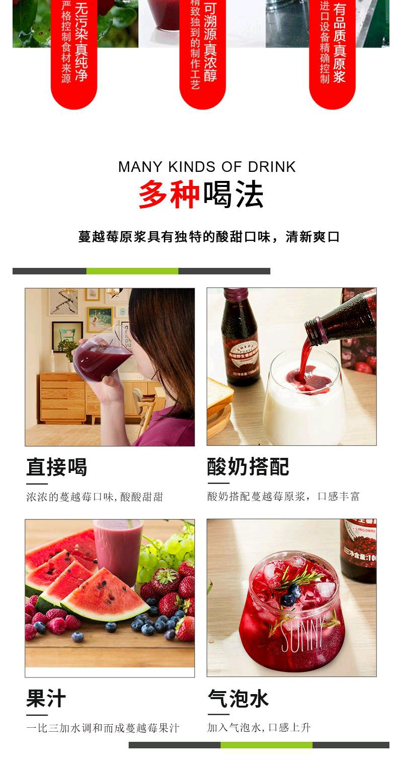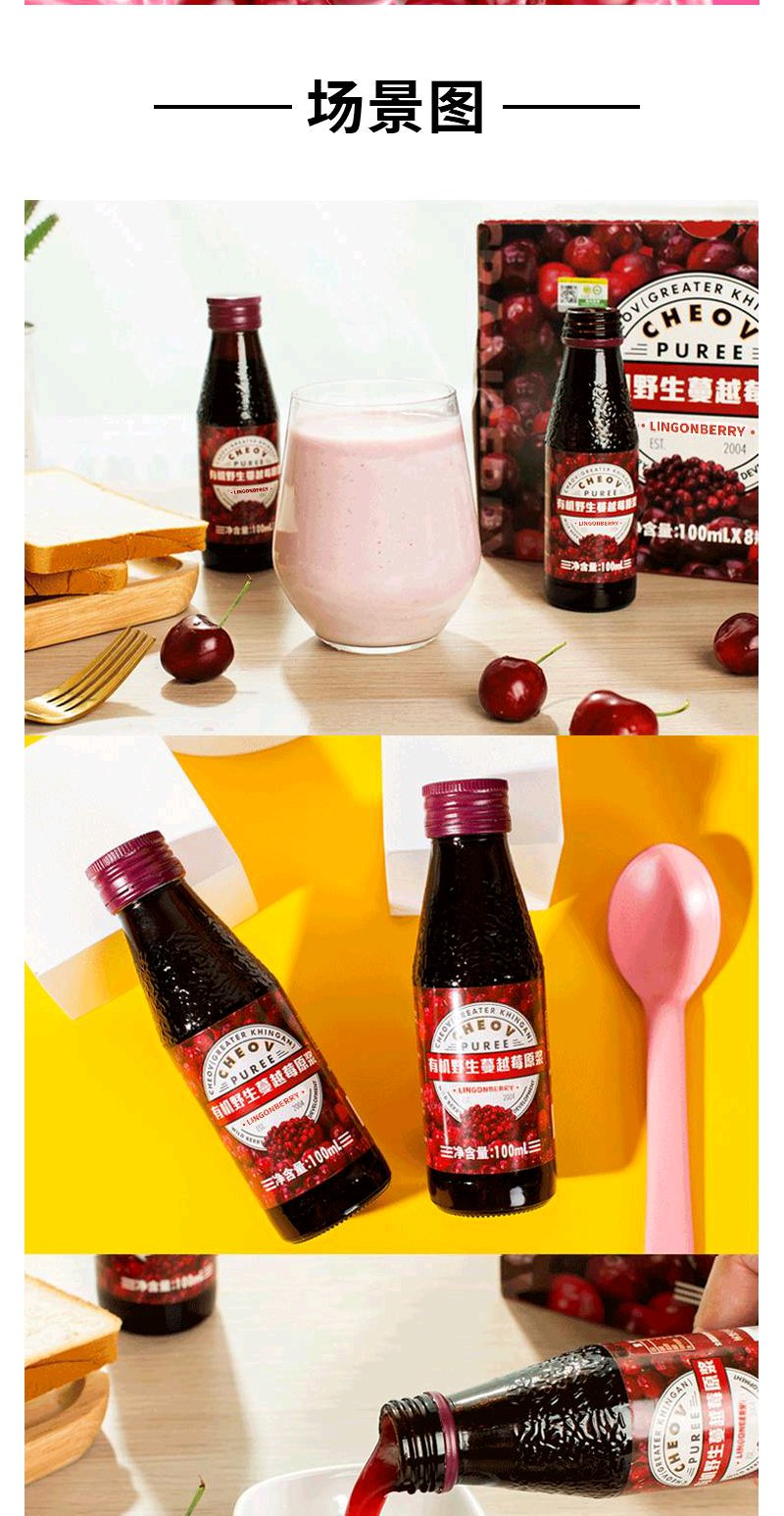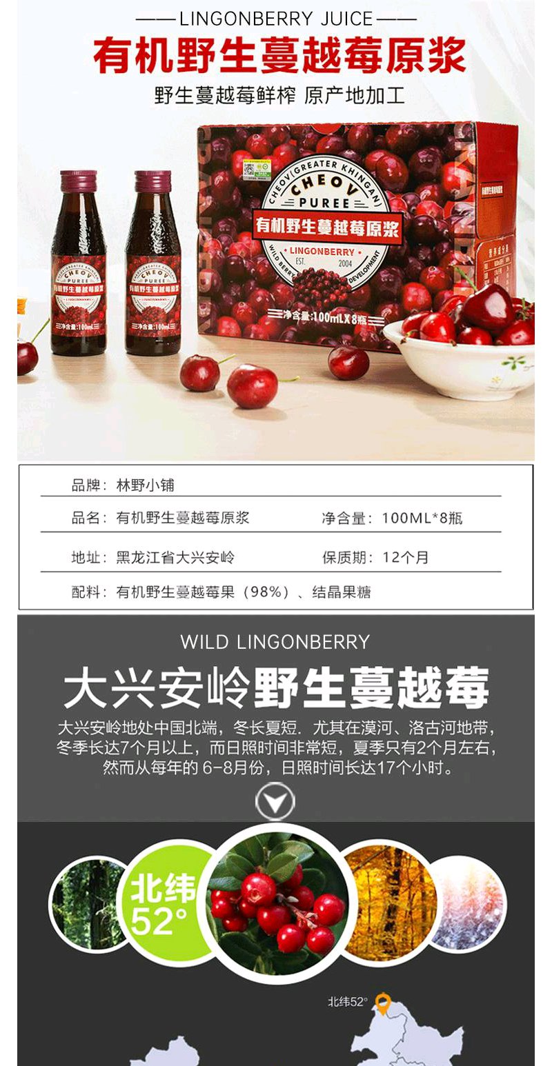 北纬52度大兴安岭产区有野生蔓越莓原浆100ml*8瓶盒装