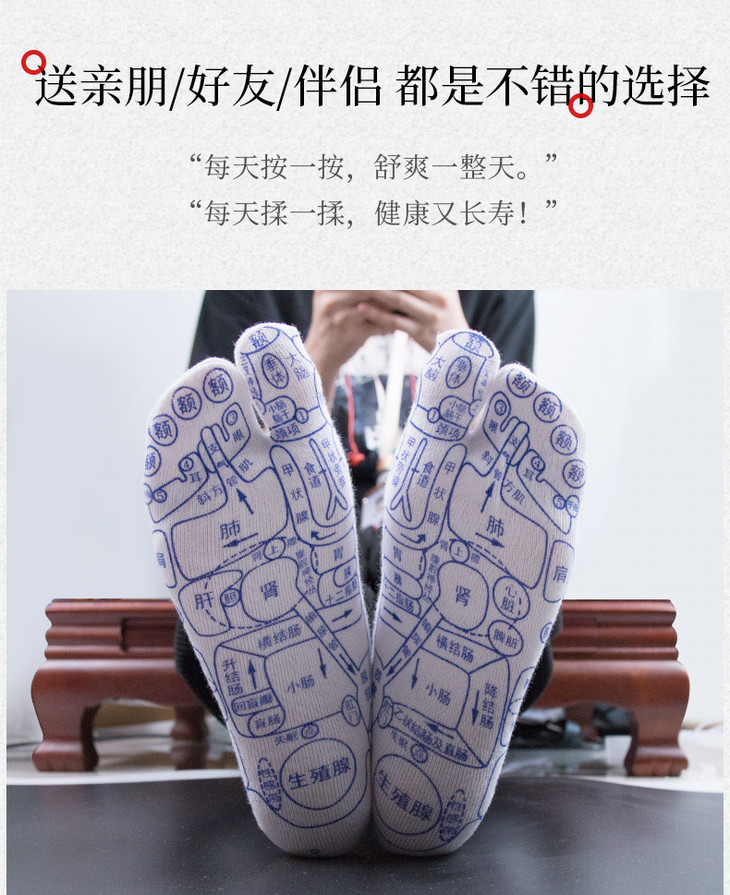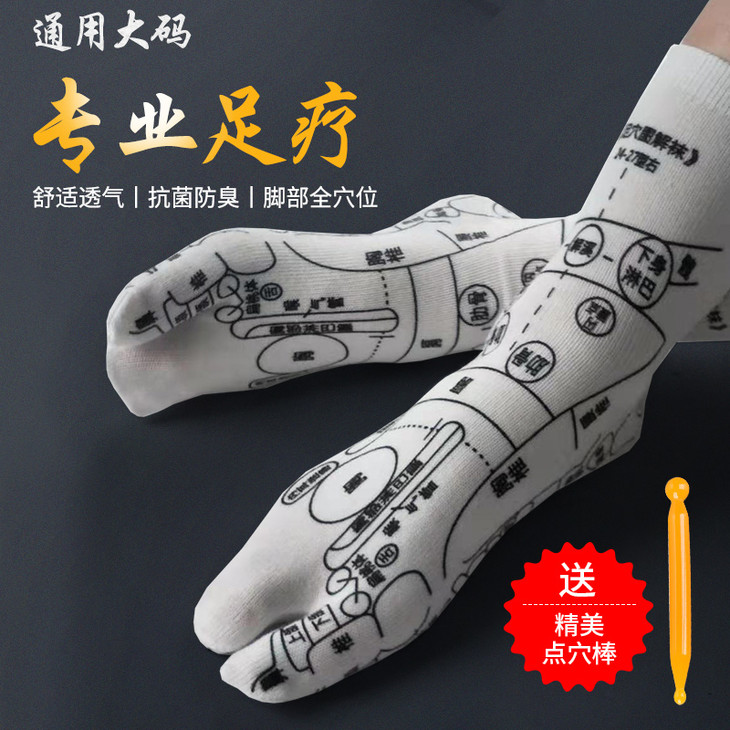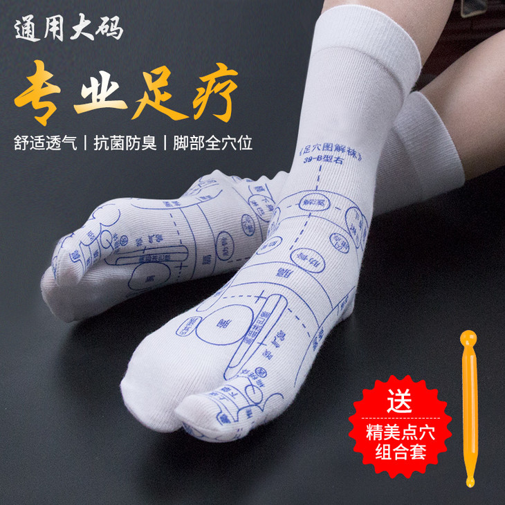 送点穴笔【孙俪同款 养生穴位袜】足底按摩足穴位图解 全棉中筒袜 养生袜穴位袜 袜子点穴棒全棉中筒袜