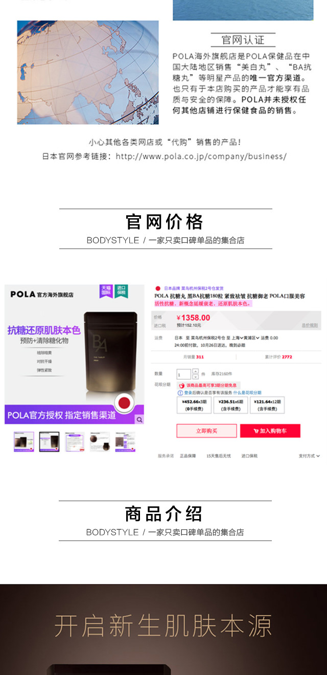 POLA/宝丽 黑BA0化美肤内服丸片 180粒*2(代购)