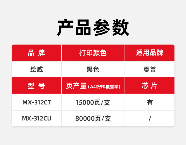 绘威MX-312CT粉盒 适用夏普SHARP MX-260 310 311 304 3108 3508打印机复印机碳粉 墨粉 墨粉盒