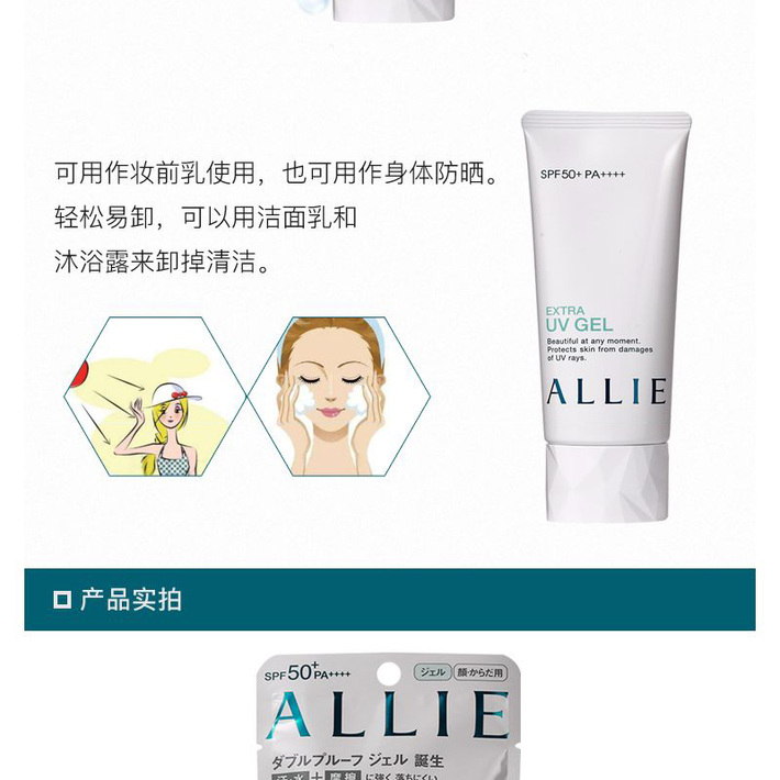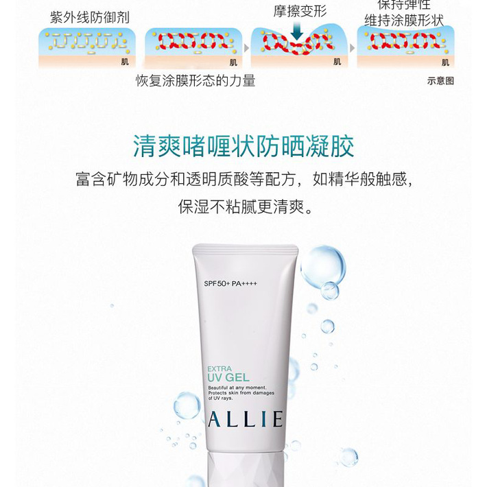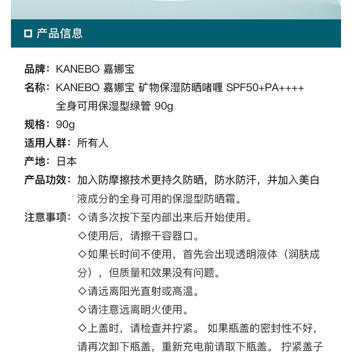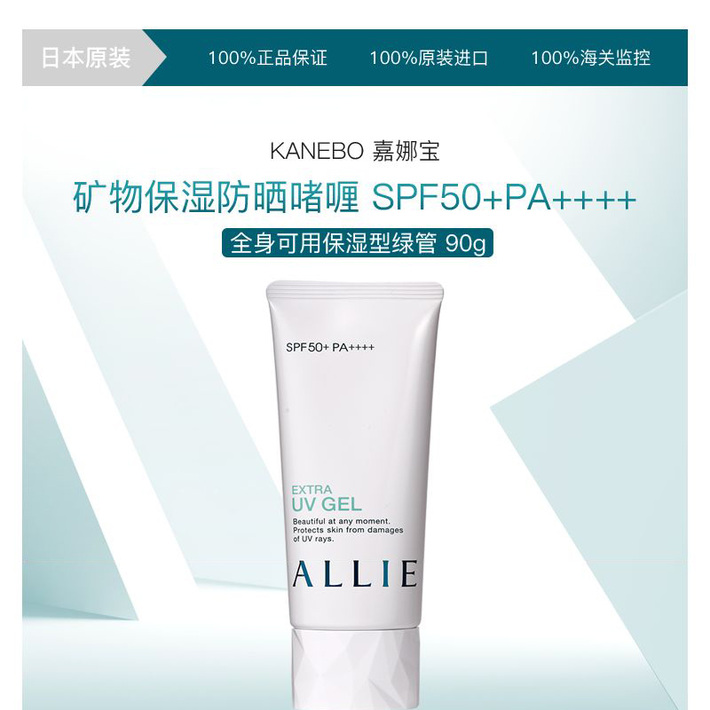 KANEBO嘉娜宝 ALLIE 矿物保湿绿管物理防晒霜防水防汗啫喱90克 SPF50+PA++++ 日本