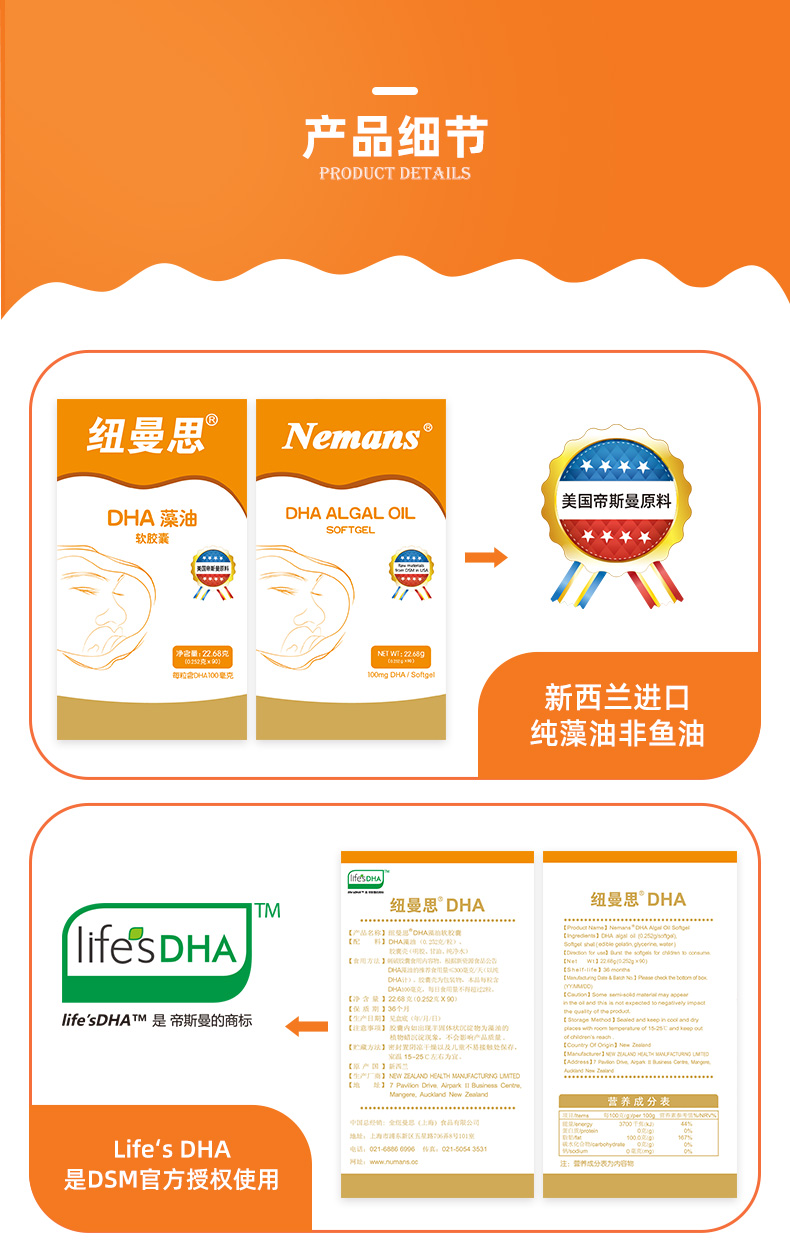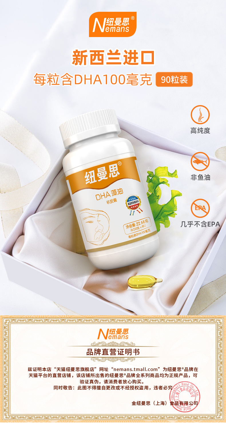 【纽曼思】新西兰进口海藻油DHA儿童软胶囊90粒装