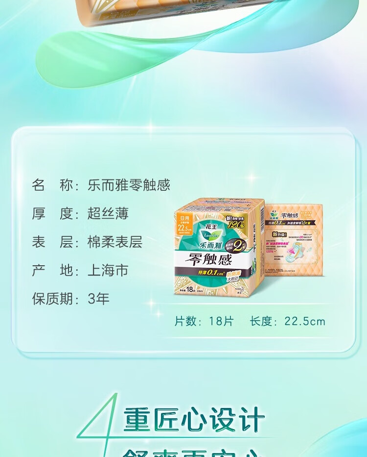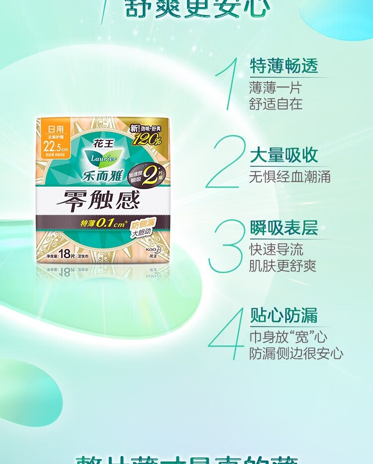 乐而雅超丝薄日用卫生巾22.5cm18片/包