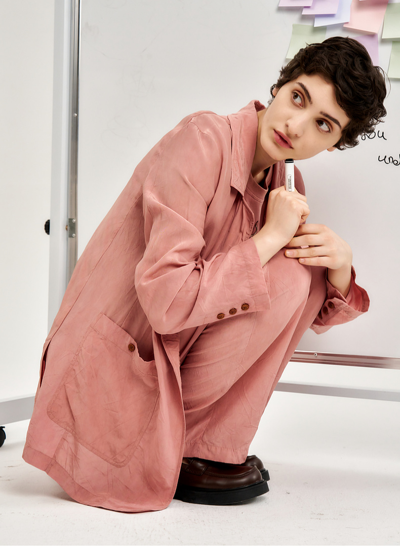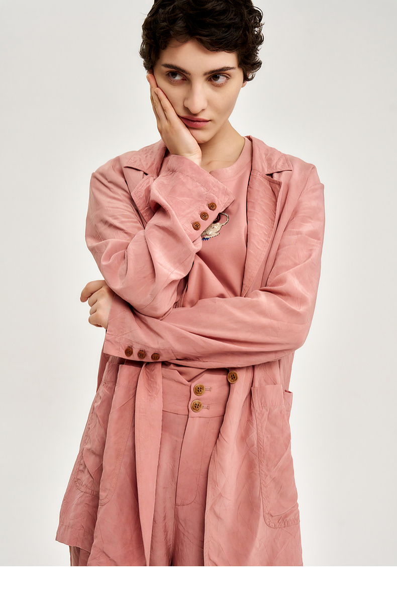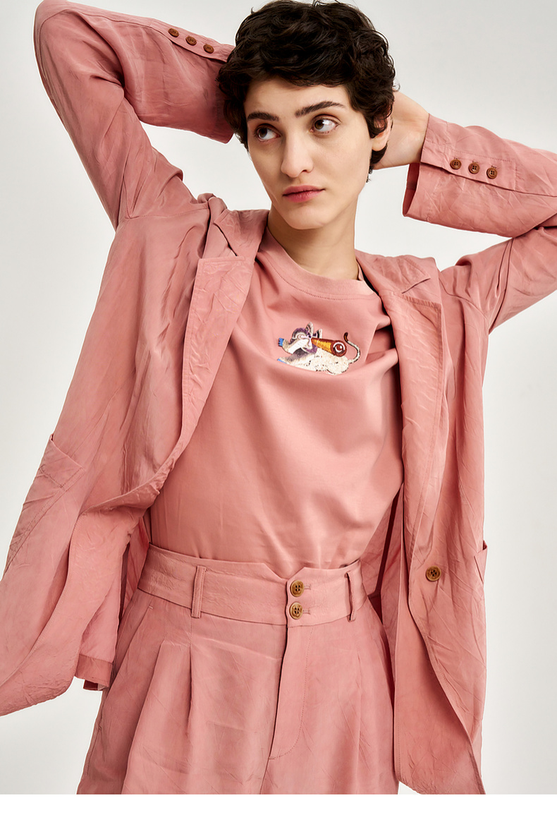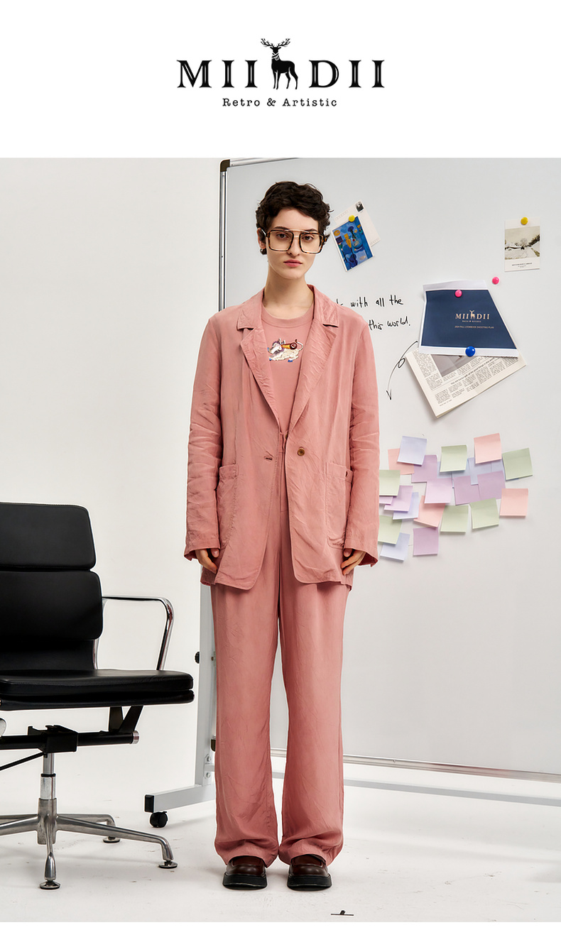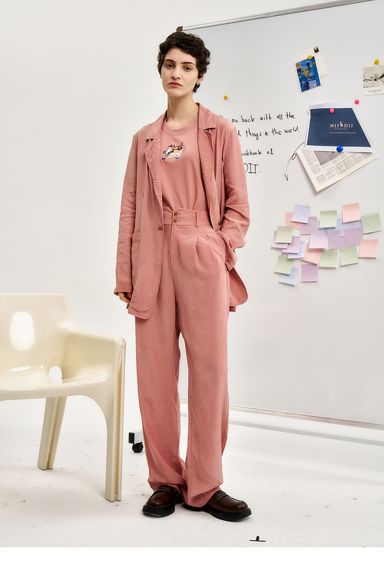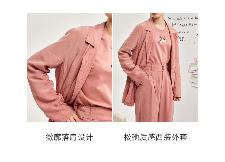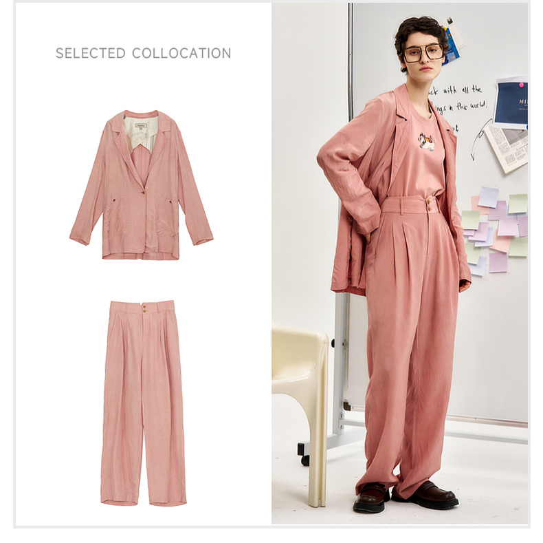 谜底西装外套女2024秋新品通勤风质感垂坠粘纤宽松西服243MW1040
