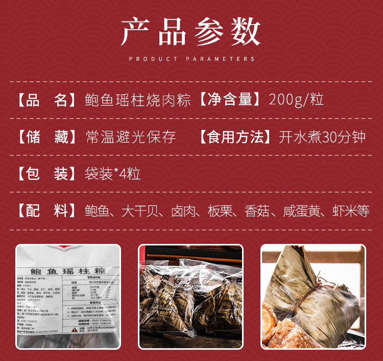 【活动专享】1980烧肉粽鲍鱼瑶柱粽200g单粒装赠甜辣酱包