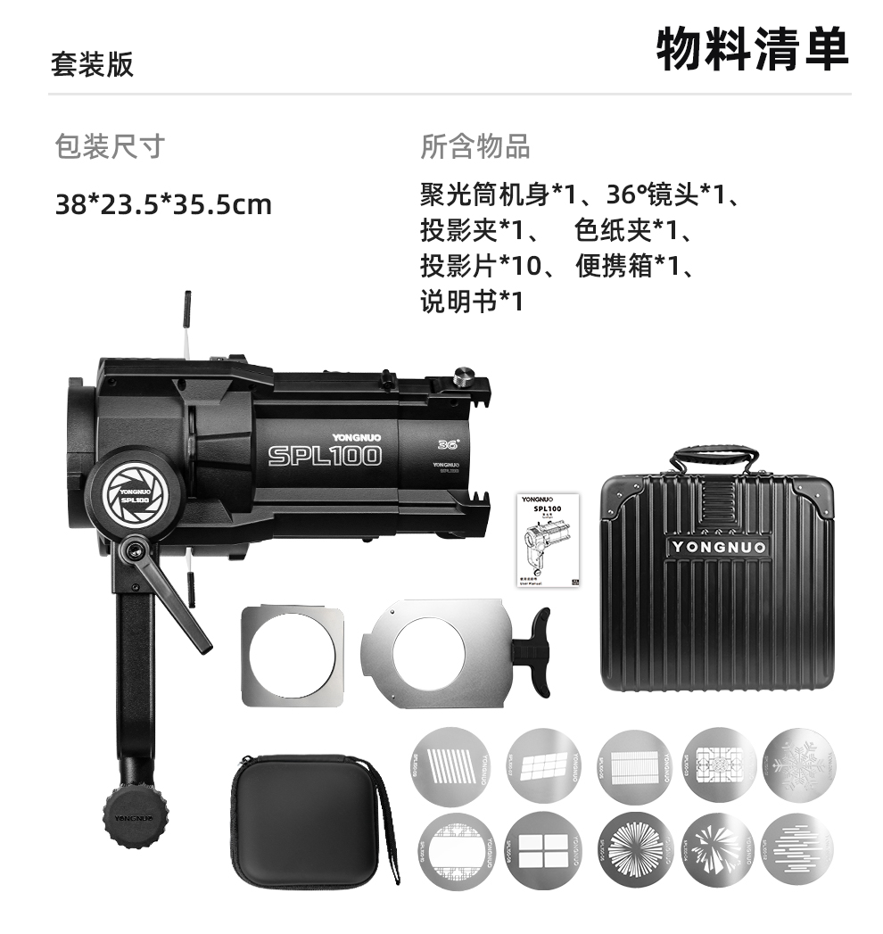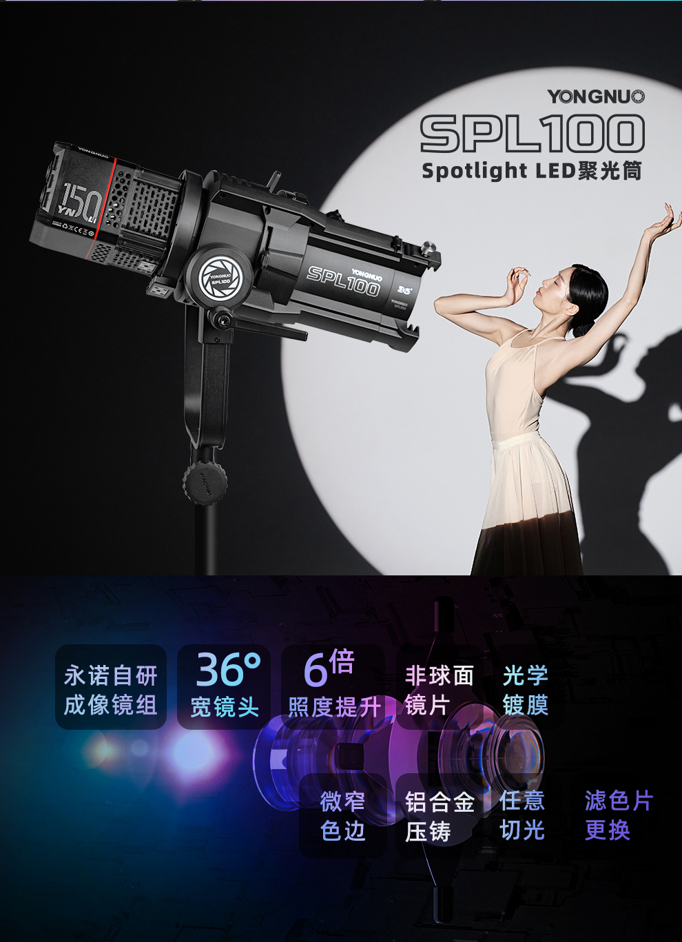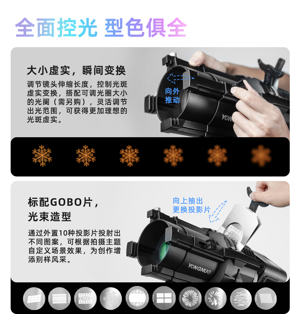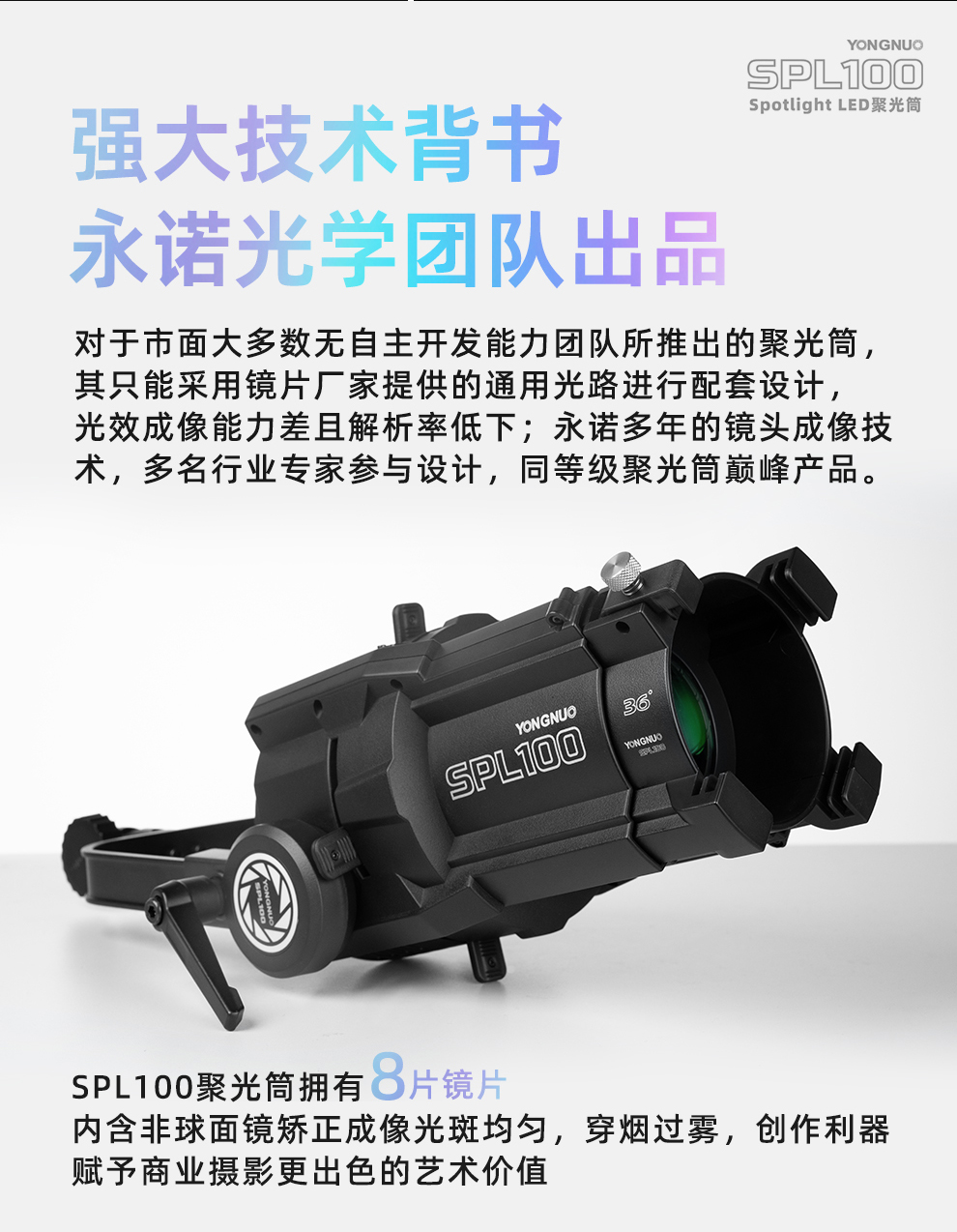 永诺SPL100专业光学聚光筒束光筒补光灯艺术造型聚光灯造型光效背景投影(适用于LUX100系列、YN150系列)