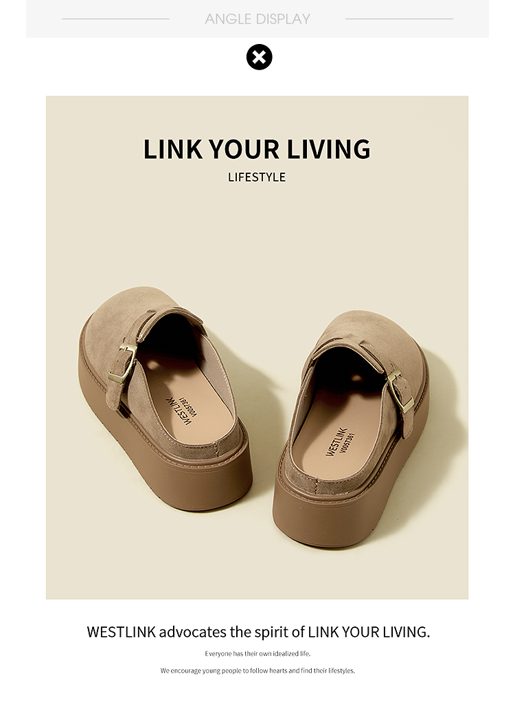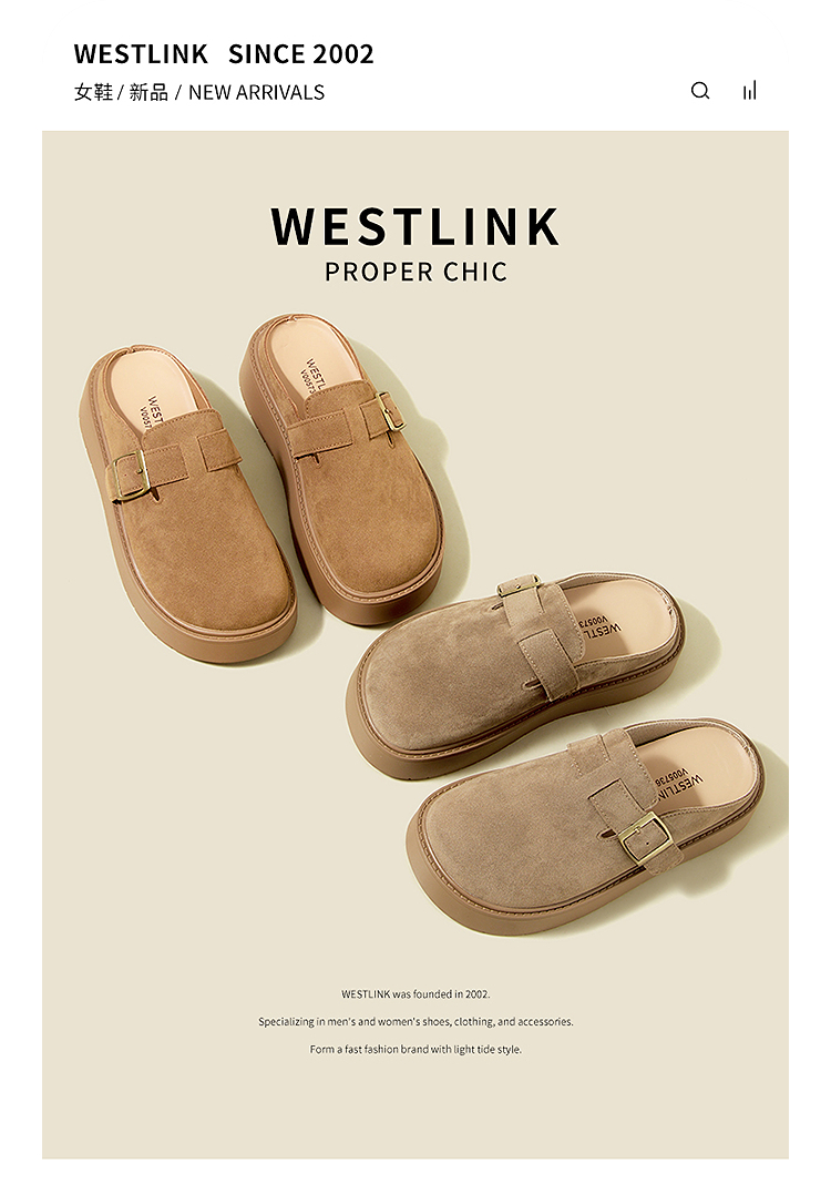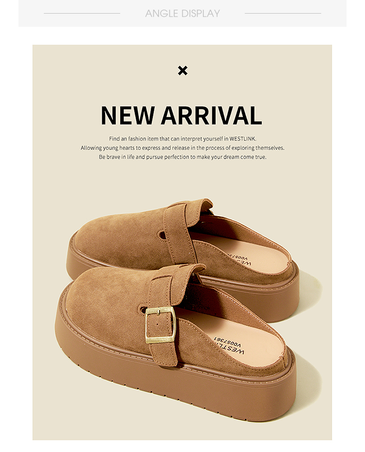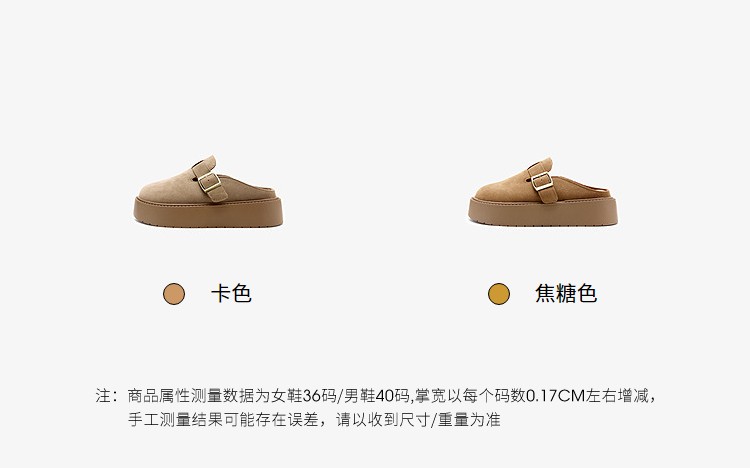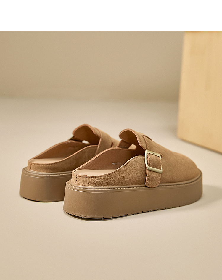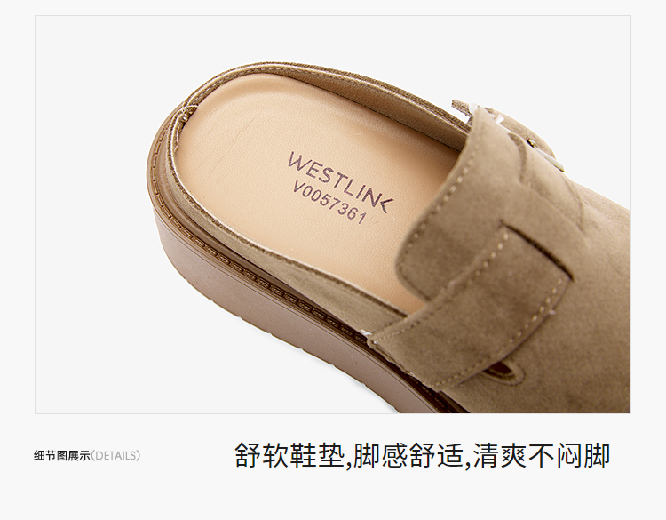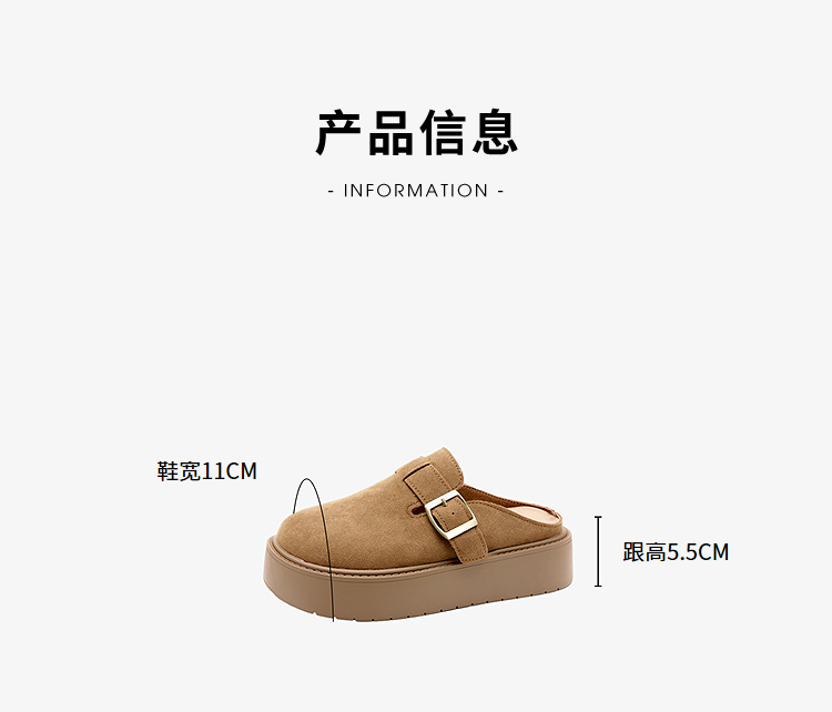 【限时秒杀】西遇松糕厚底勃肯鞋女包头半拖鞋子新款复古一脚蹬外穿拖鞋V0057361
