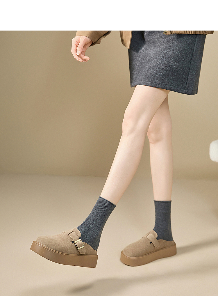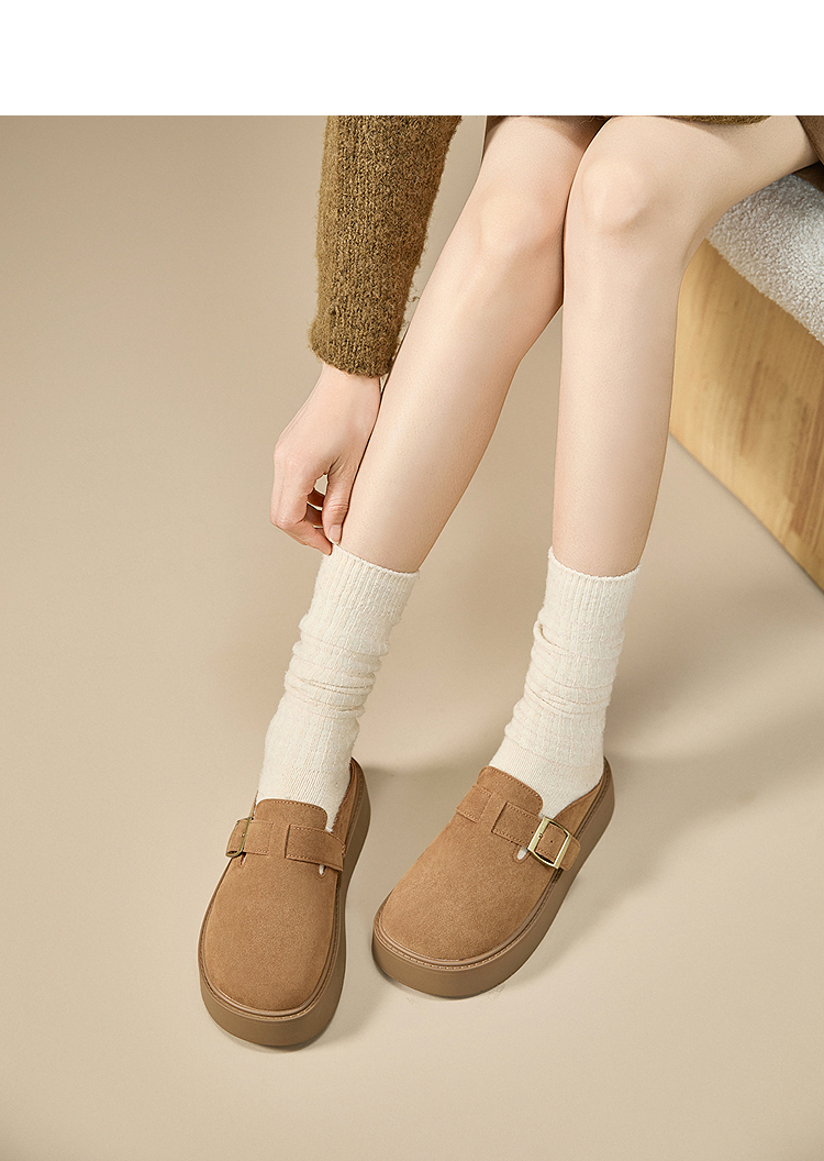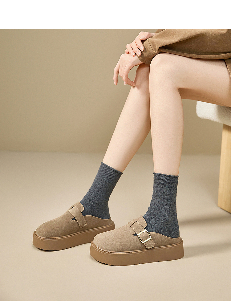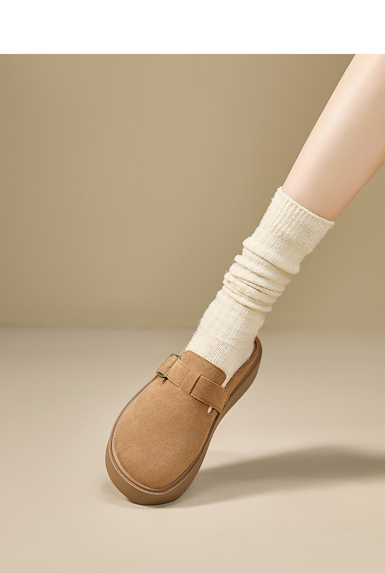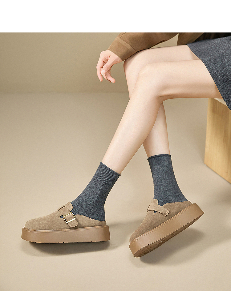 【限时秒杀】西遇松糕厚底勃肯鞋女包头半拖鞋子新款复古一脚蹬外穿拖鞋V0057361