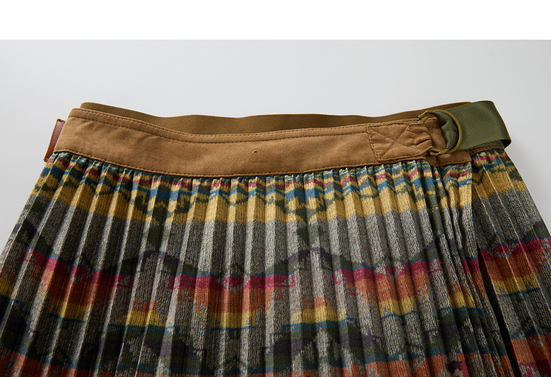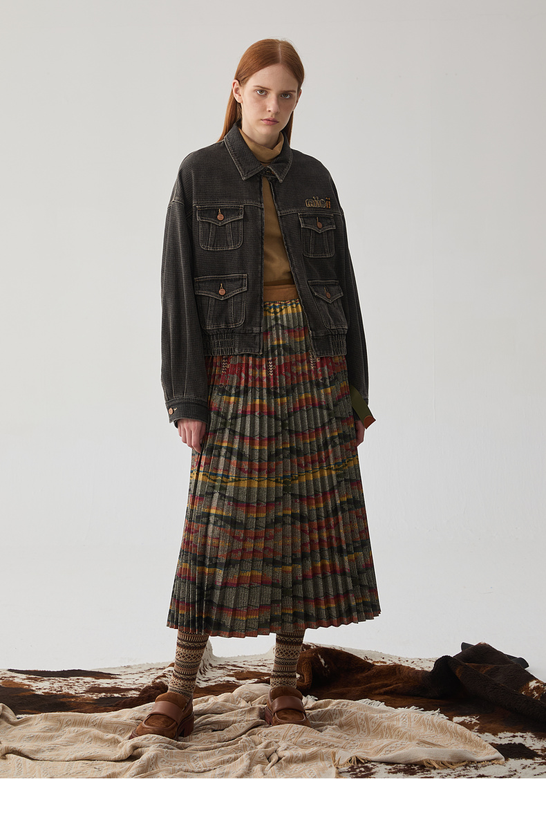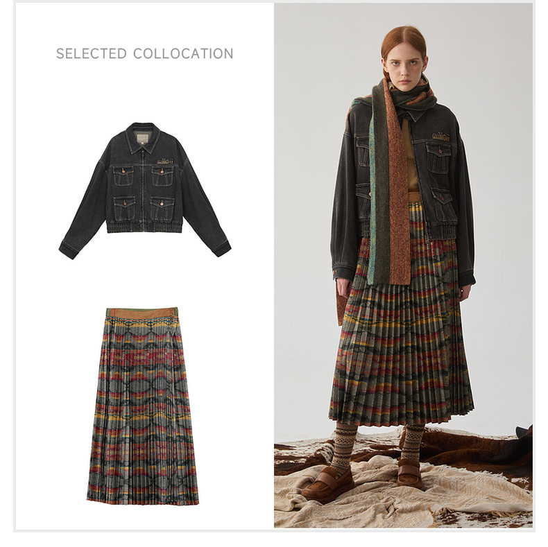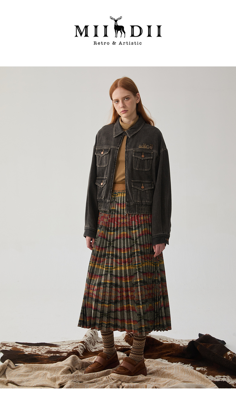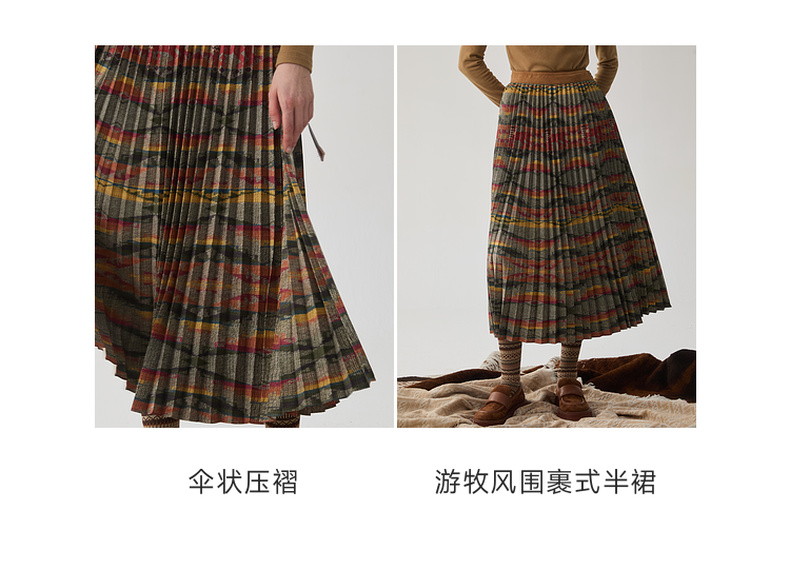 谜底两件套半身裙2024冬新品复古原创印花围裹式长半裙244MB1677