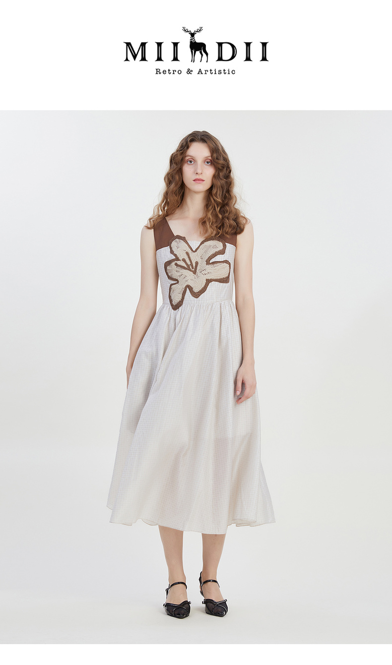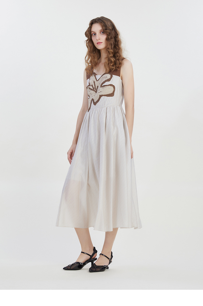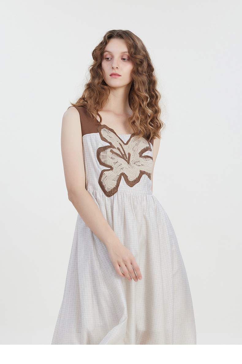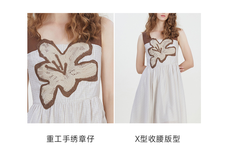 谜底时尚绣花吊带连衣裙2023夏新款修身收腰长裙无袖女232ML0562
