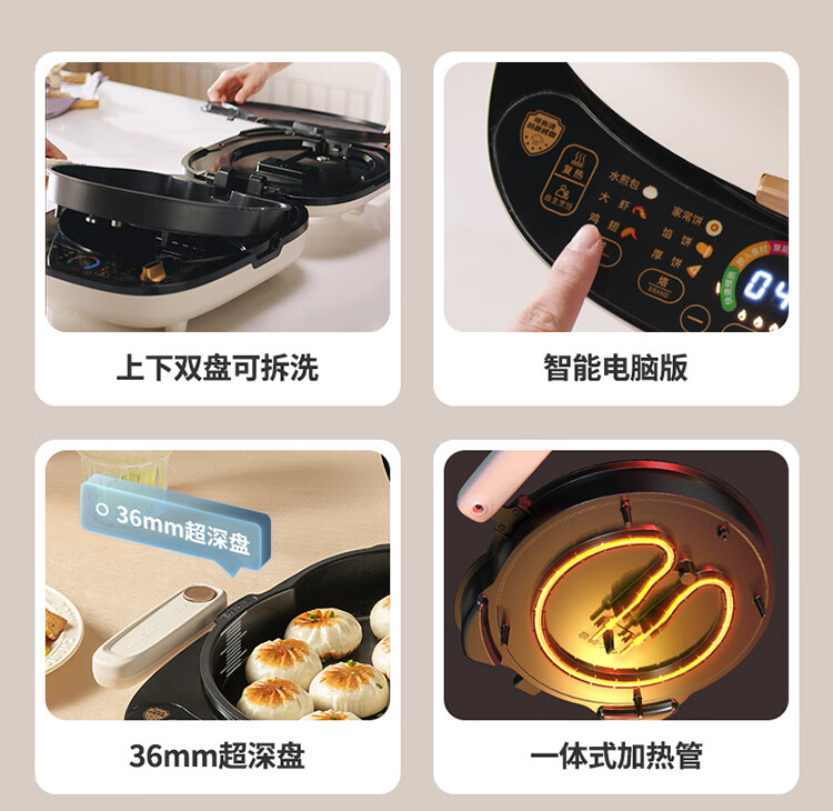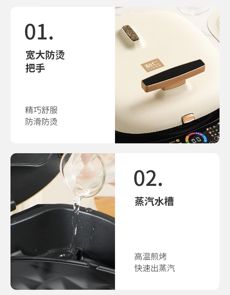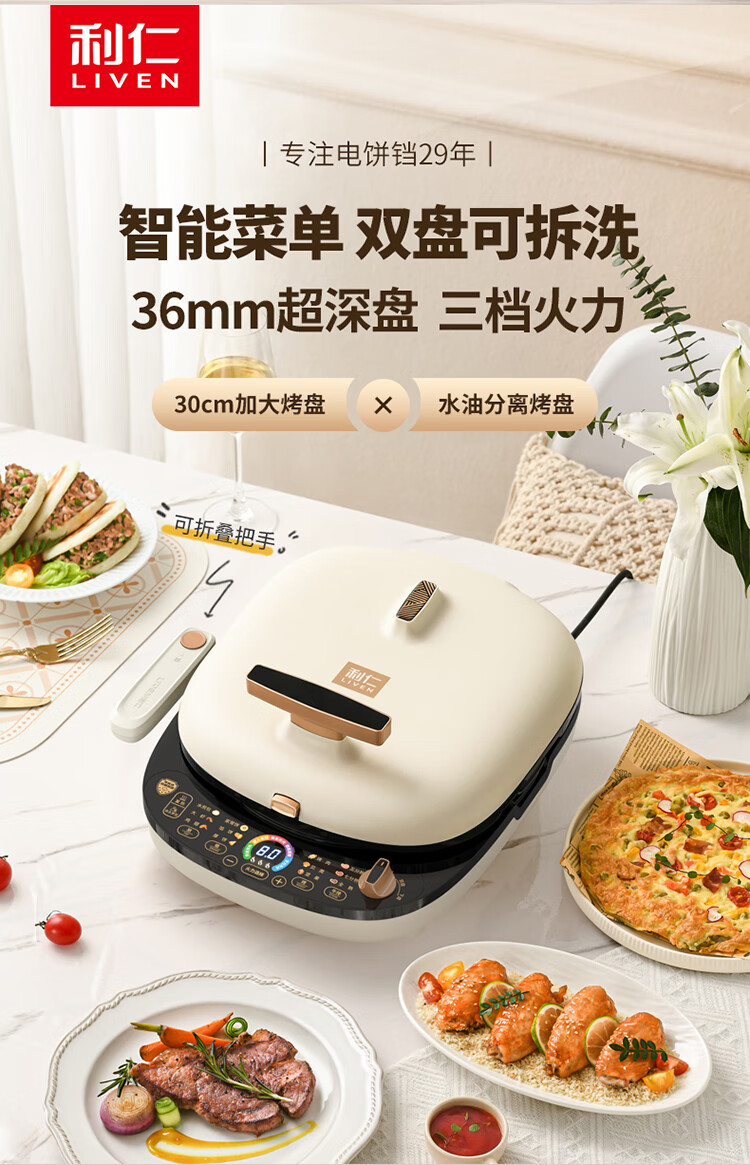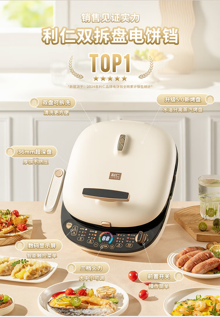 【小家电】利仁电饼铛家用上下双盘可拆洗煎烤机双面加热电饼档加深加大烤盘煎饼锅烙饼锅三明治早餐机电饼锅 HF