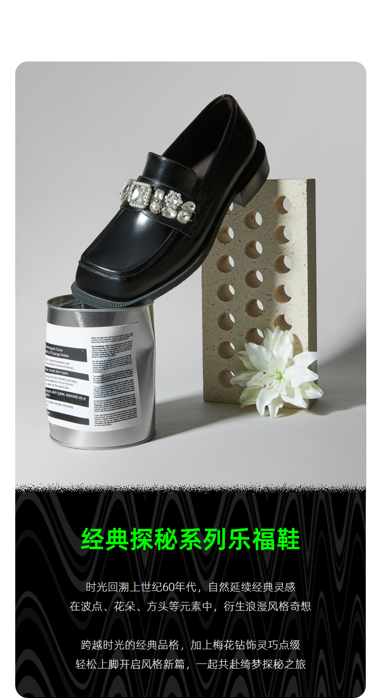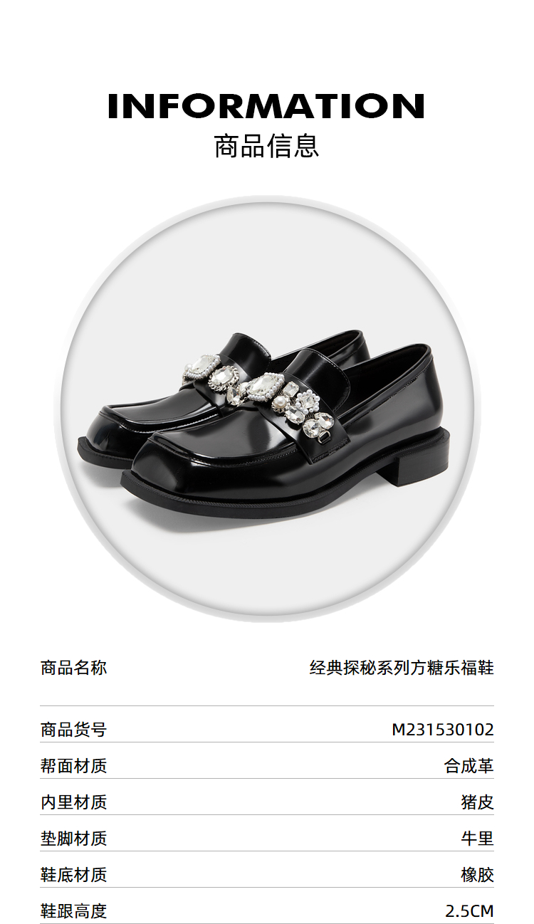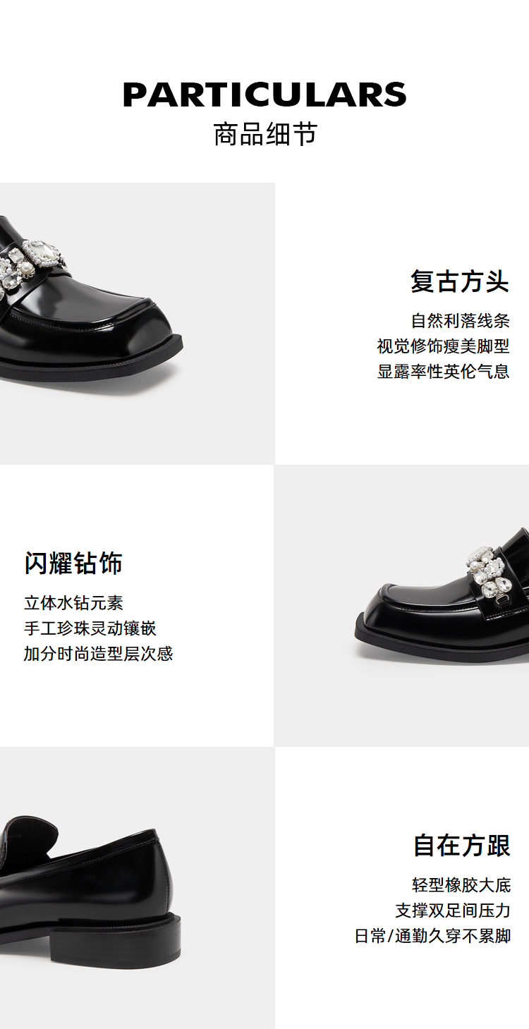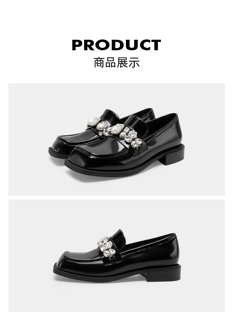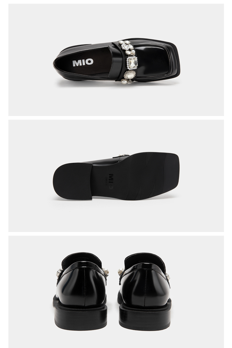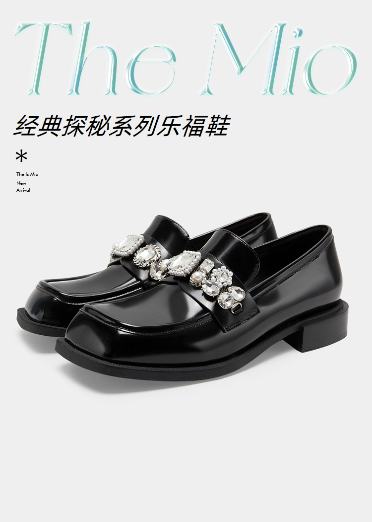 MIO米奥春季方头豆豆鞋复古单鞋英伦风一脚蹬乐福鞋M231530102
